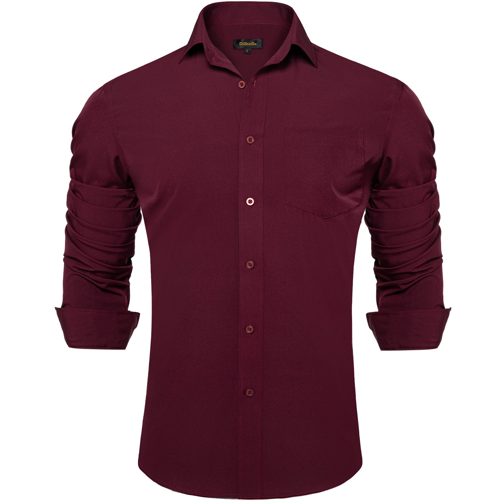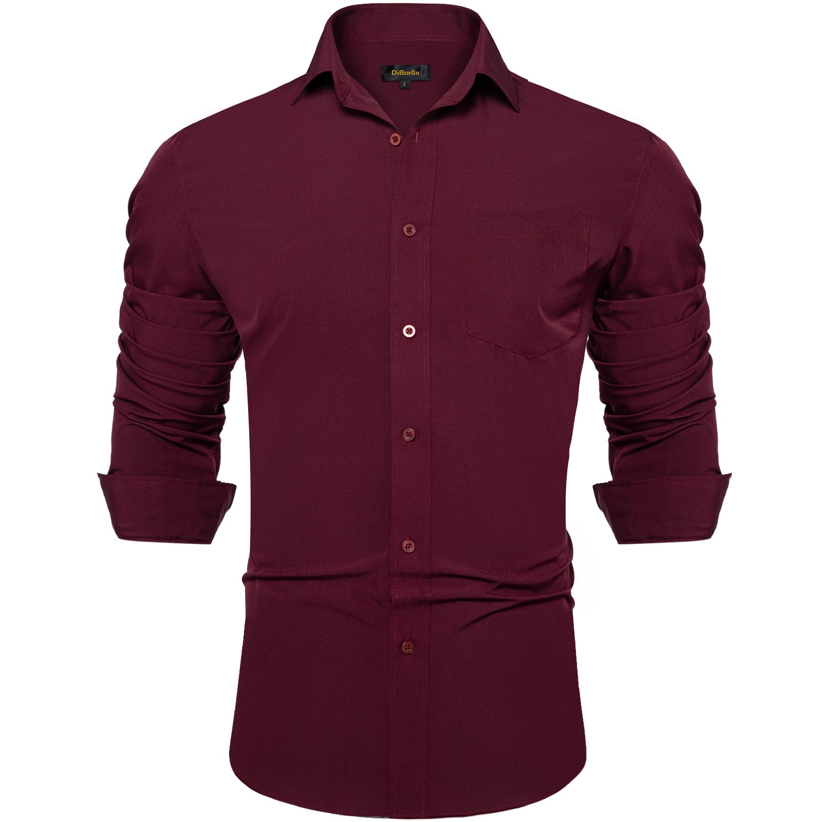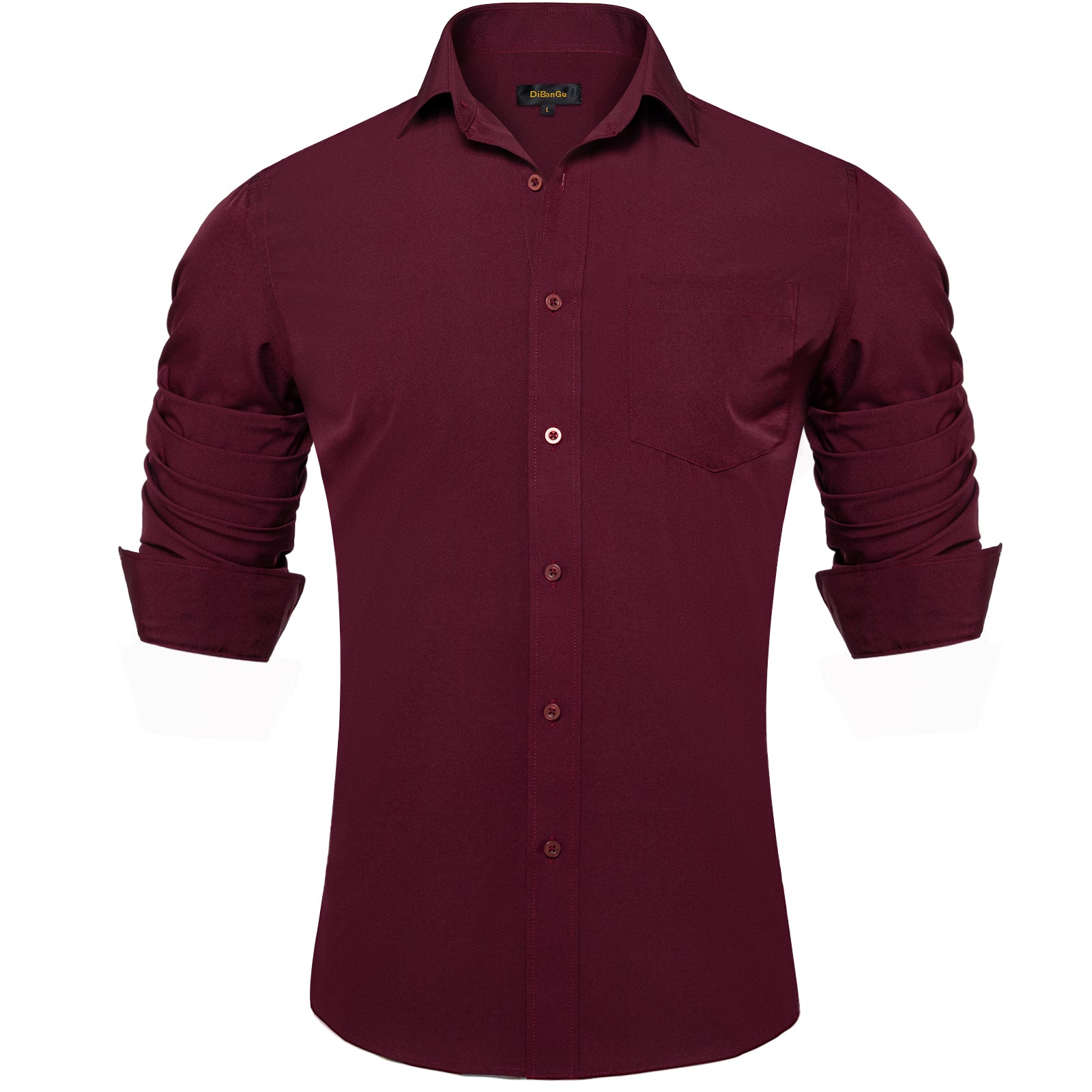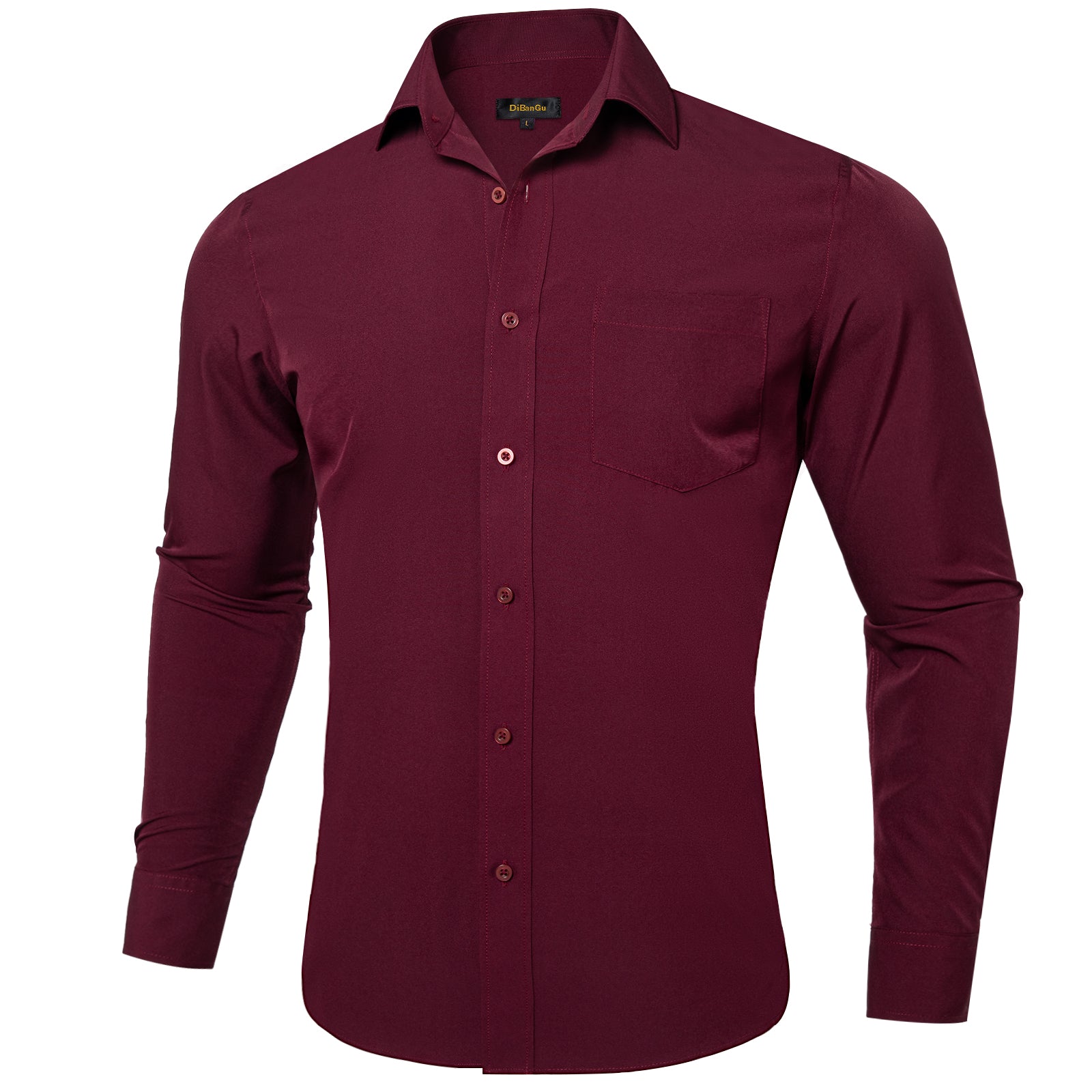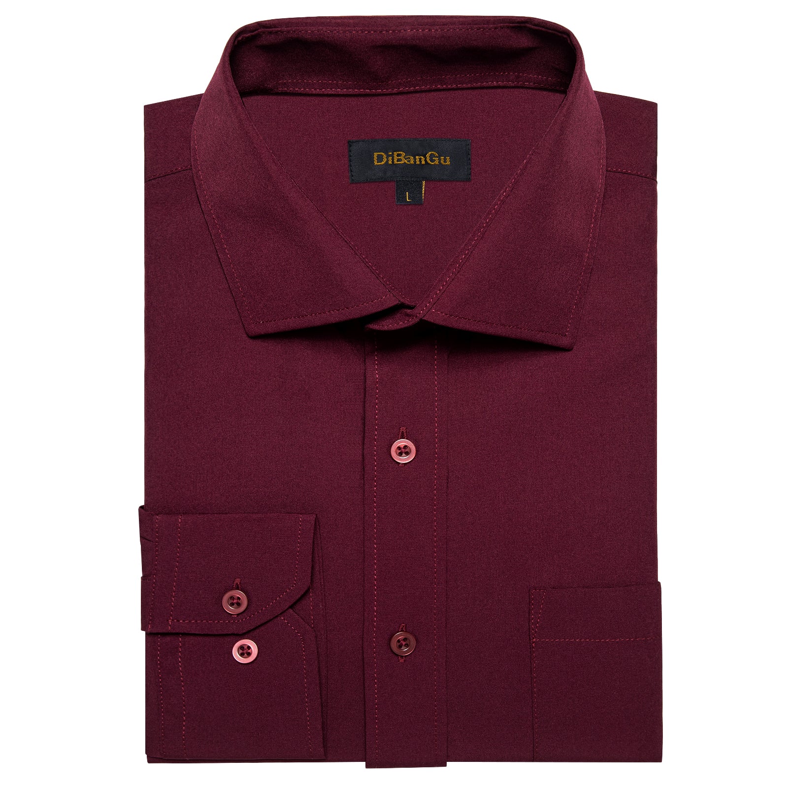 DiBanGu Claret Solid Silk Men's Business Shirt