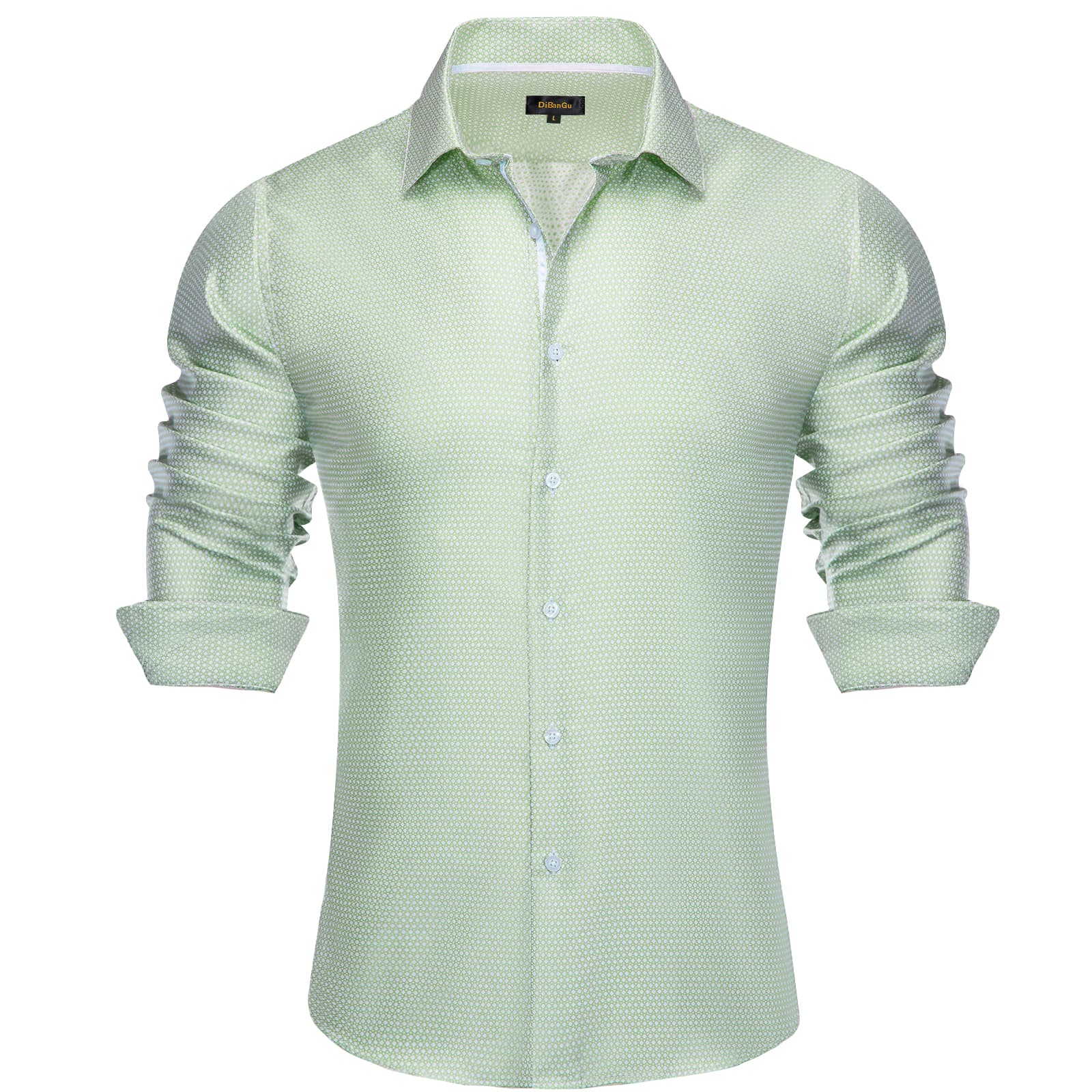 DiBanGu Collared Shirt Mint Green Polka Dot Silk Button Down Long Sleeve Shirt for Men
