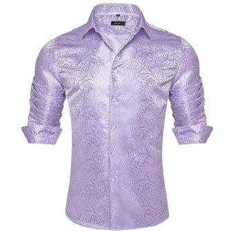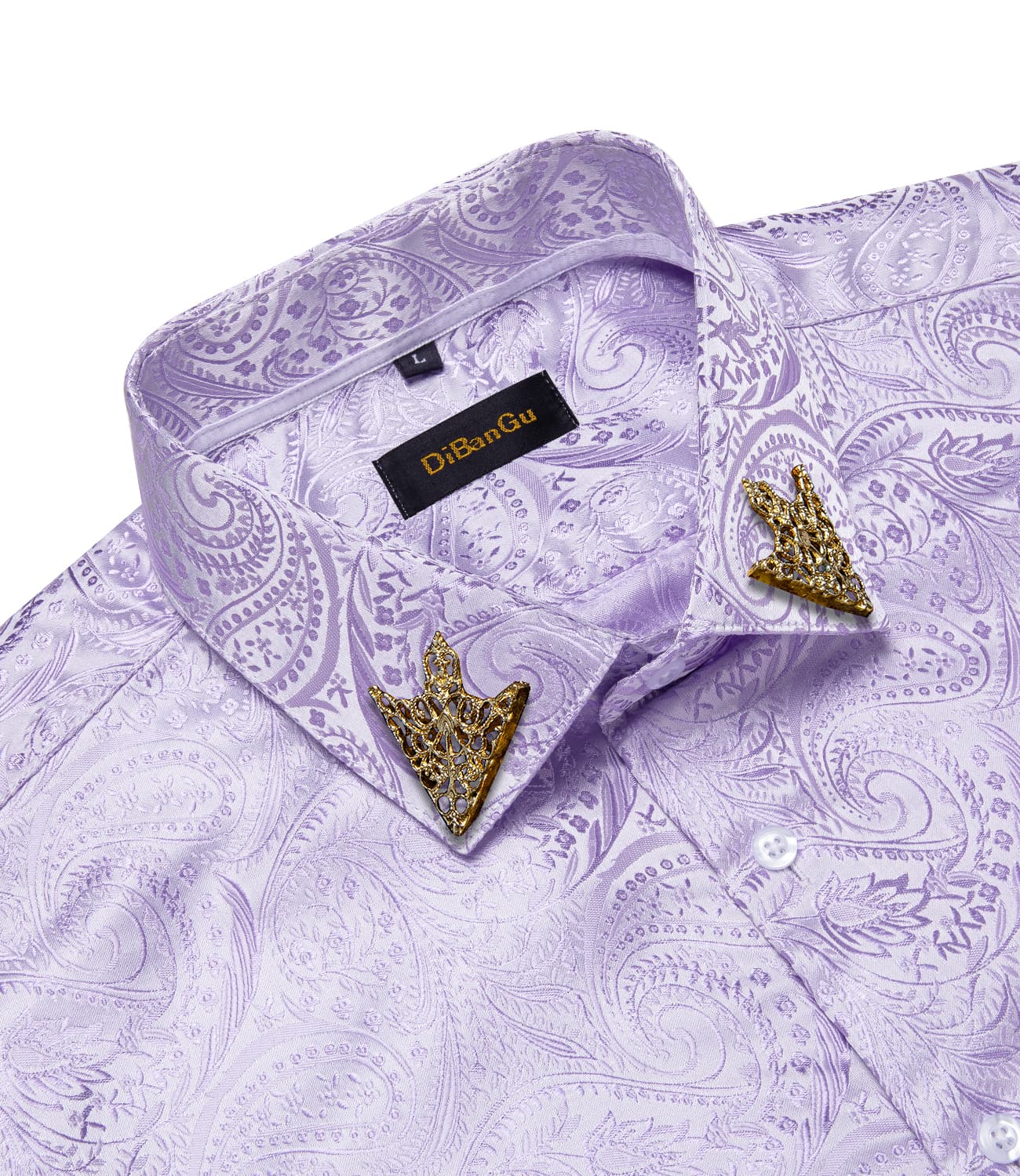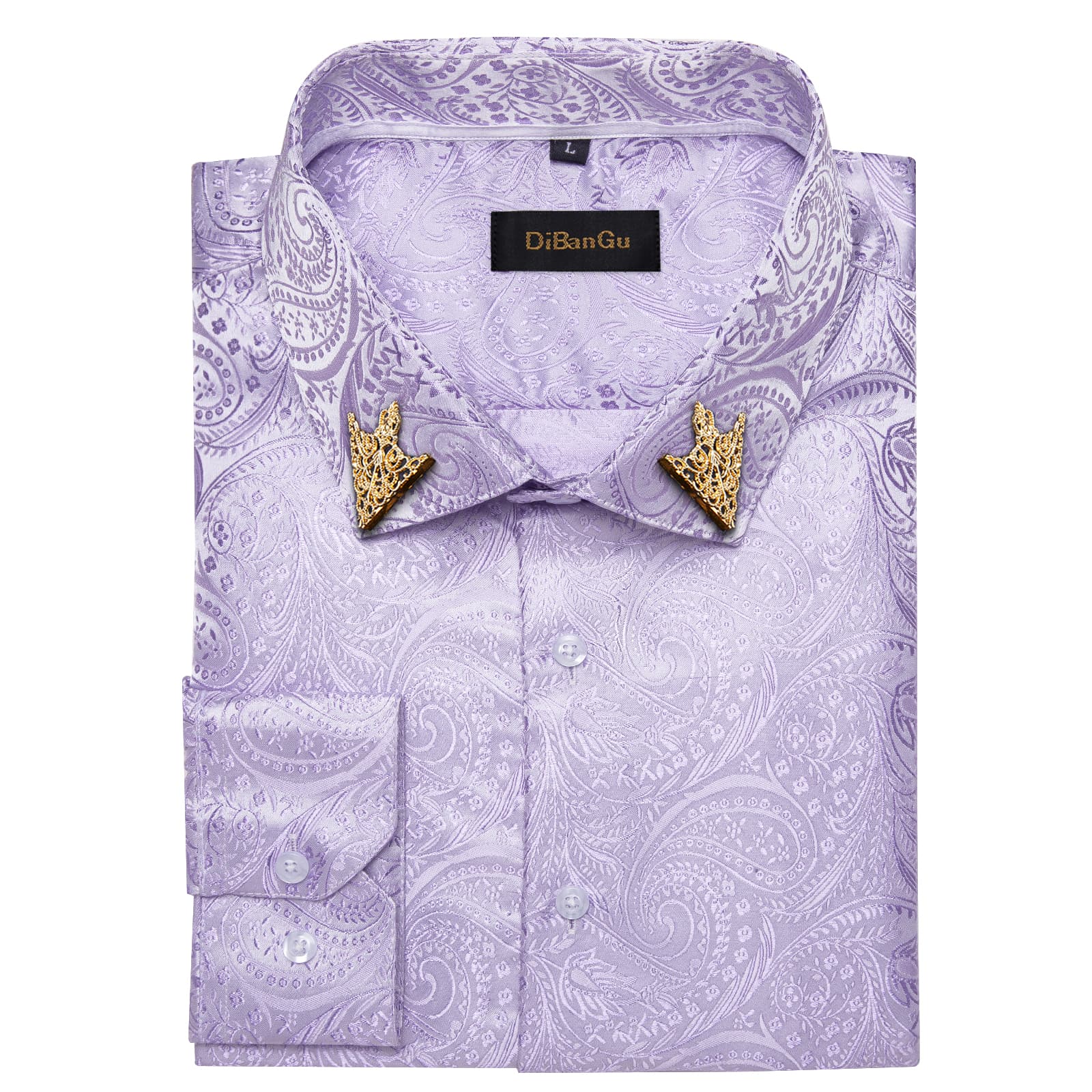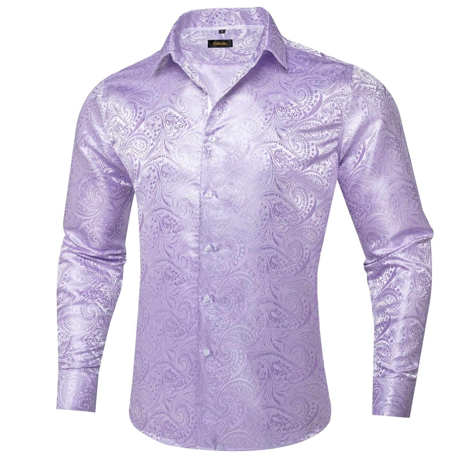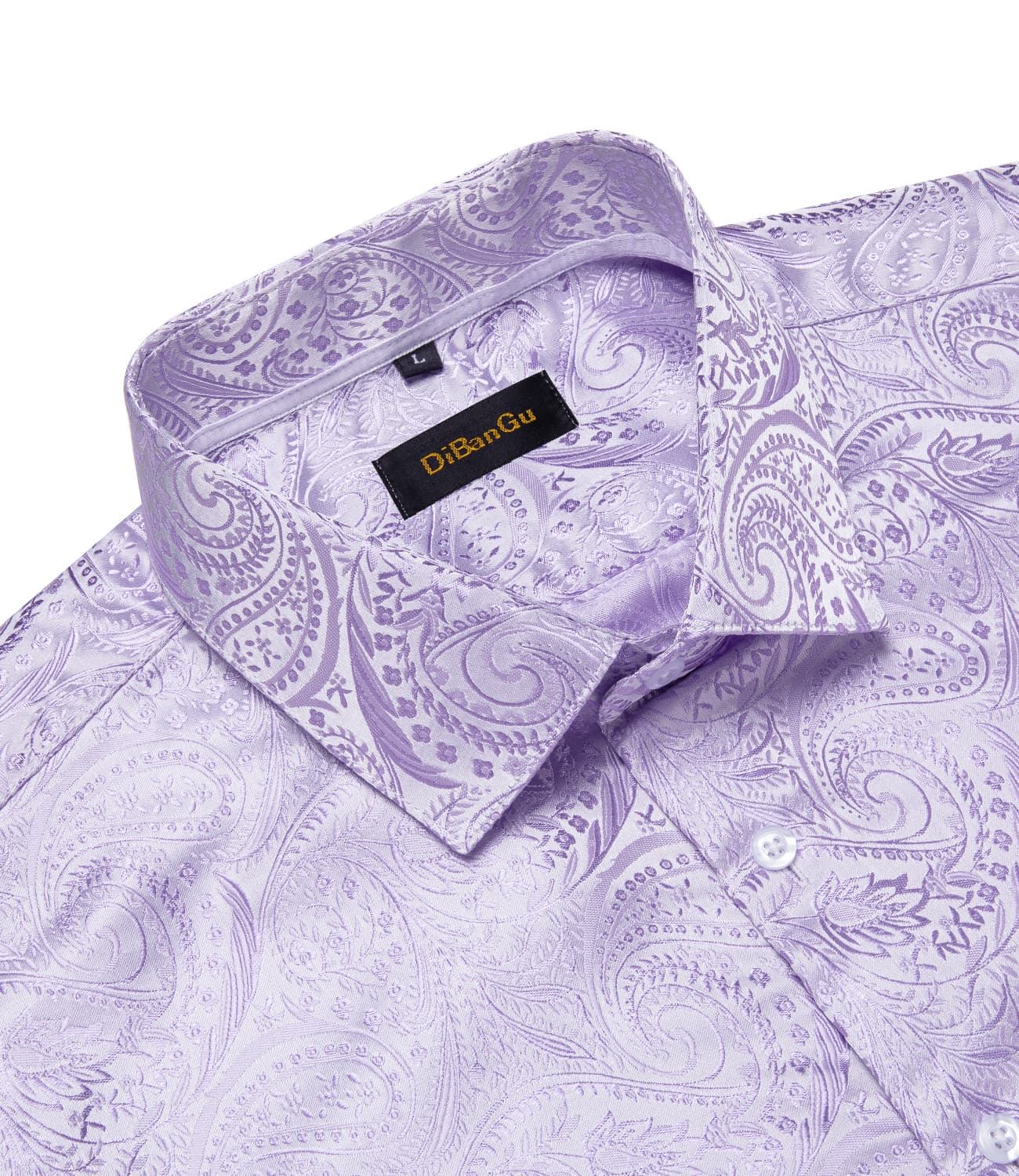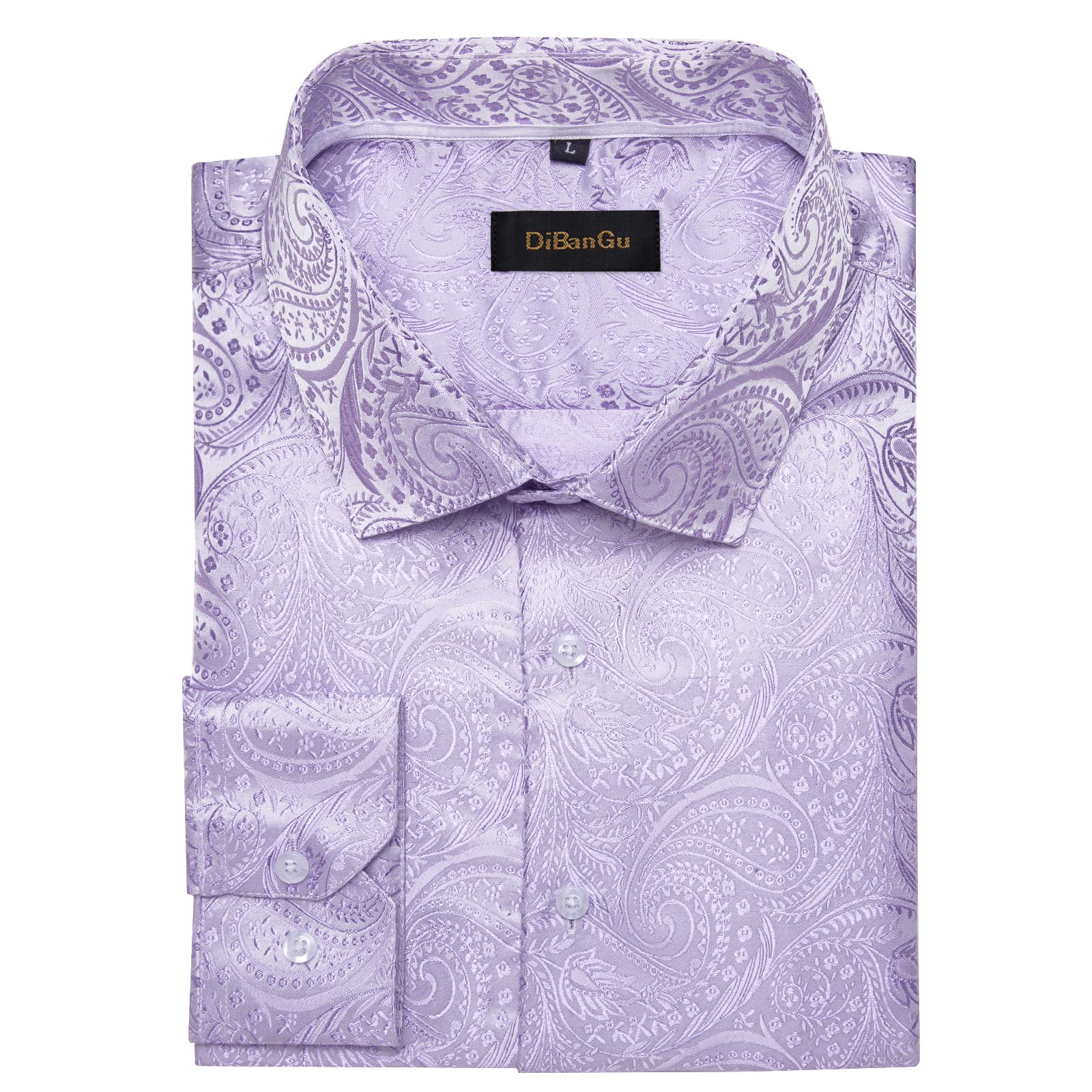 DiBanGu Collared Shirt Thistle Purple Paisley Silk Button Down Long Sleeve Mens Shirt Dress