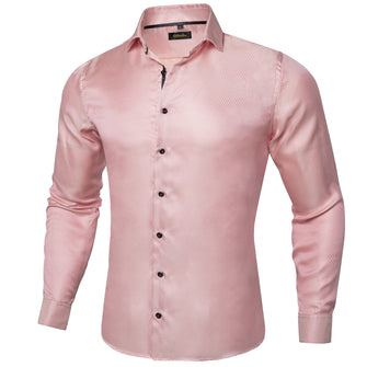 DiBanGu Dress Shirt Pink Solid Silk Men's Button Down Long Sleeve Shirt