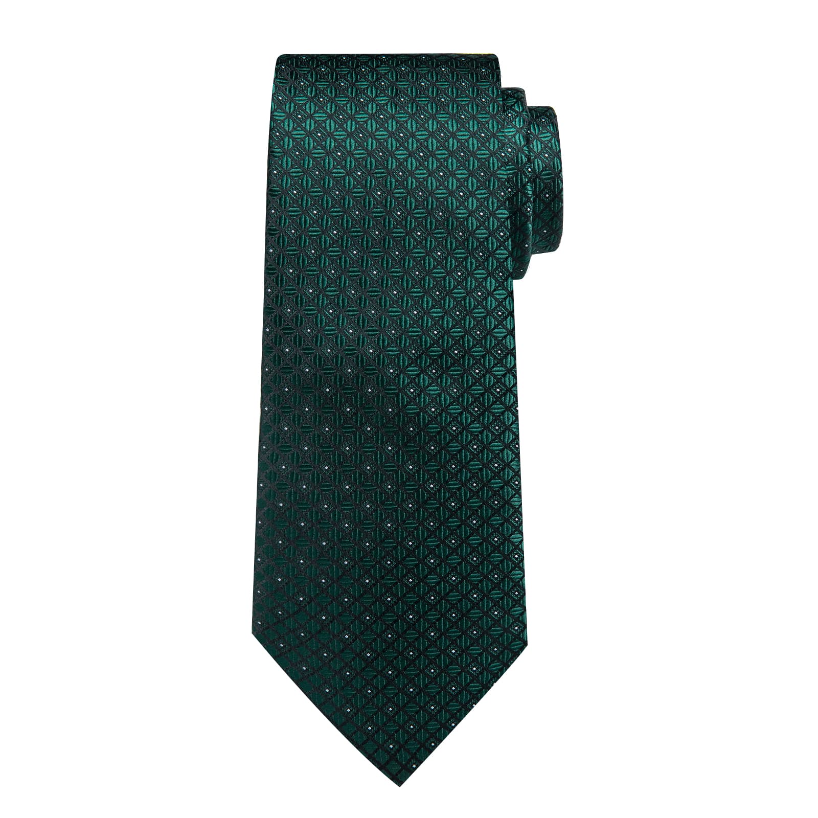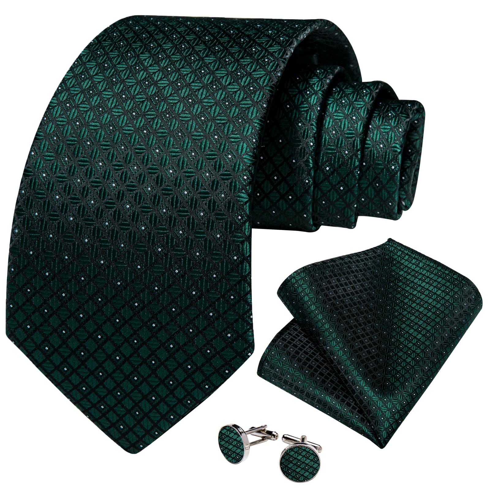 DiBanGu Dress Tie Forest Green Plaid Men's Silk Tie Handkerchief Cufflinks Clip Set