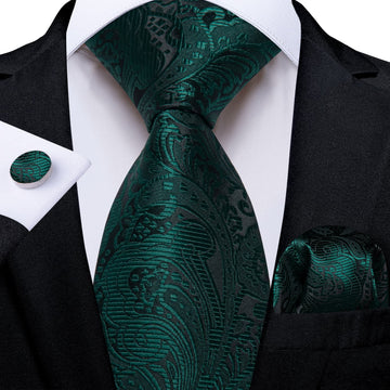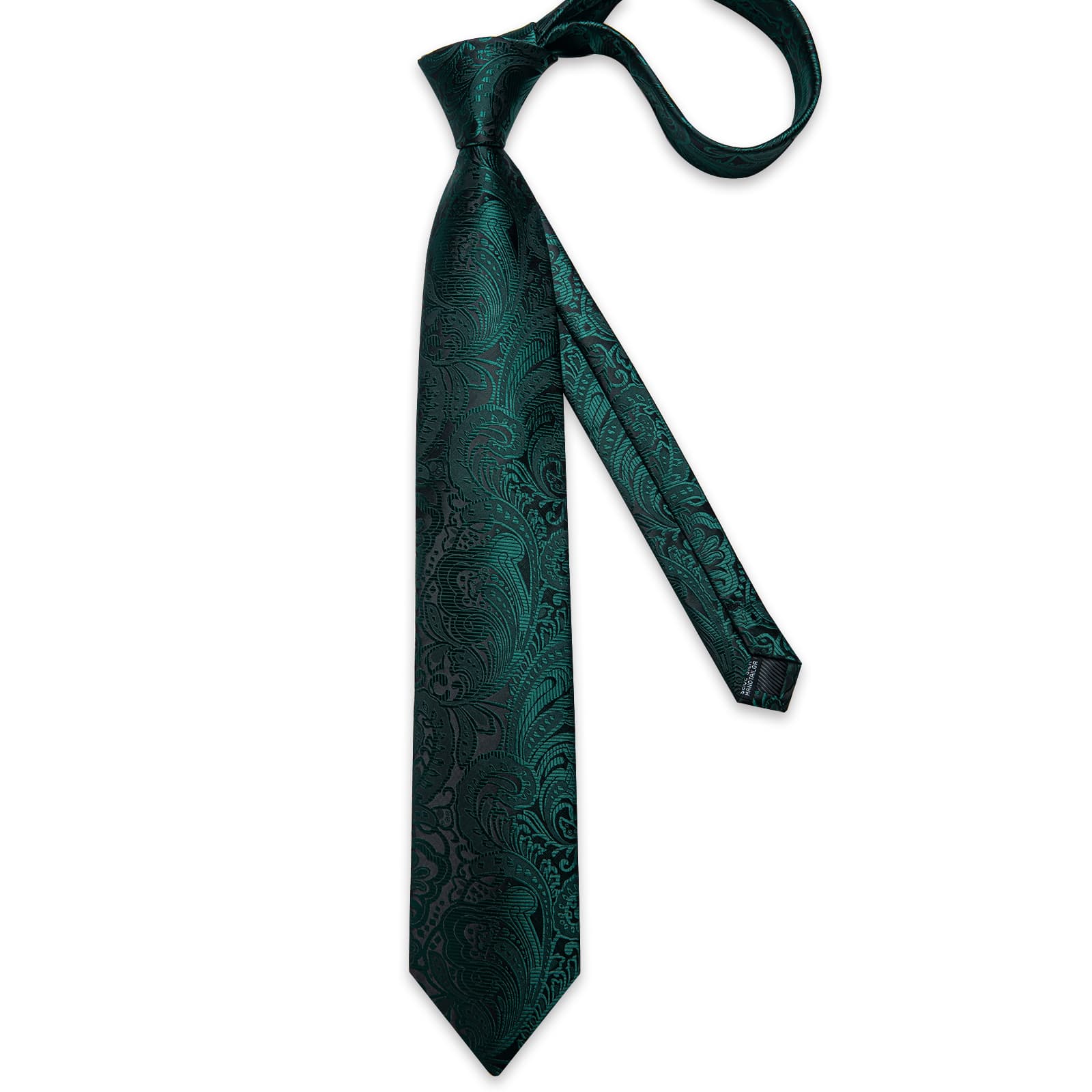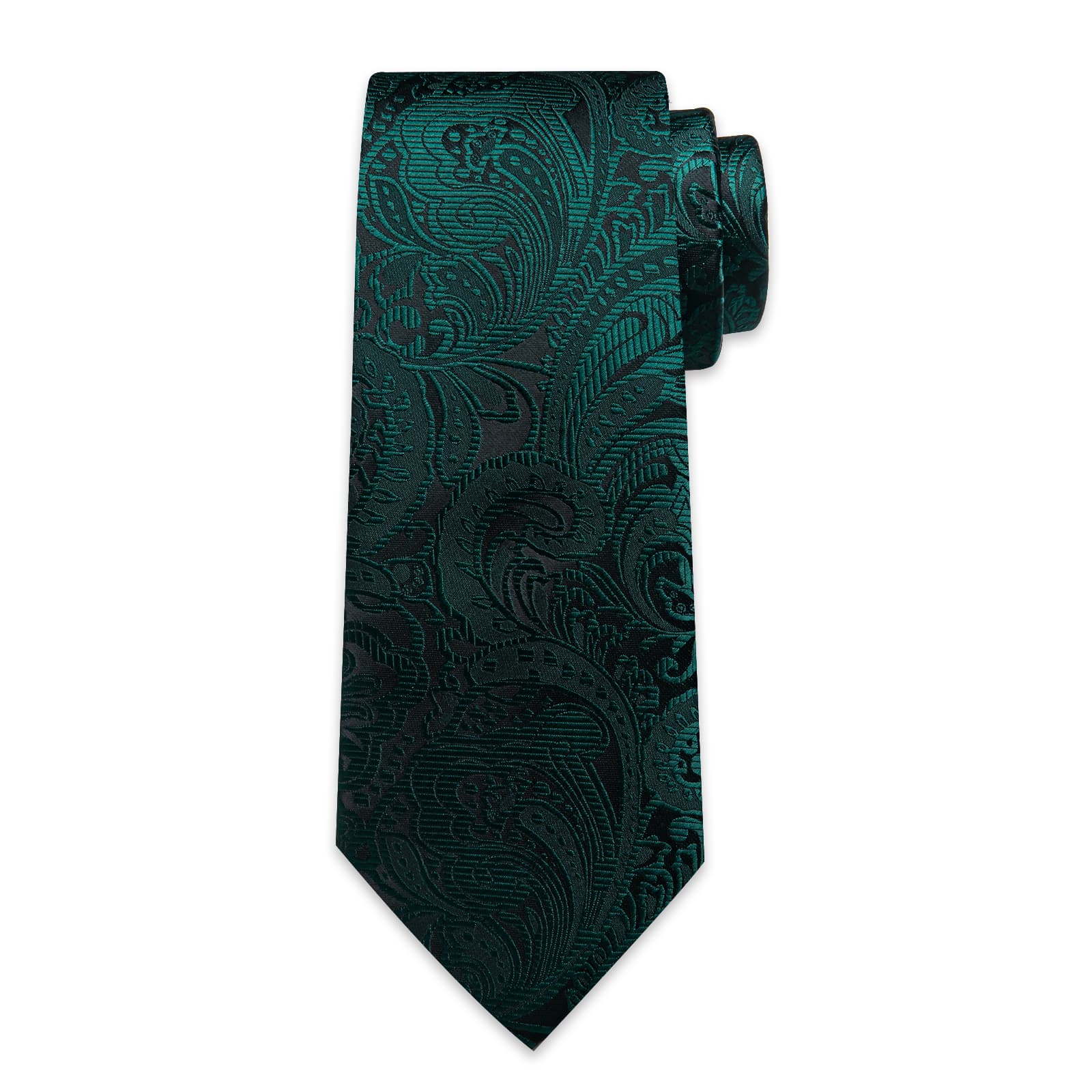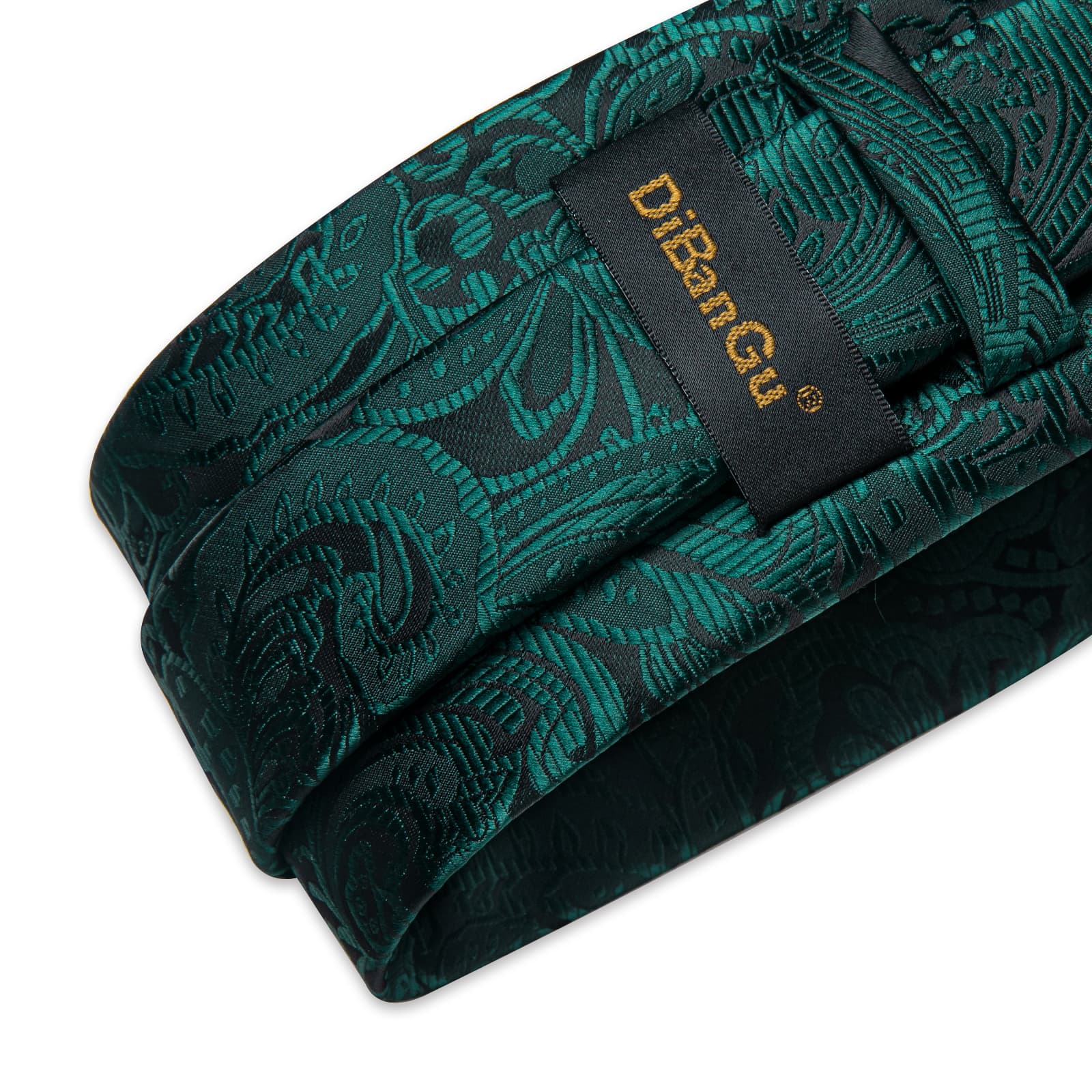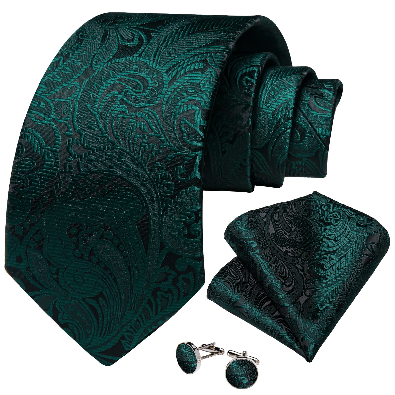 DiBanGu Dress Tie Medium Jungle Green Floral Mens Silk Business Work Tie Handkerchief Cufflinks Clip Set