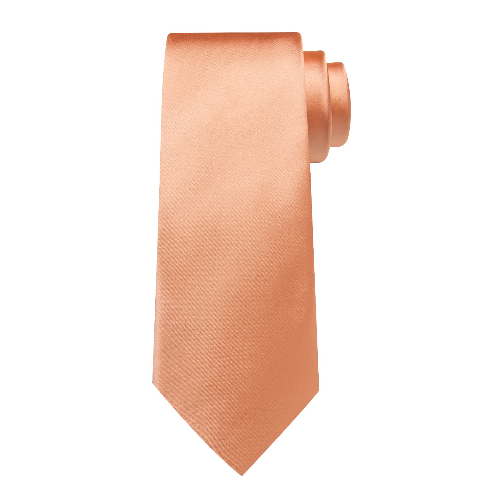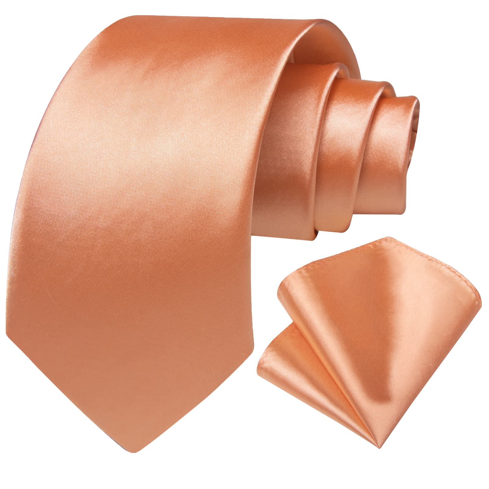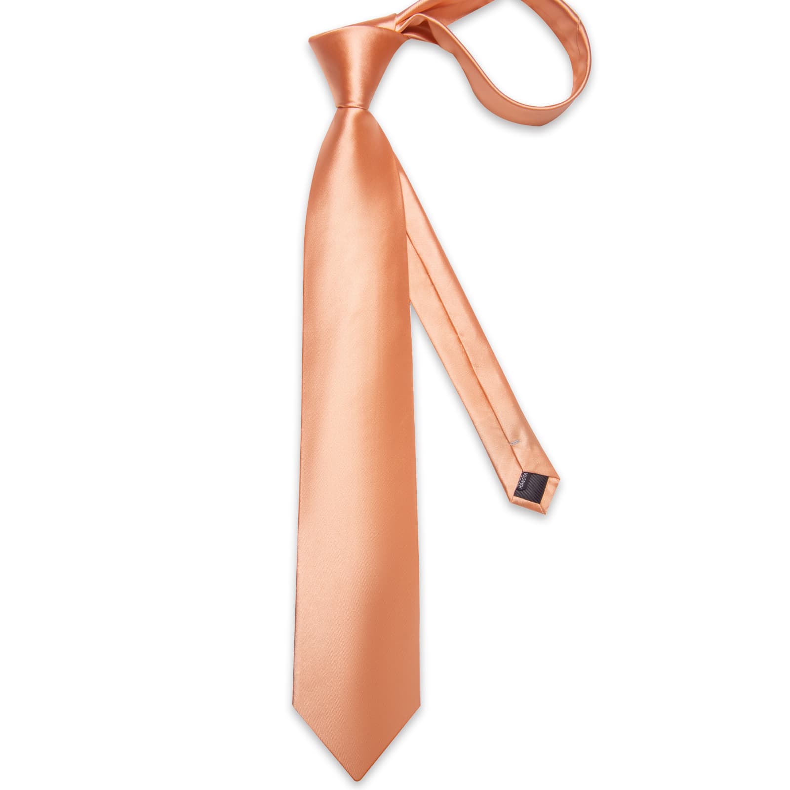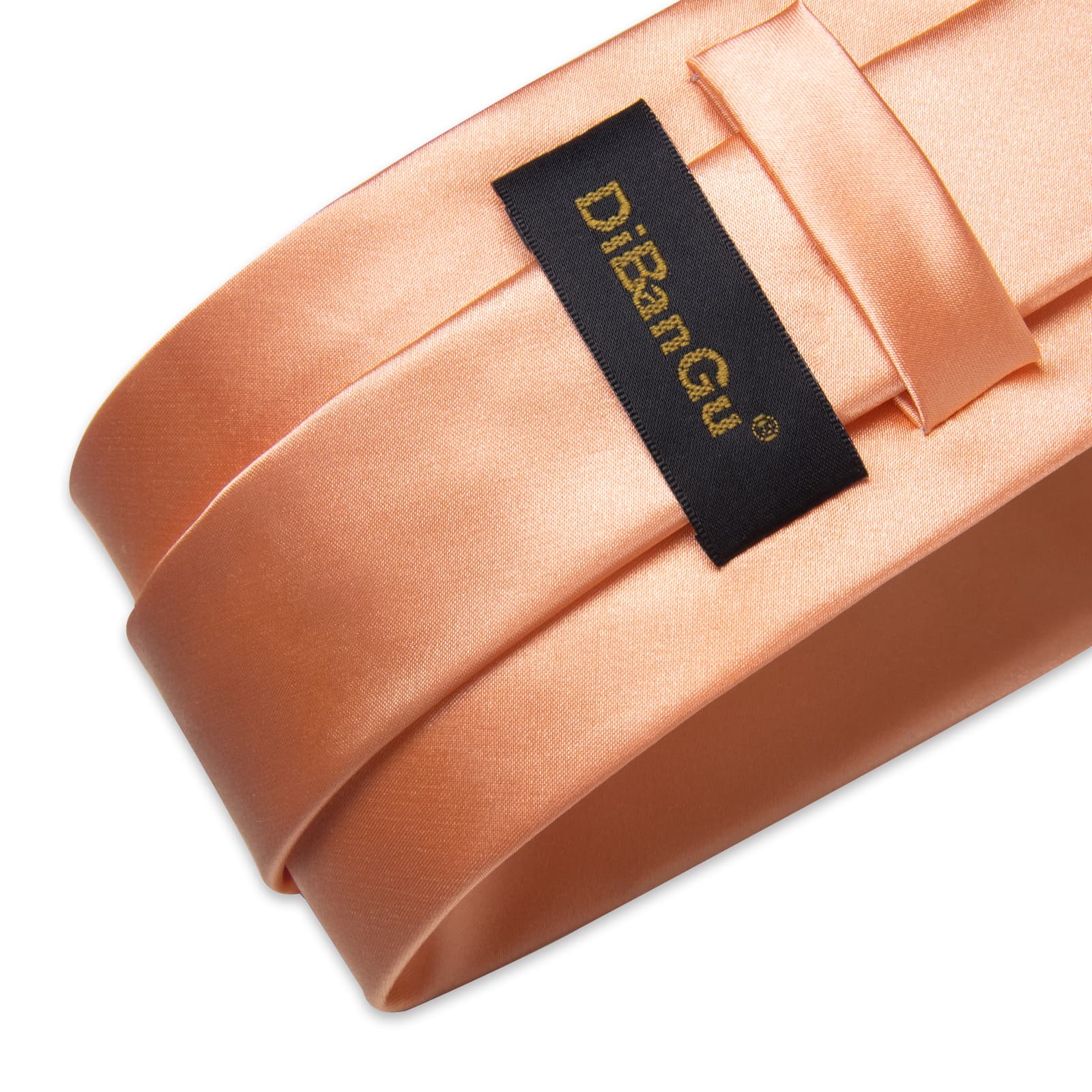 DiBanGu Dress Tie Pale Copper Orange Solid Mens Silk Business Tie Pocket Square Cufflinks Clip Set