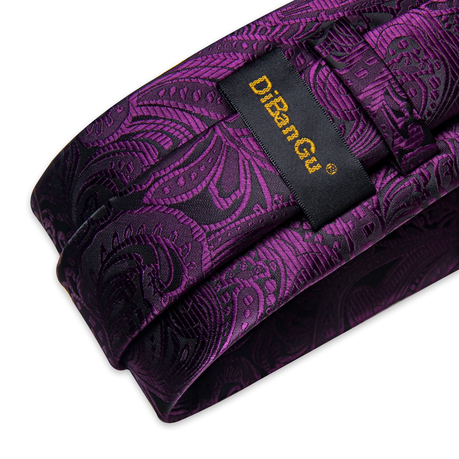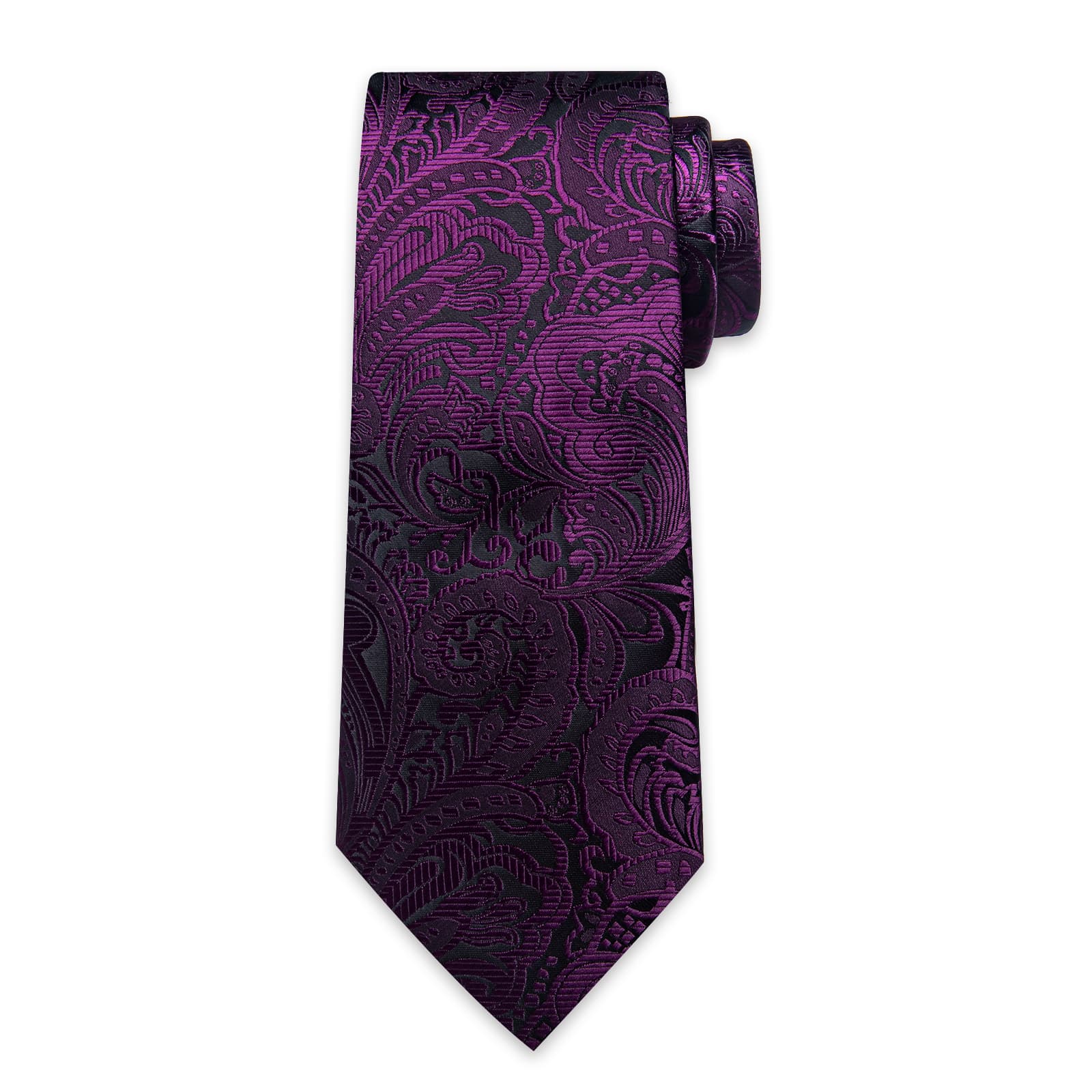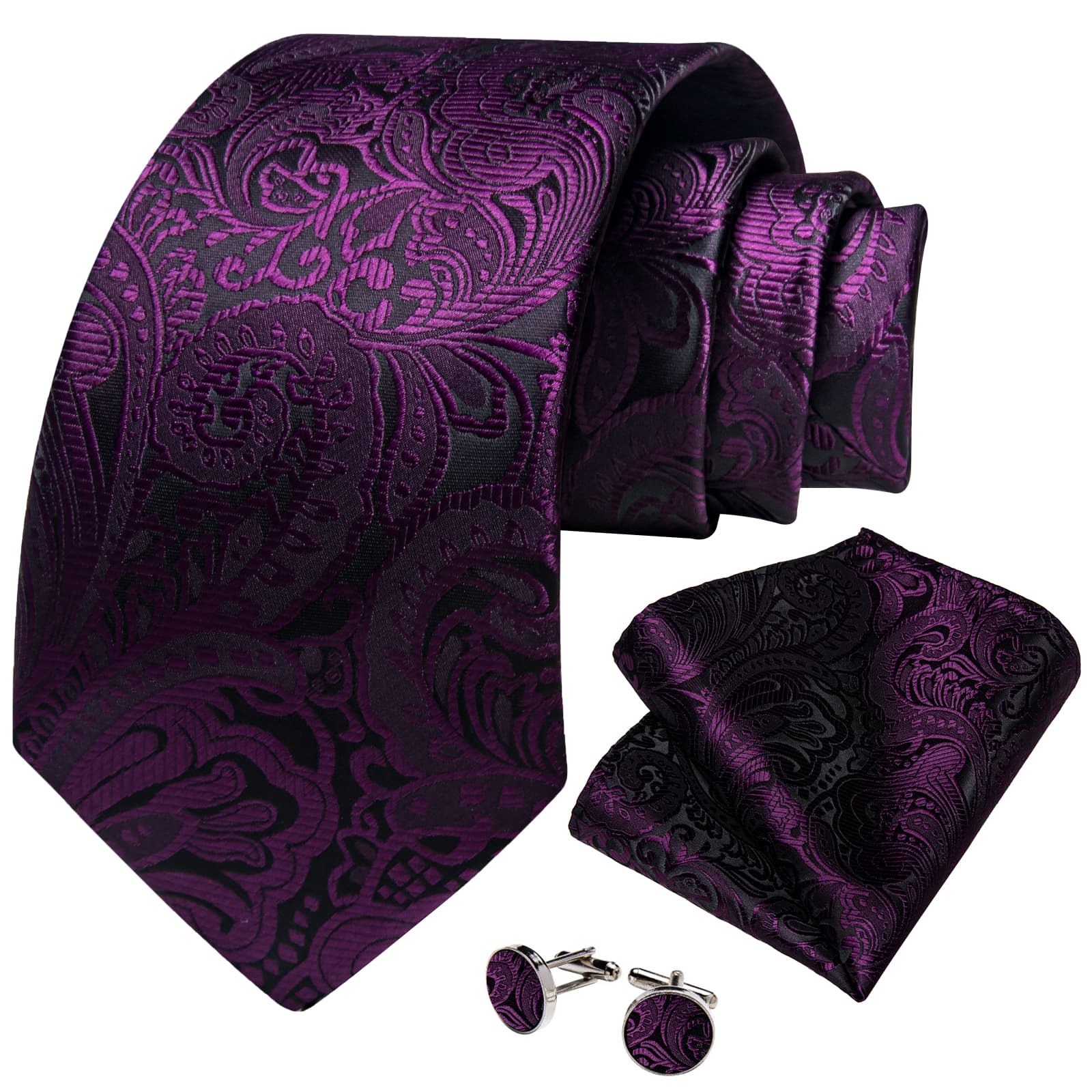 DiBanGu Dress Tie Tyrian Purple Floral Mens Silk Business Work Tie Handkerchief Cufflinks Clip Set