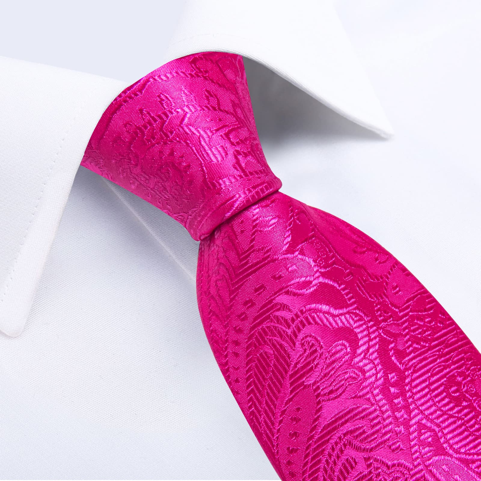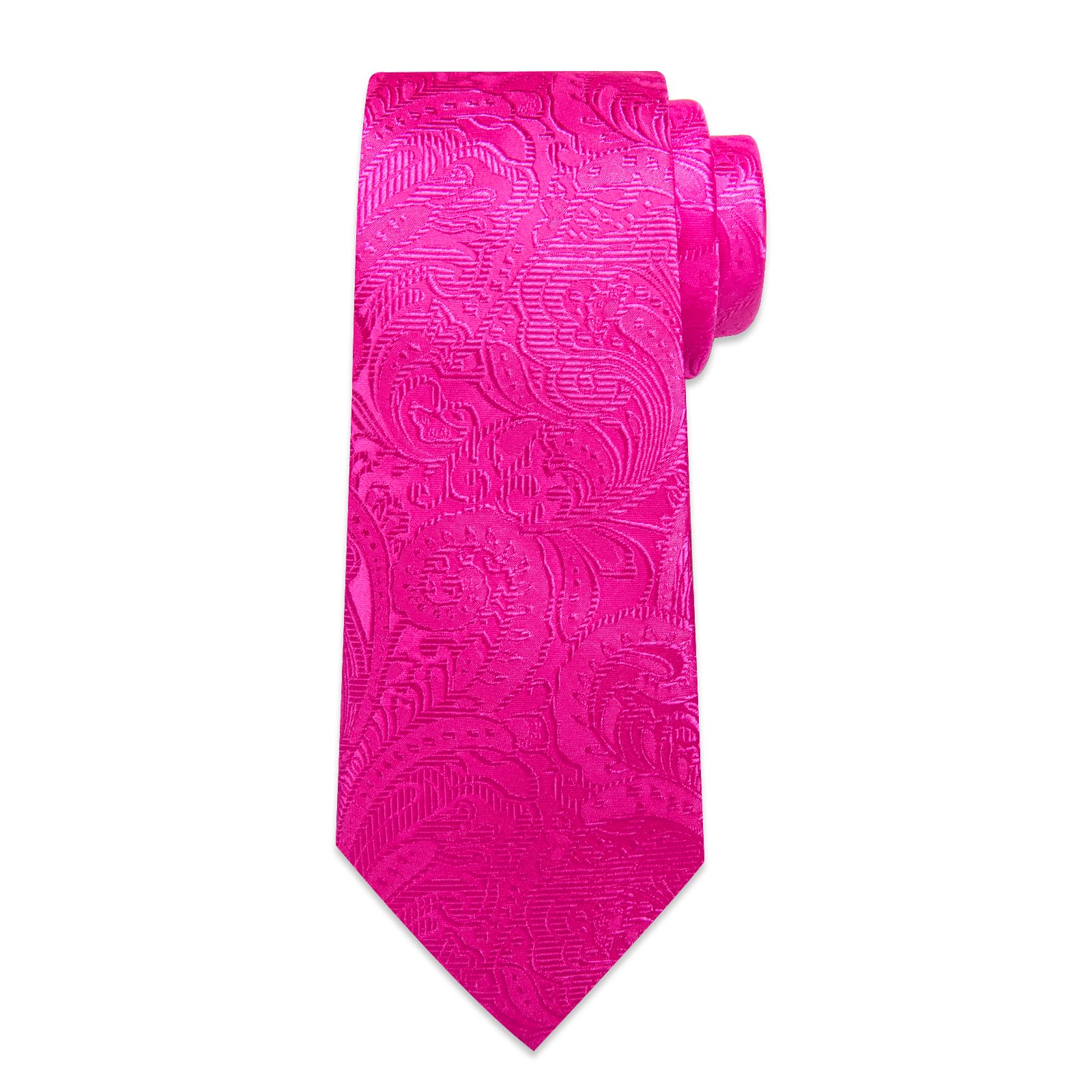 DiBanGu Hot Pink Paisley Silk Mens Tie Pocket Square Cufflinks Clip Set