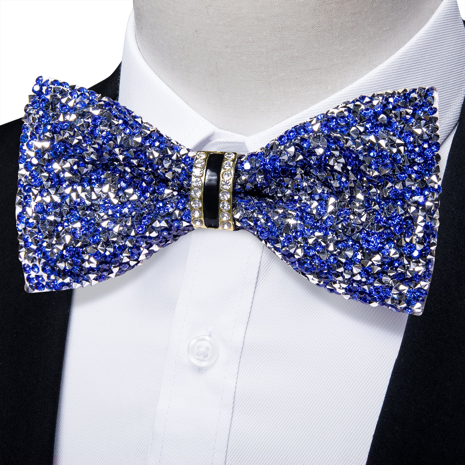 DiBanGu Imitation Crystal Bowtie Gorgeous Plastic Blue Silver Diamond Men's Pre-Bow Tie
