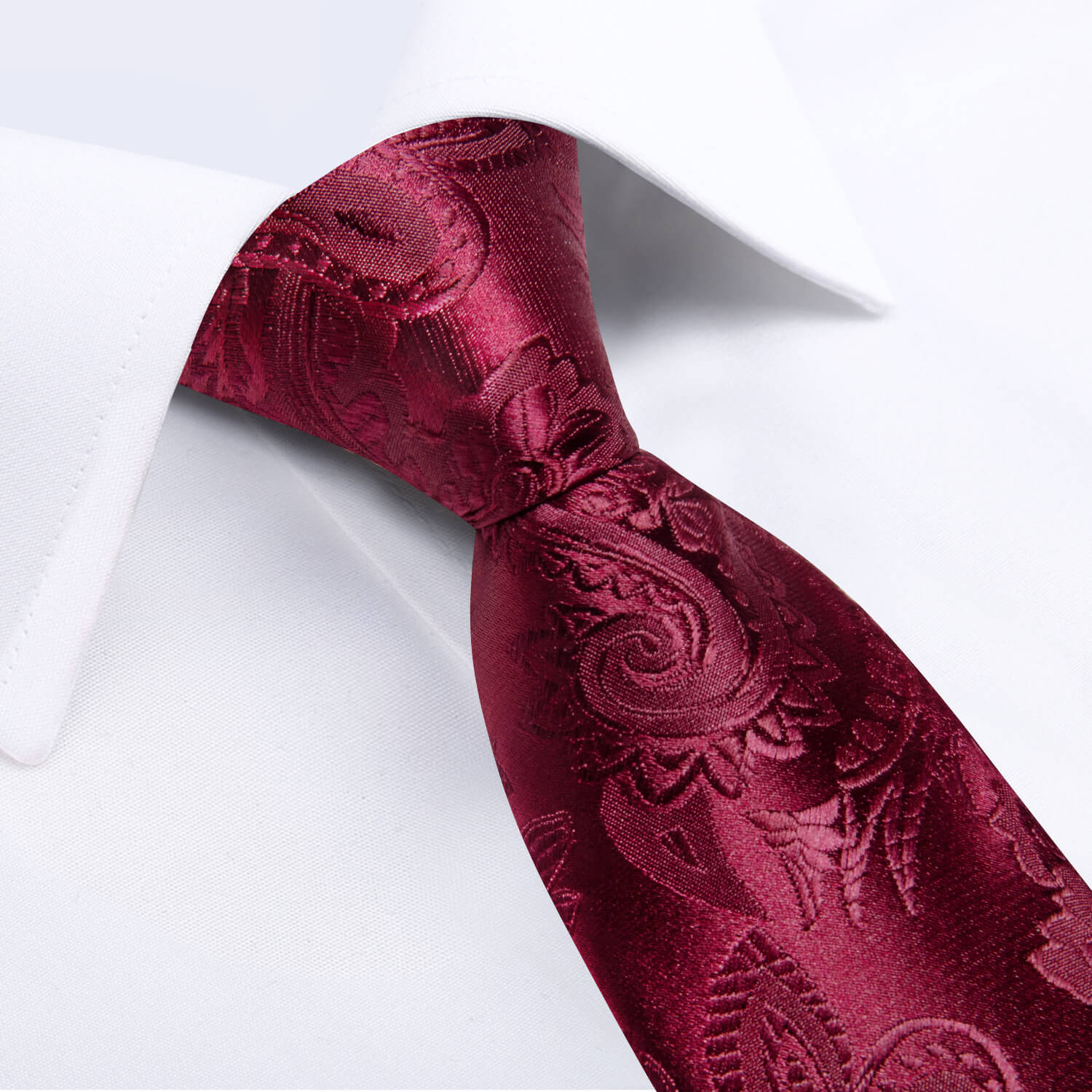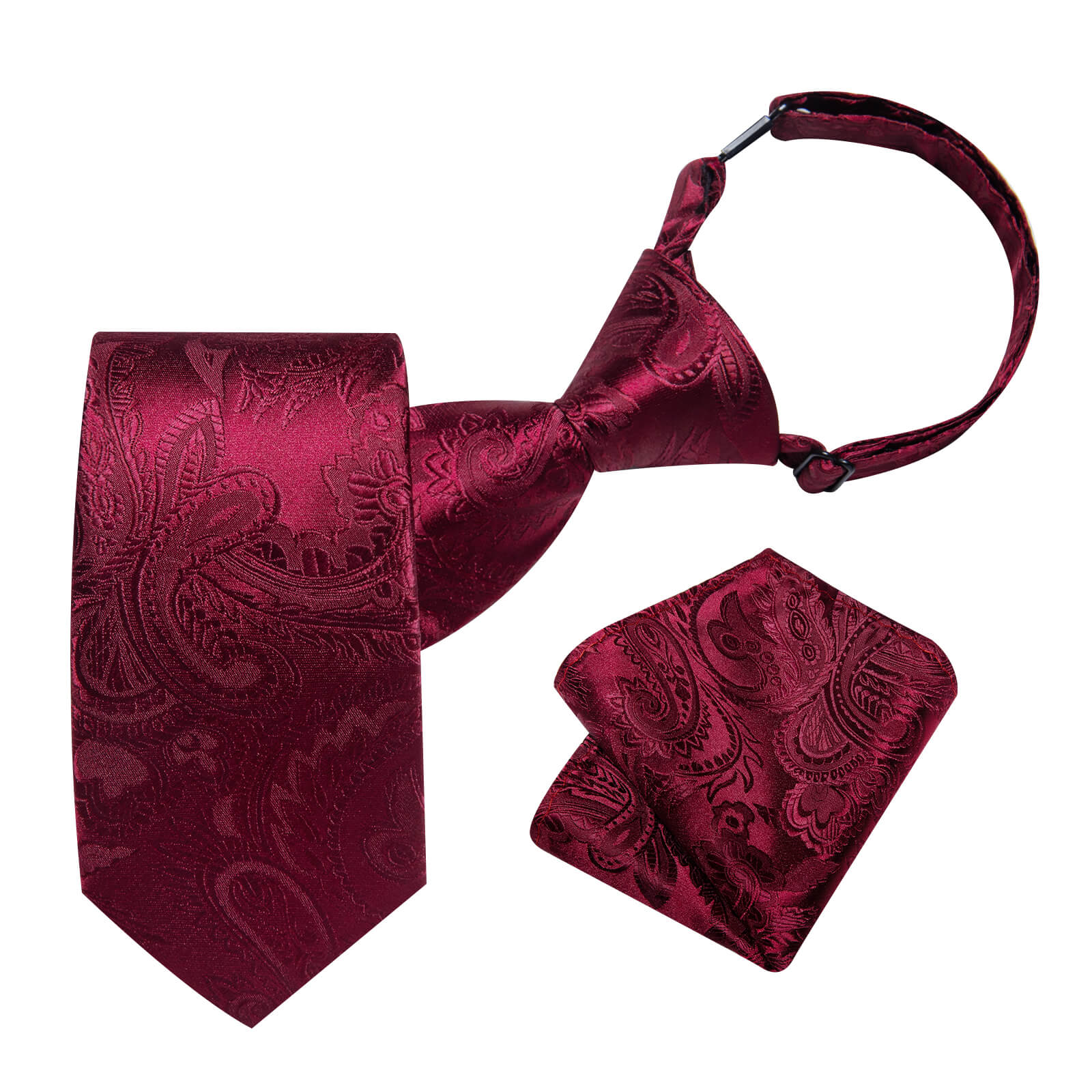 DiBanGu Kids Tie Burgundy Woven Paisley Silk Tie Pocket Square Set