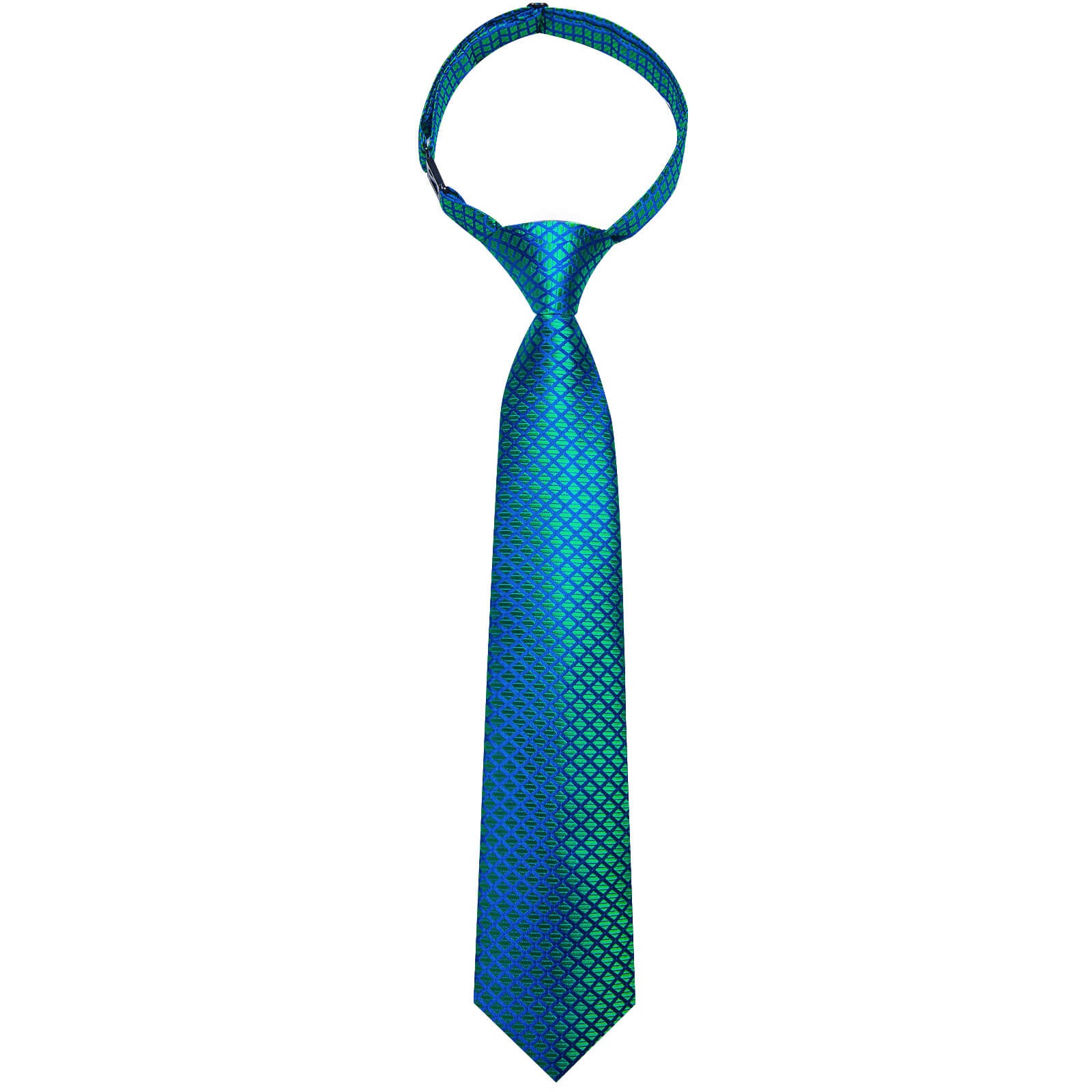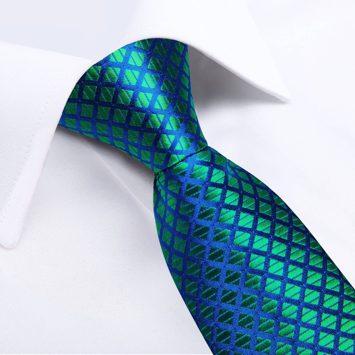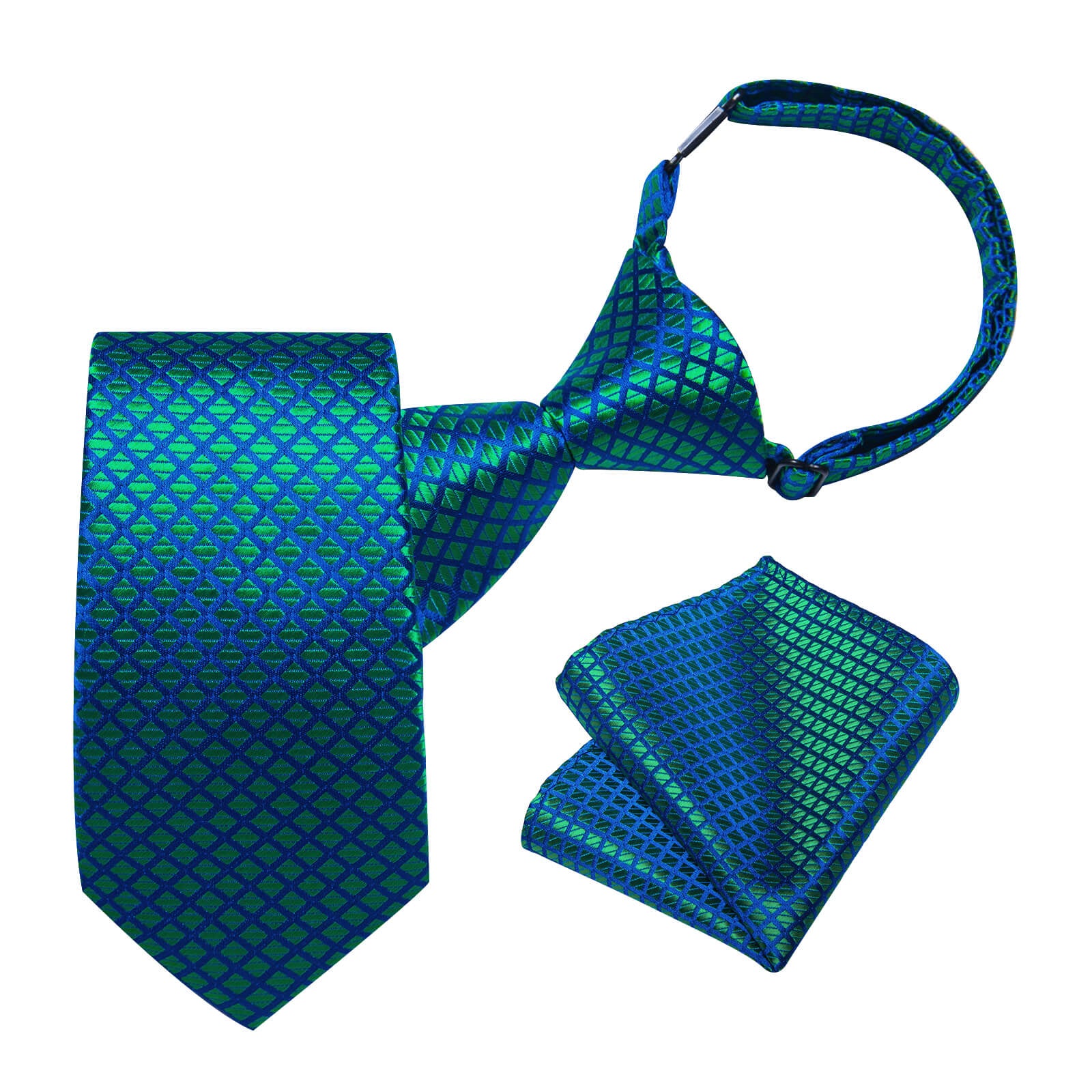 DiBanGu Kids Tie Green Blue Woven Plaid Silk Tie Pocket Square Set