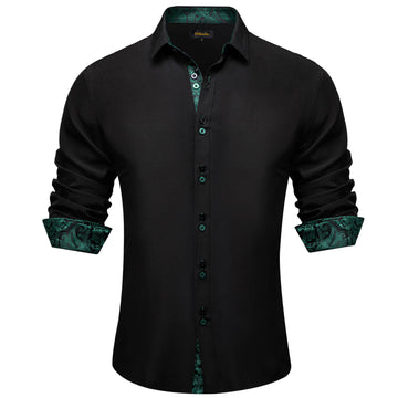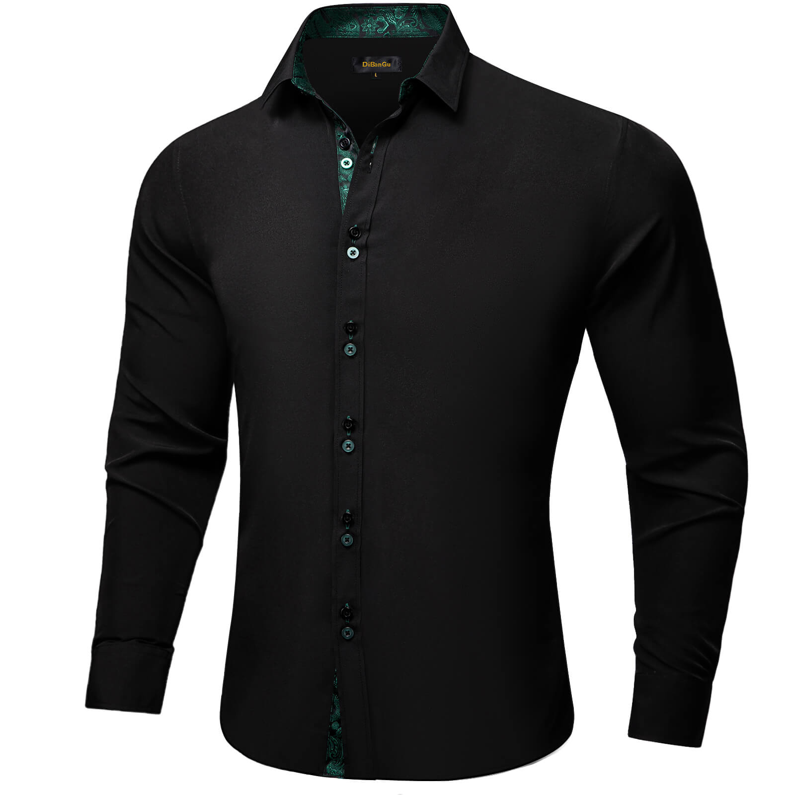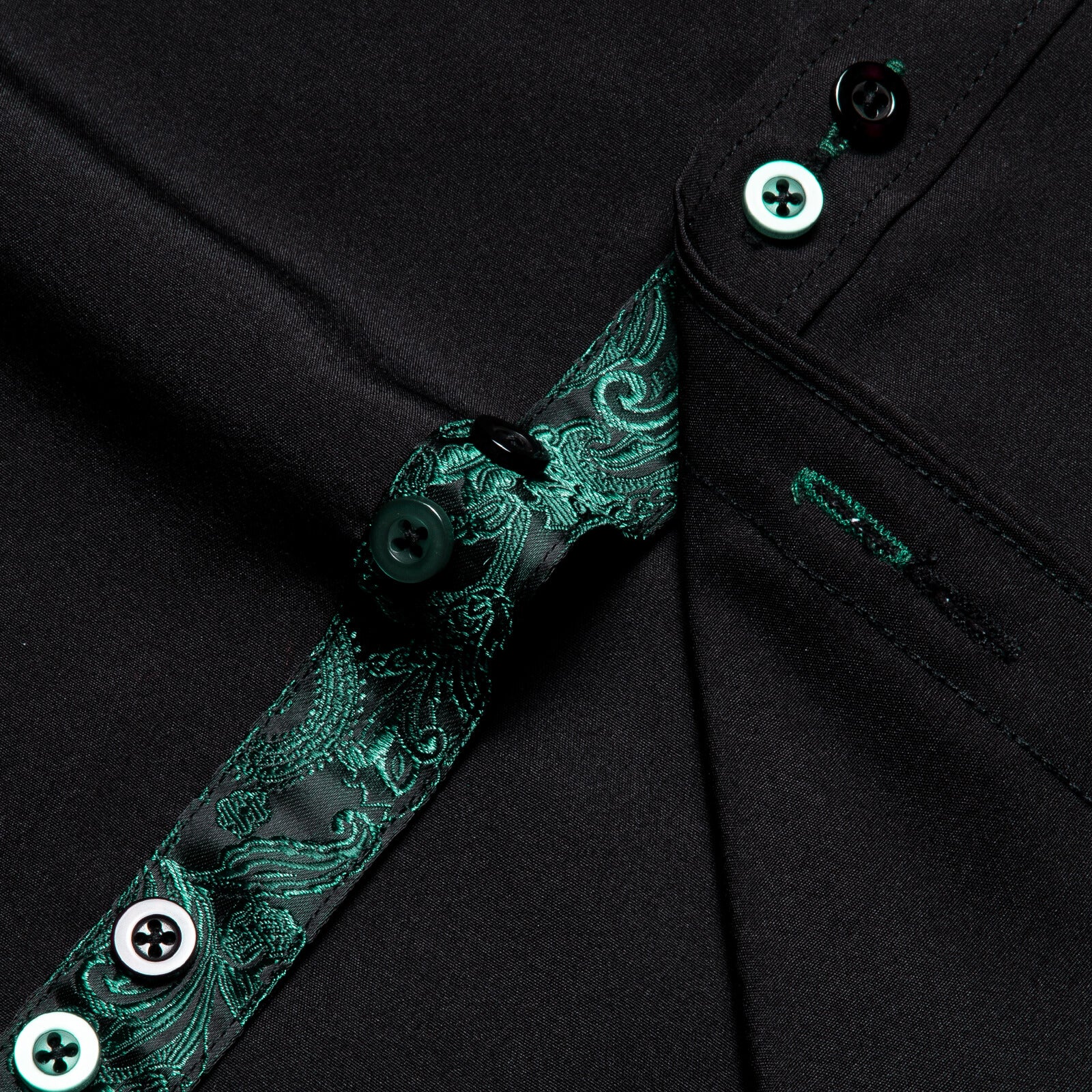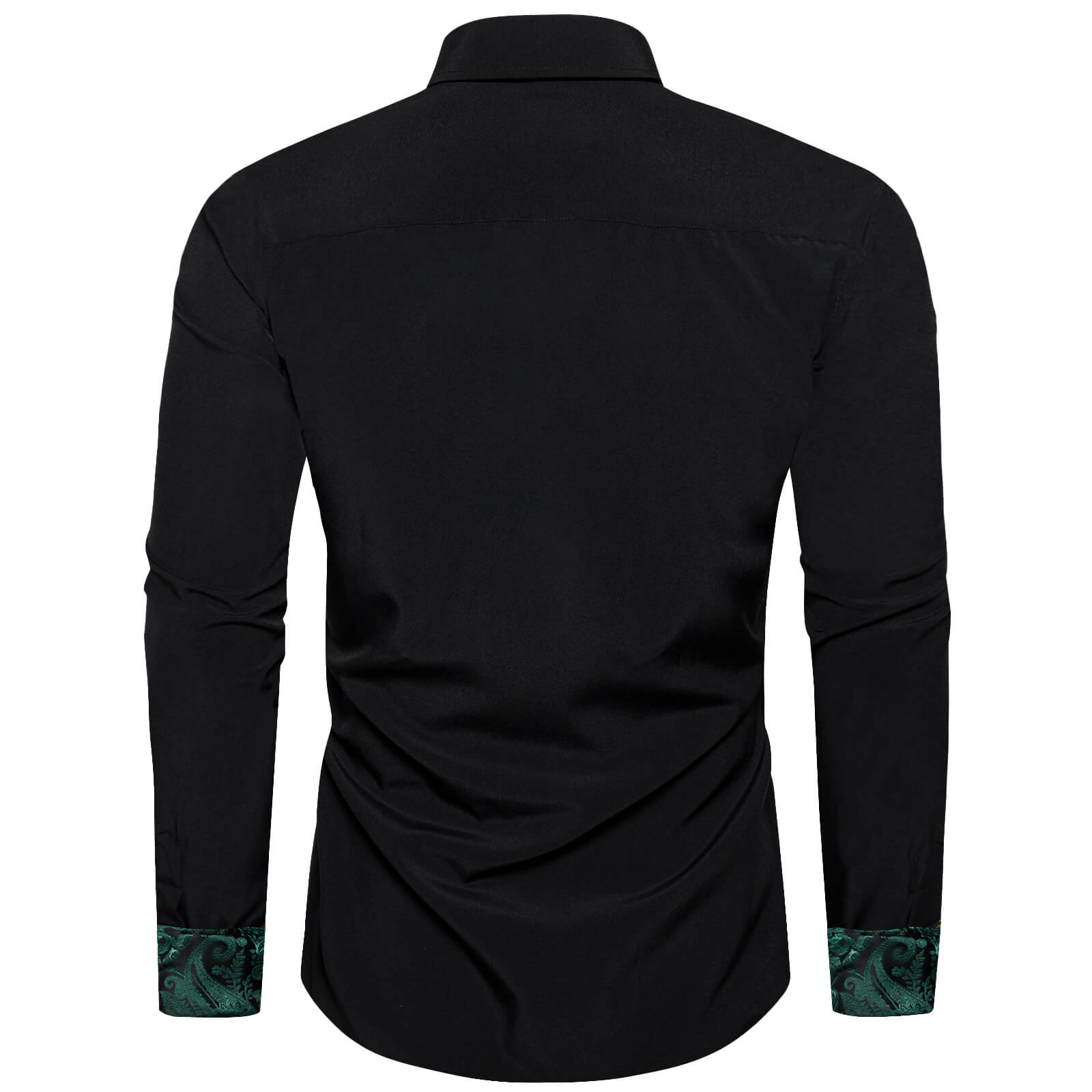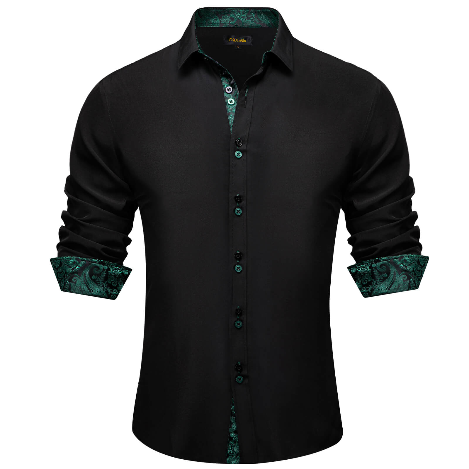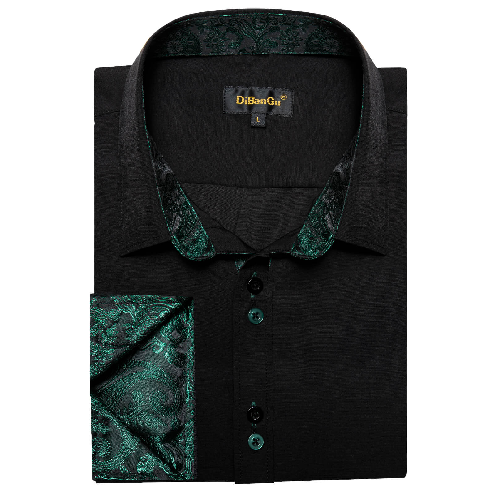 DiBanGu Men's Shirt Black Solid Green Paisley Splicing Silk Shirt