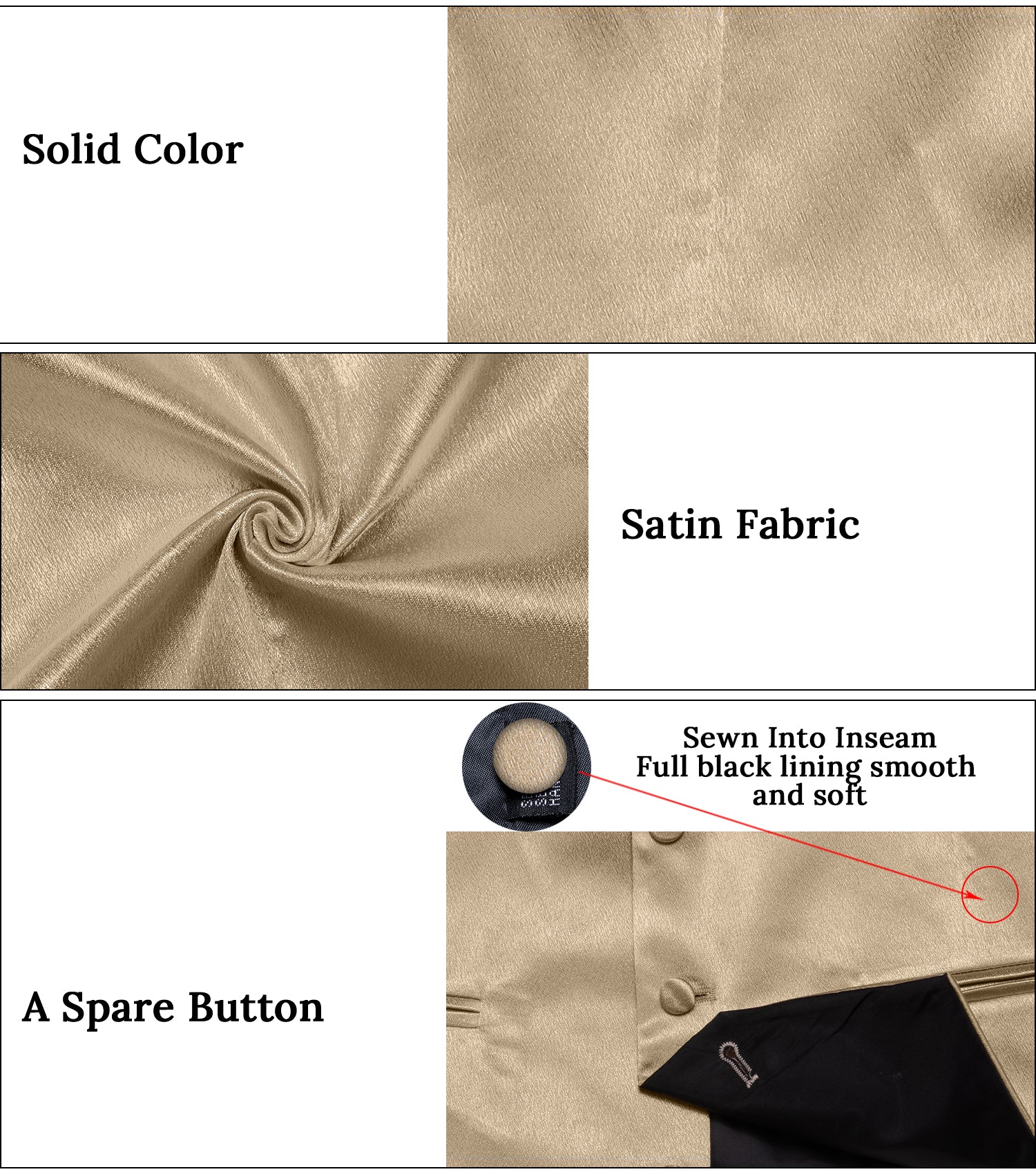 DiBanGu Mens Suit Vest Champagne Solid Satin Waistcoat Vest Tie Handkerchief Cufflinks Set