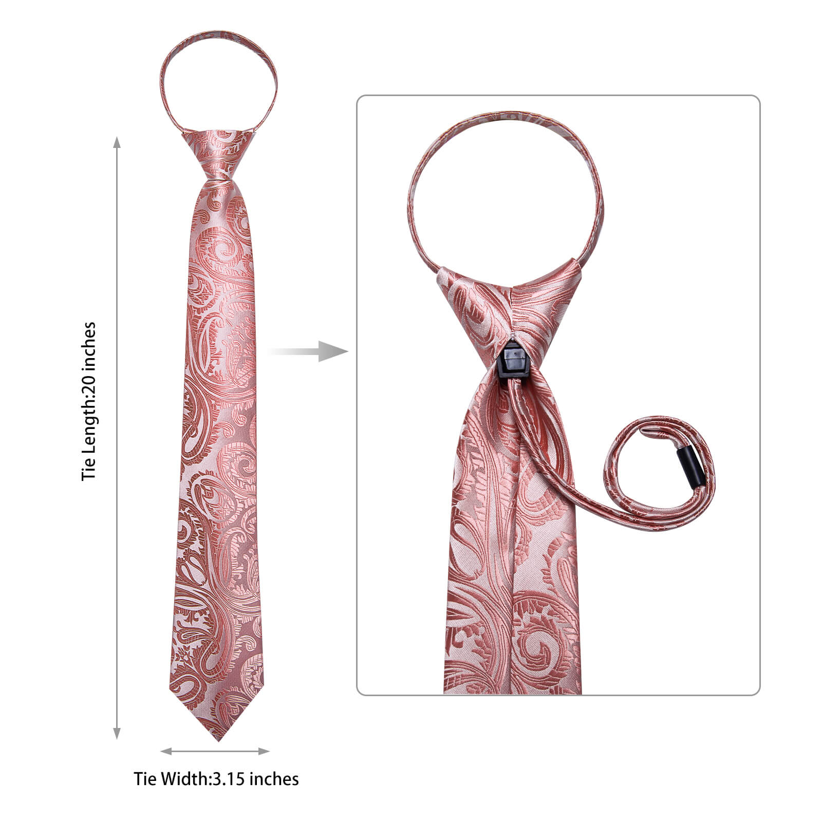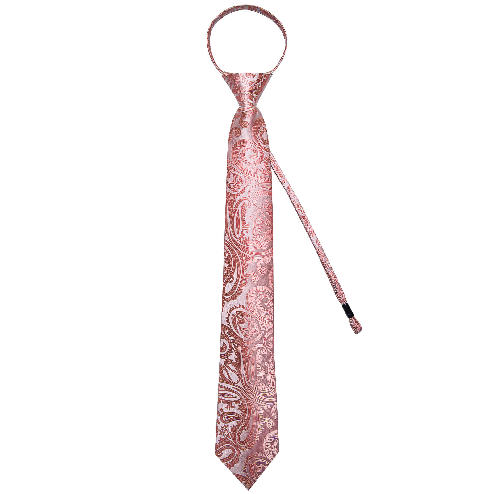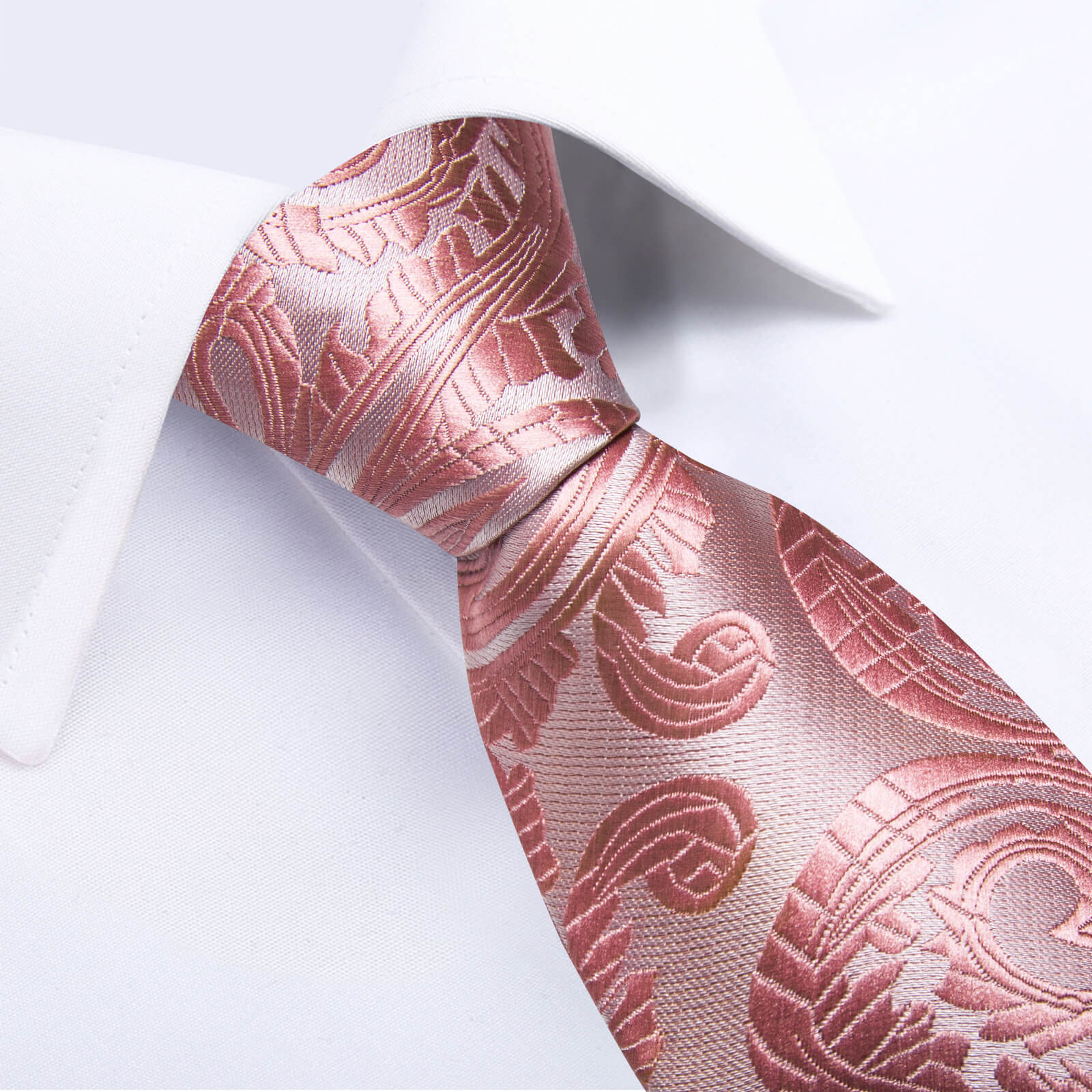 DiBanGu Men's Tie Pink Jacquard Paisley Bucket Silk Tie Set Fashion