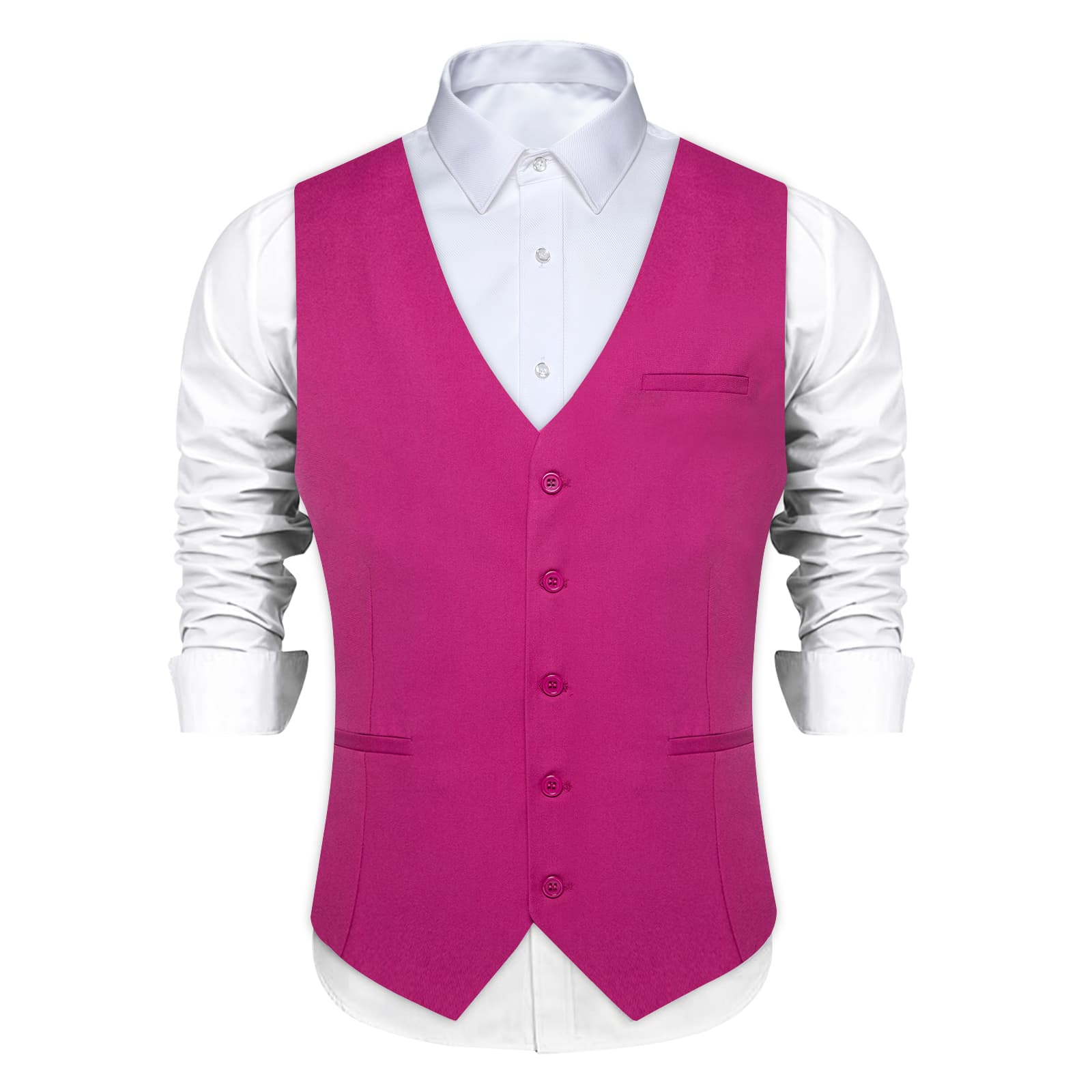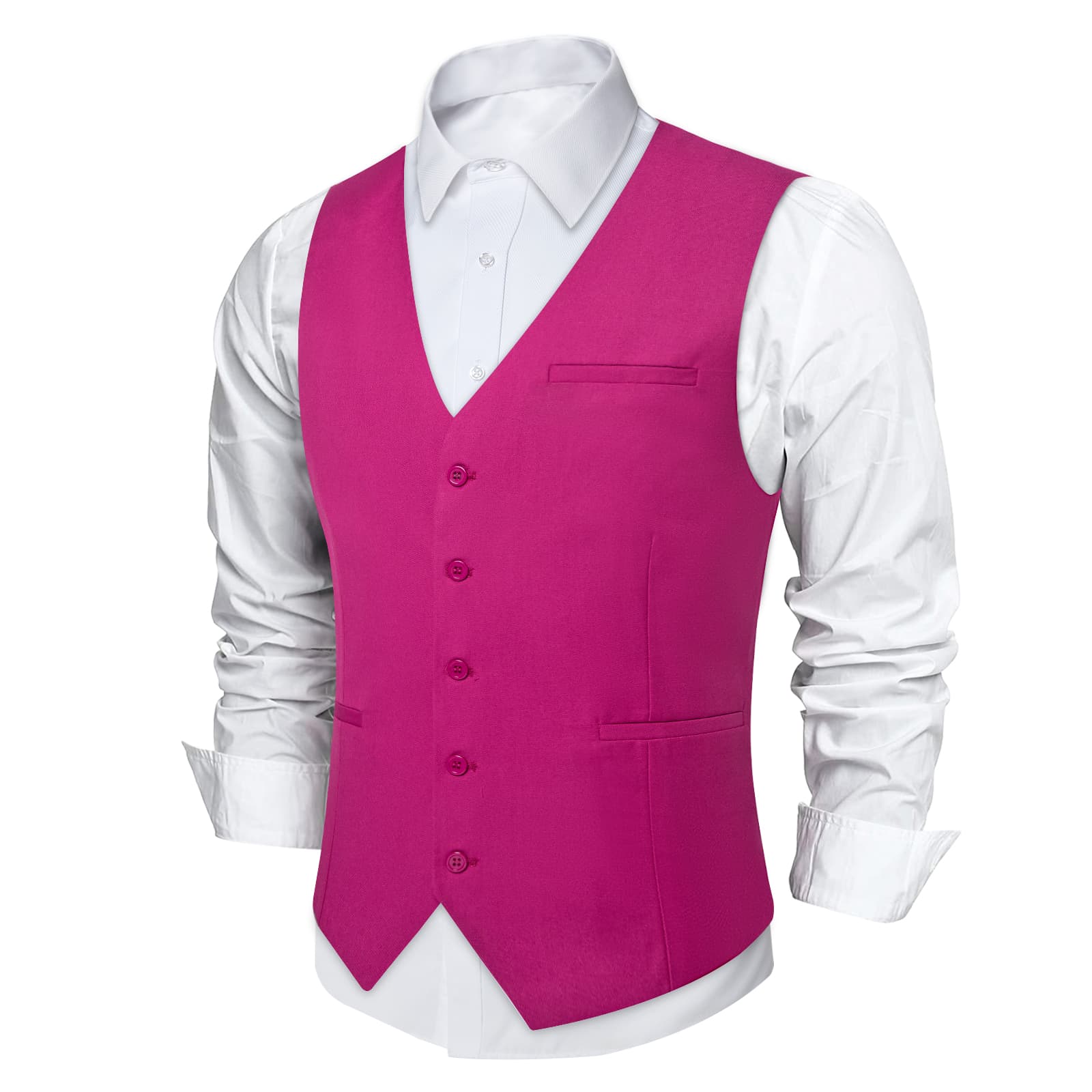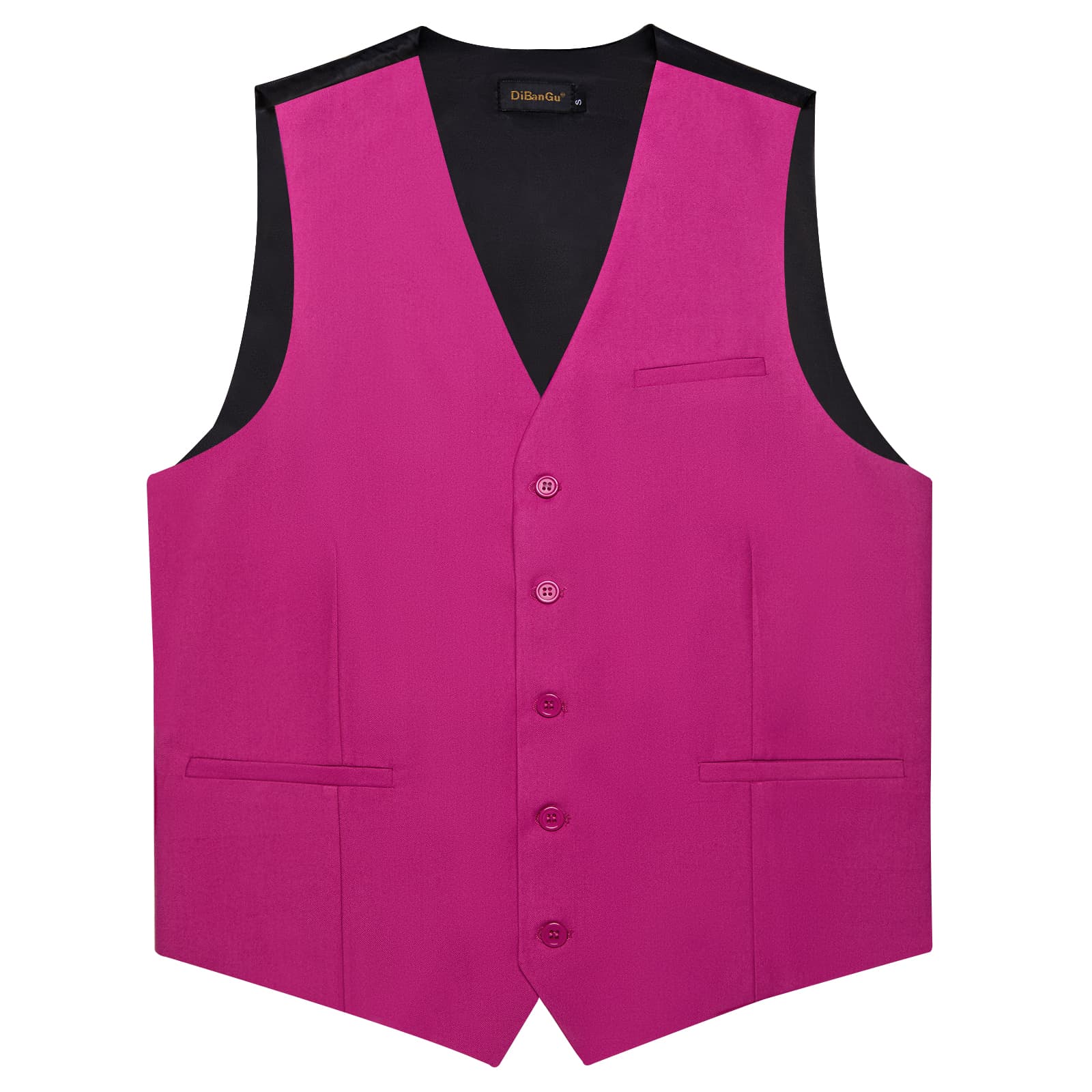 DiBanGu Mens Vest Medium Pink Solid V Neck Work Waistcoat Silk Button Vest