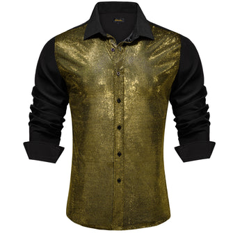 DiBanGu Black Silk Golden Glitter Stitching Men's Shirt