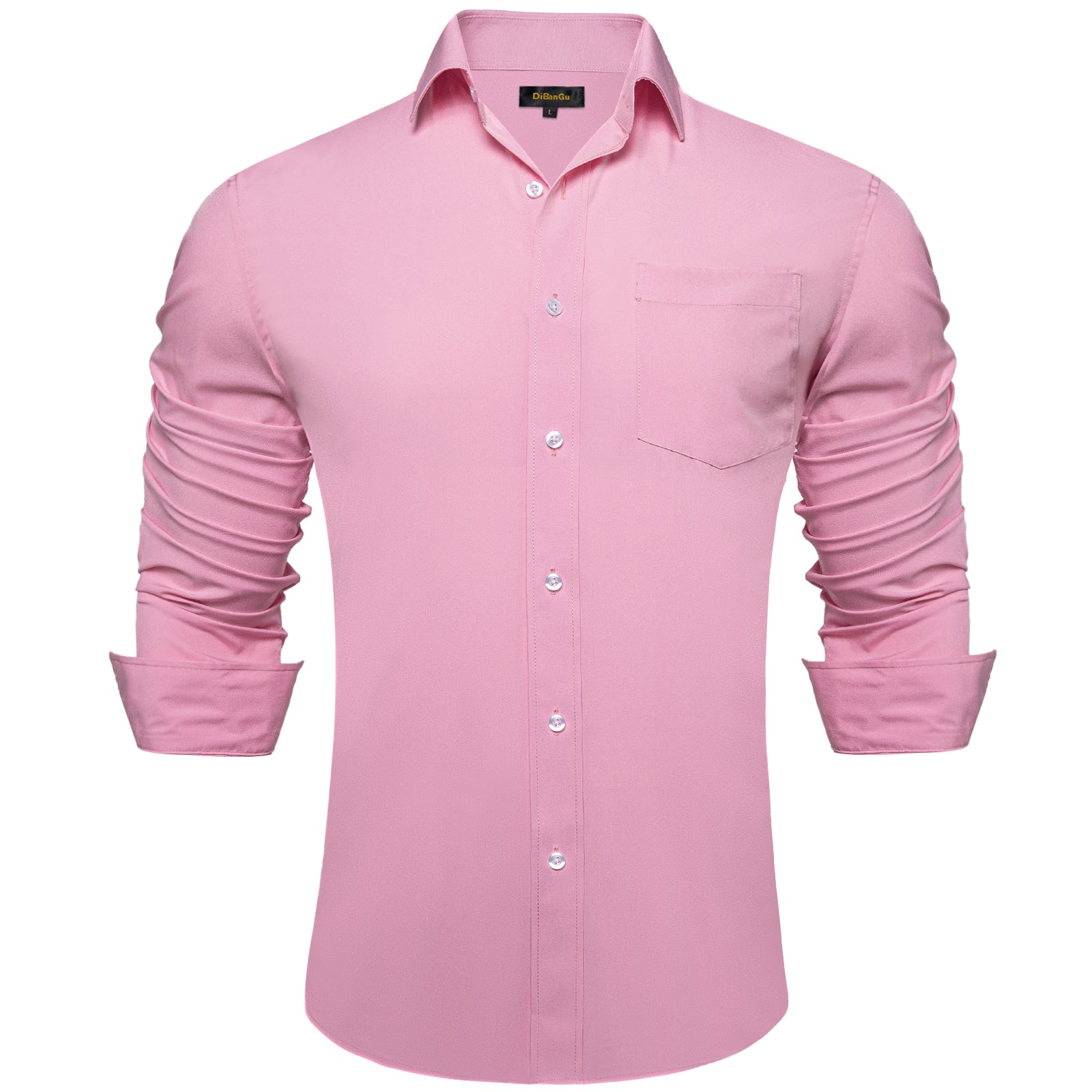 DiBanGu Petal Pink Solid Silk Men's Business Shirt