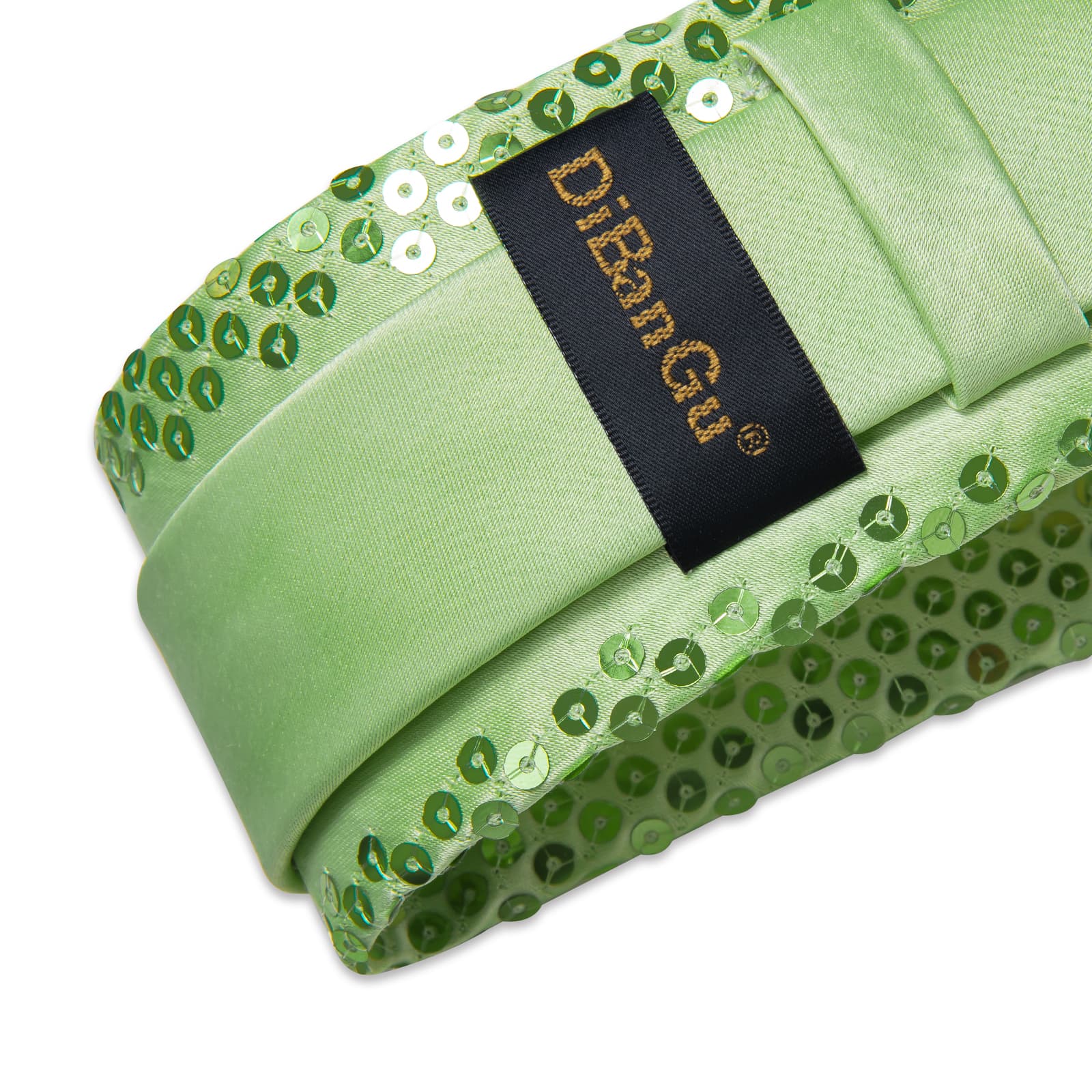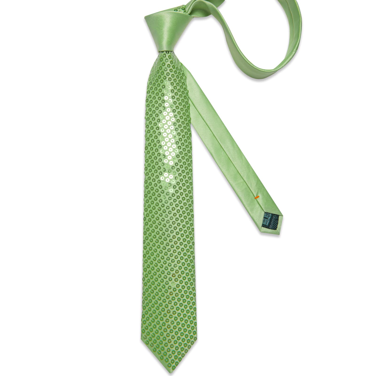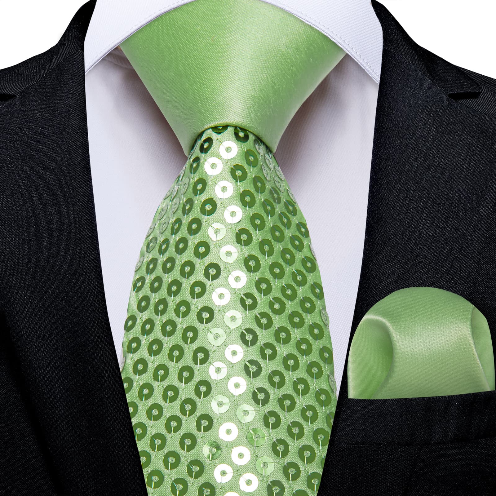DiBanGu Sequin Tie Apple Green Solid Mens Dress Tie Pocket Square Clip Set for Party