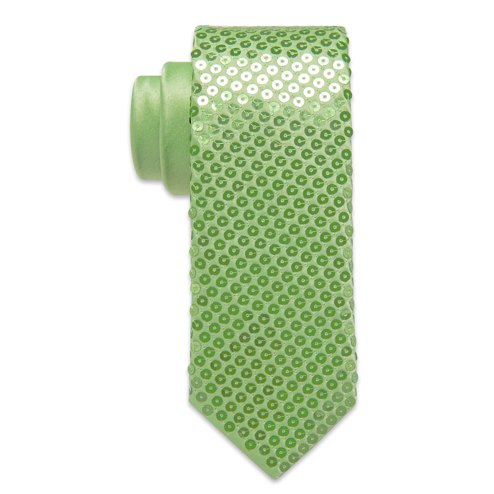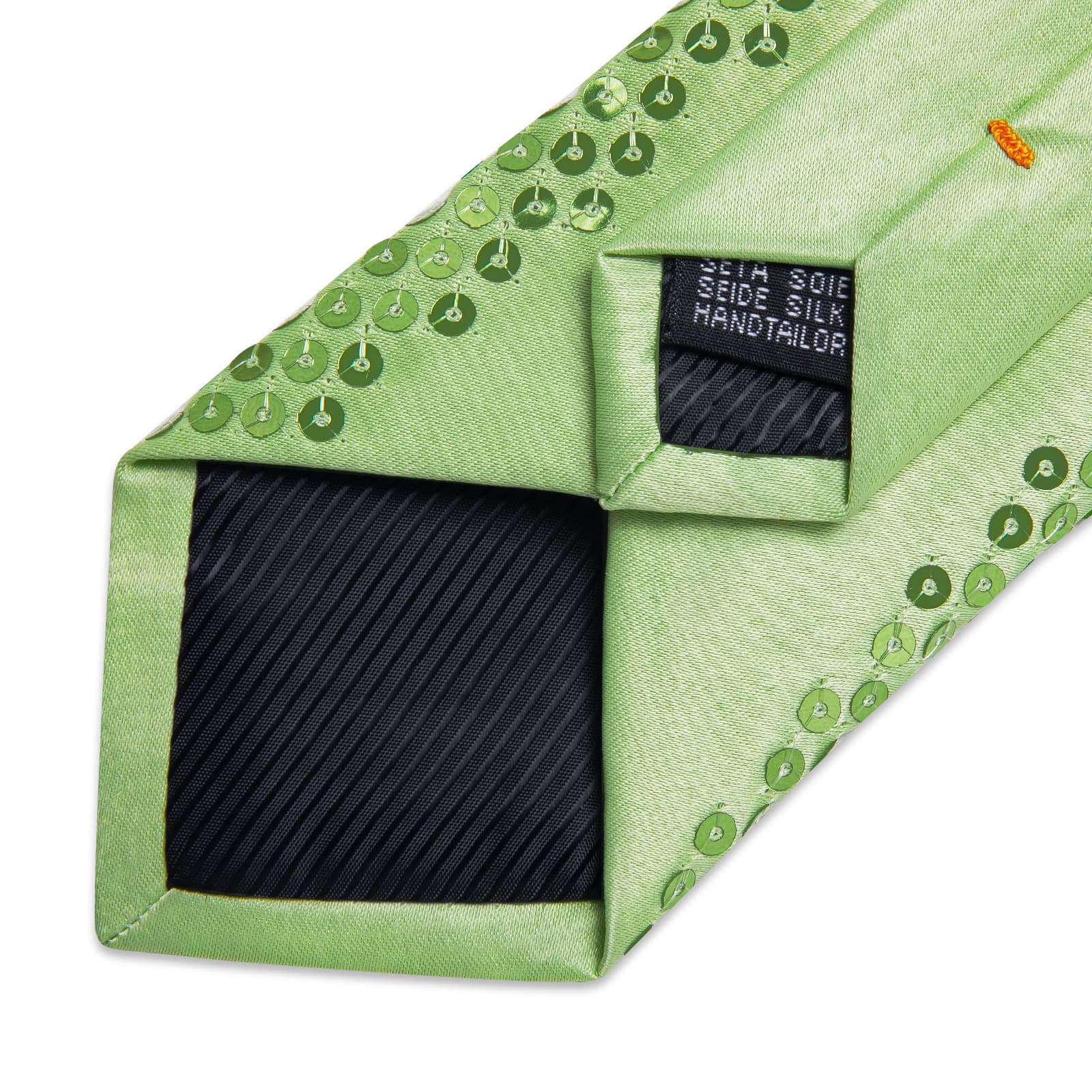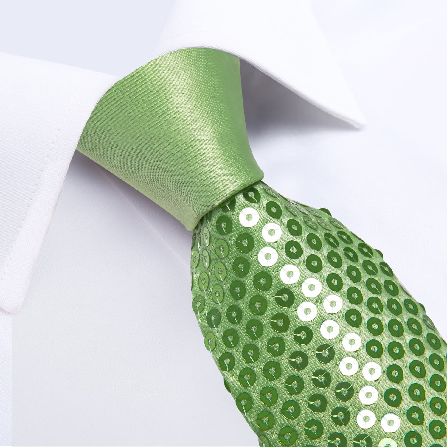 DiBanGu Sequin Tie Apple Green Solid Mens Dress Tie Pocket Square Clip Set for Party