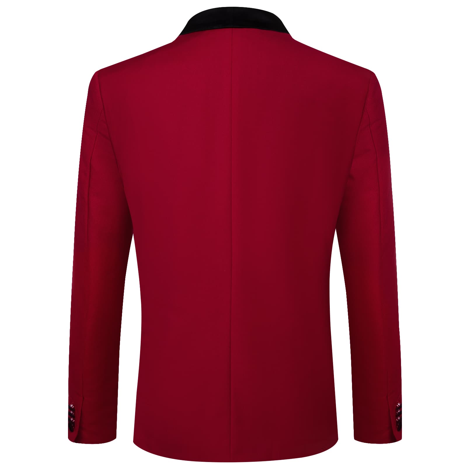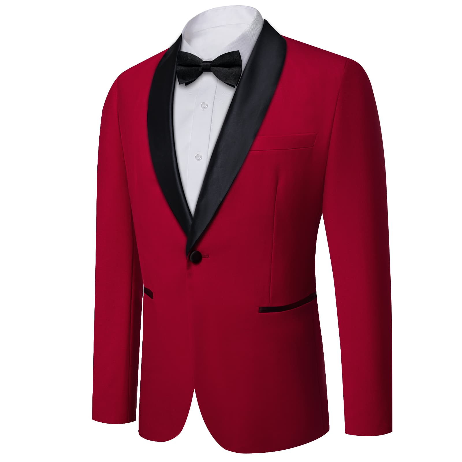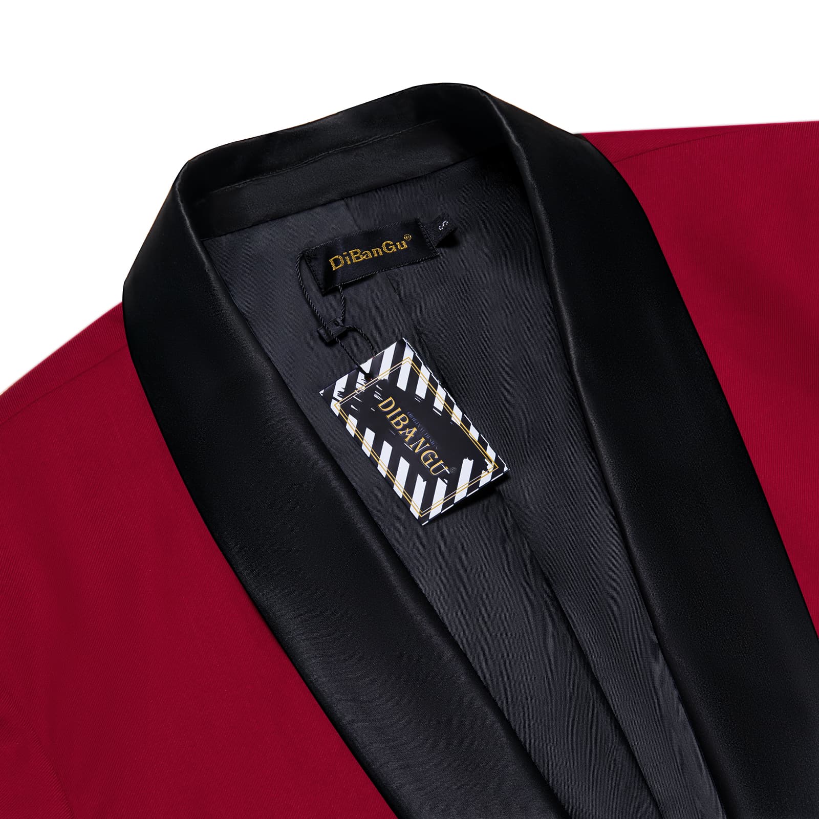 DiBanGu Shawl Collar Suit Burgundy Solid Silk Mens Slim Fit Business Suit