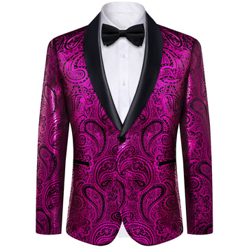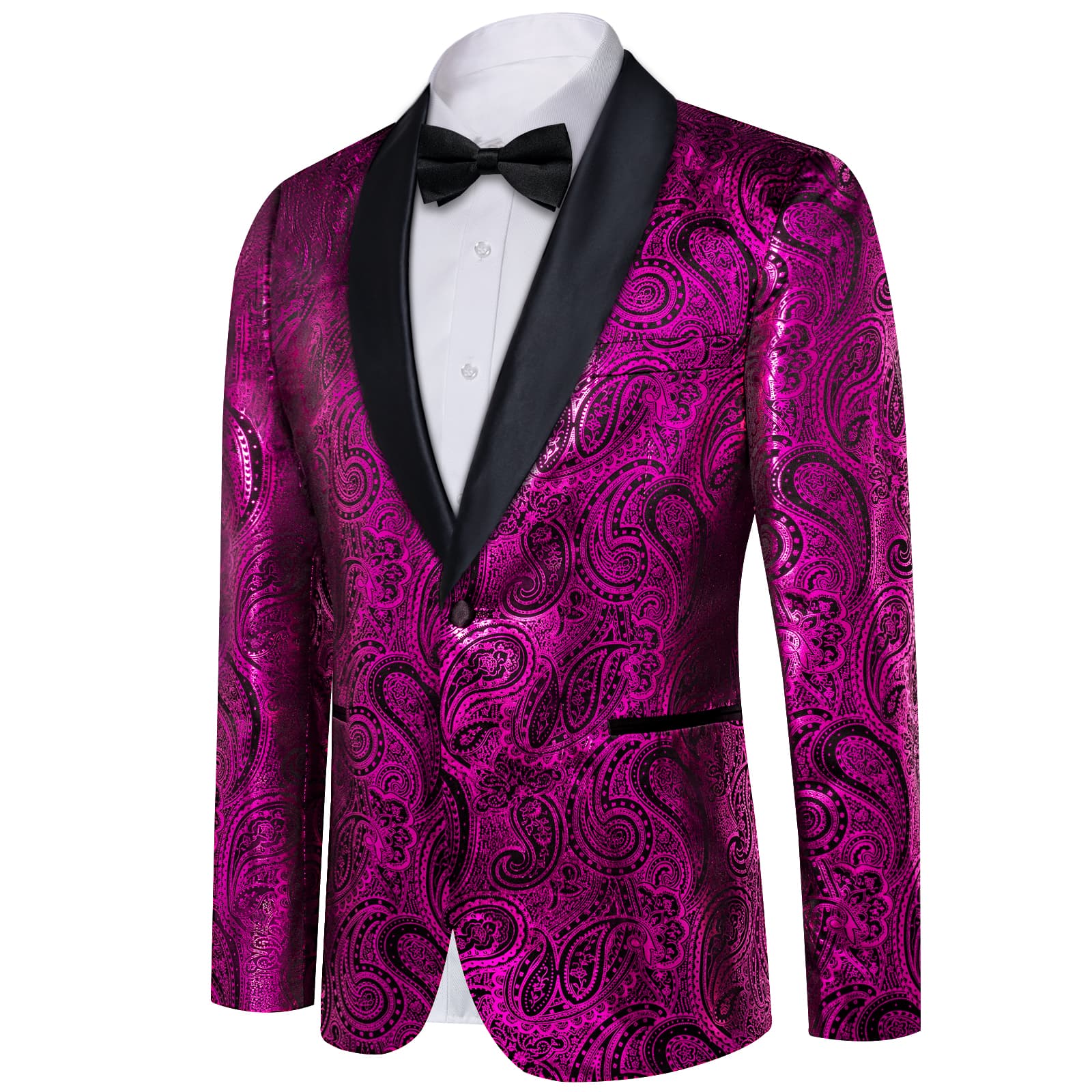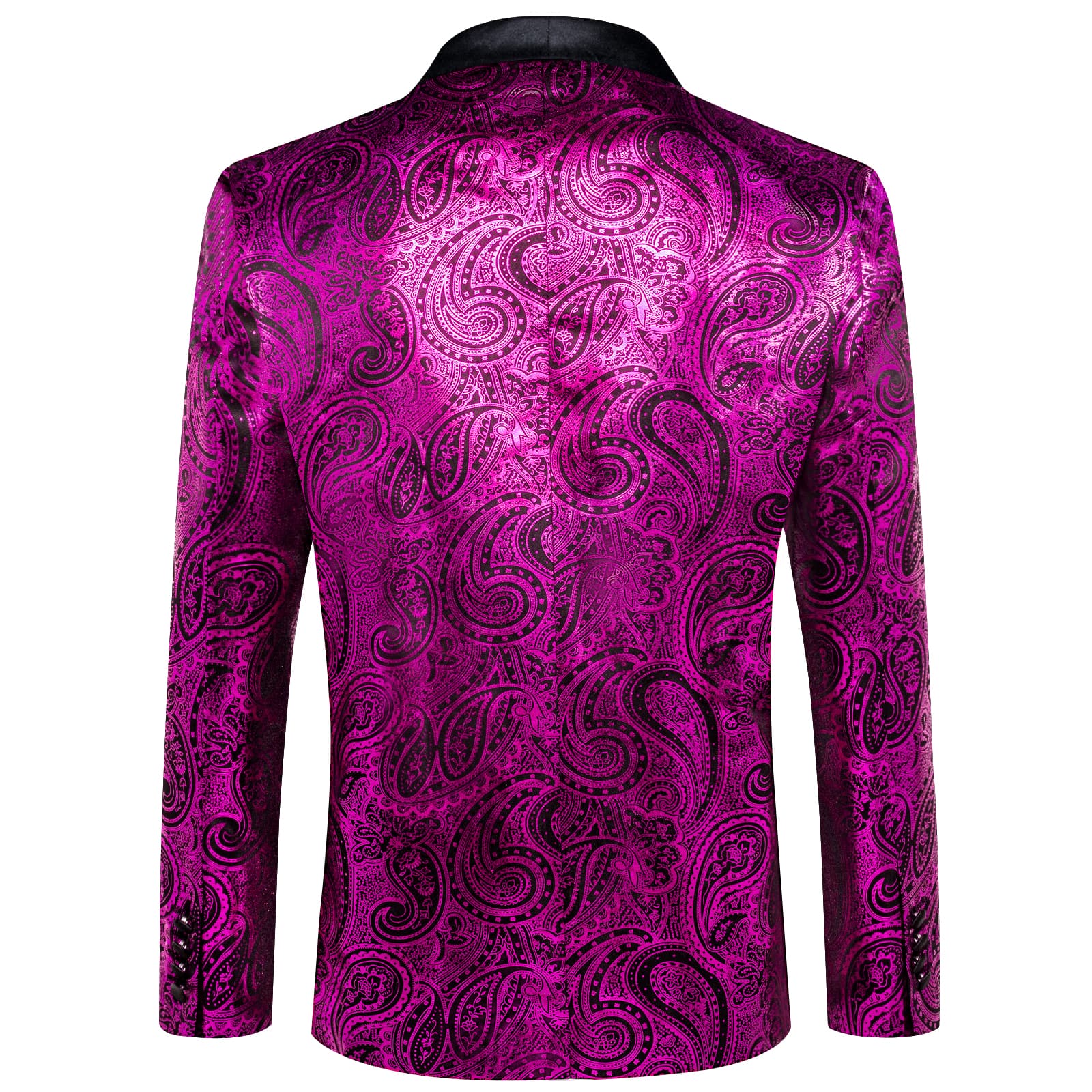 DiBanGu Shawl Collar Suit Byzantine Purple Paisley Silk Mens Slim Fit Business Suit