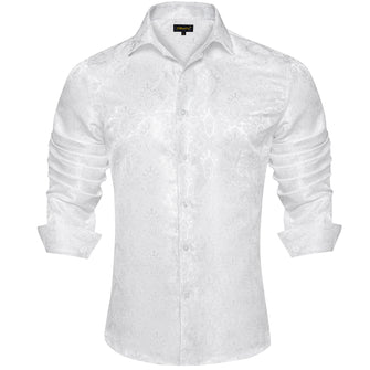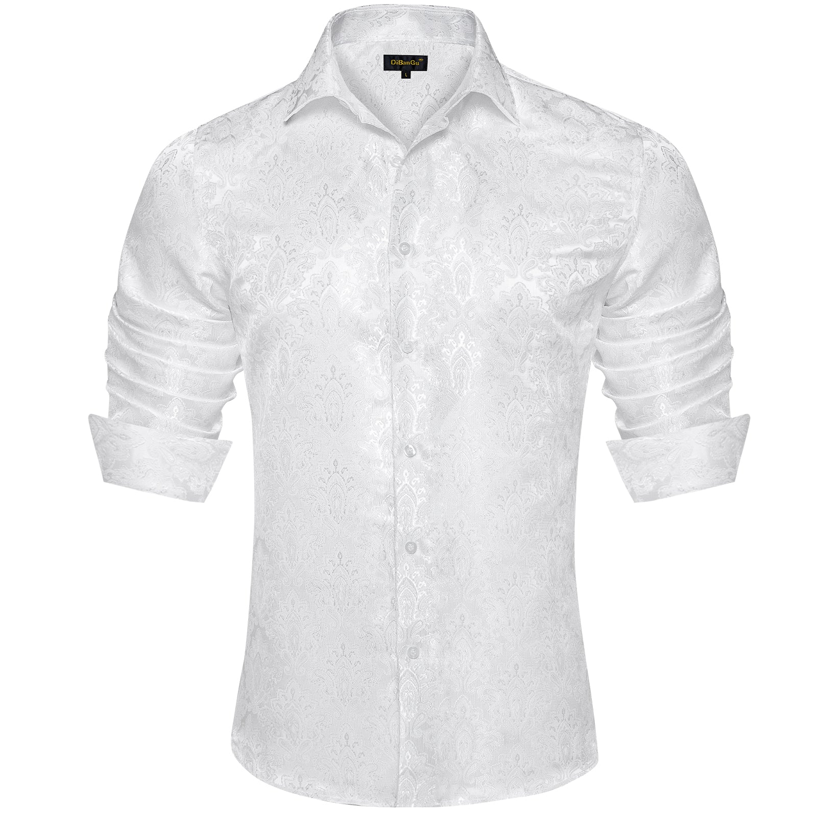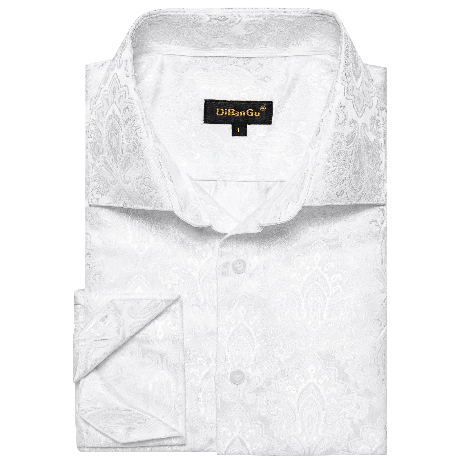 DiBanGu Shirts for Men White Floral Silk Men's Long Sleeve Shirt