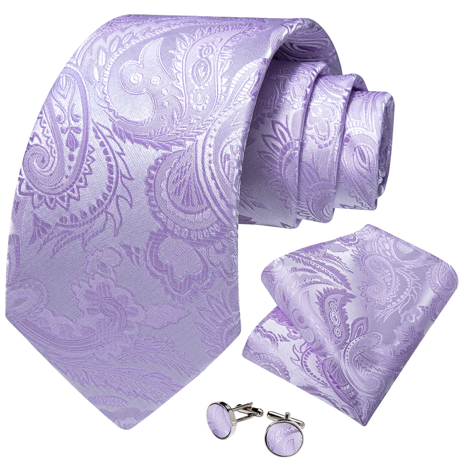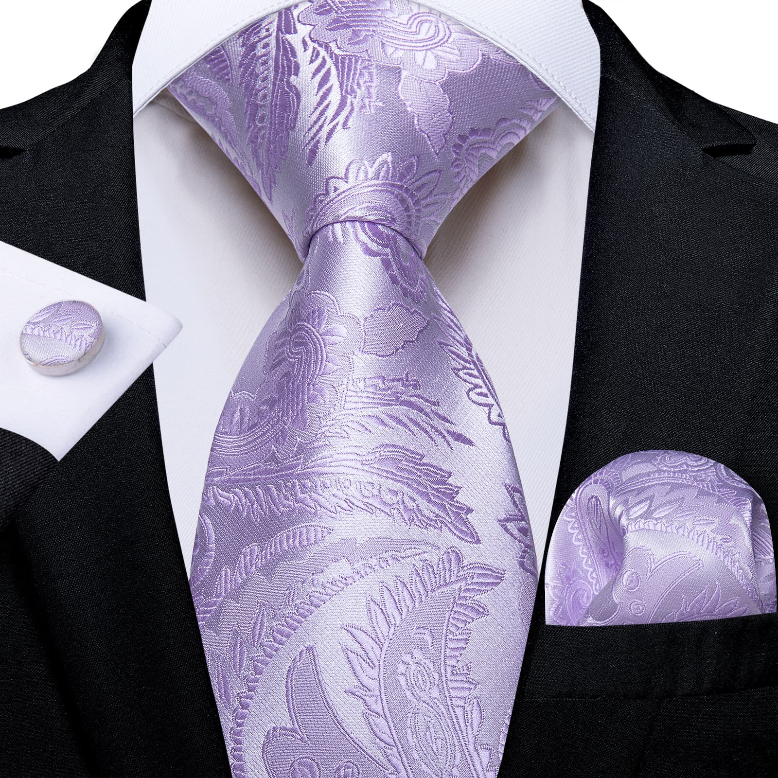 DiBanGu Silk Necktie Periwinkle Purple Floral Mens Dress Silk Tie Pocket Square Cufflinks Clip Set