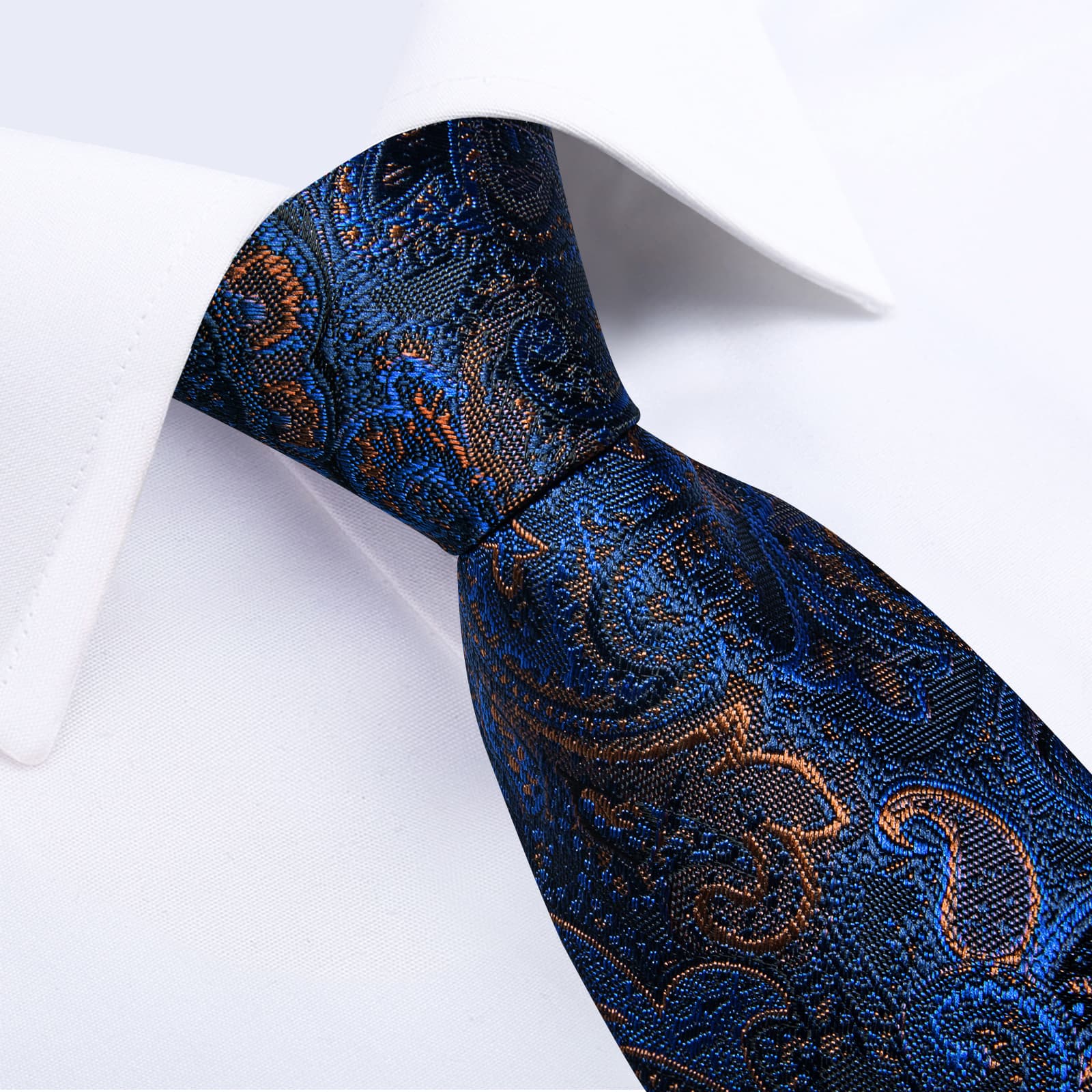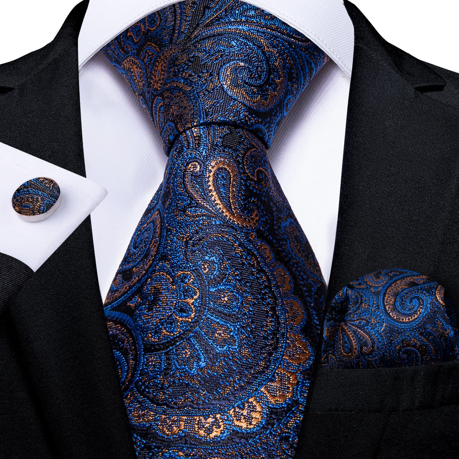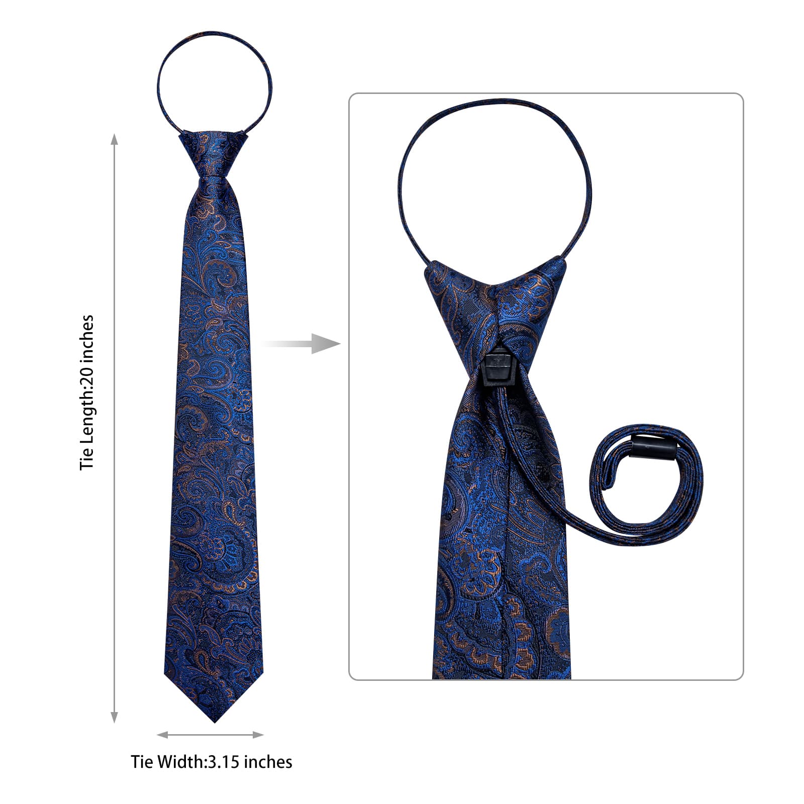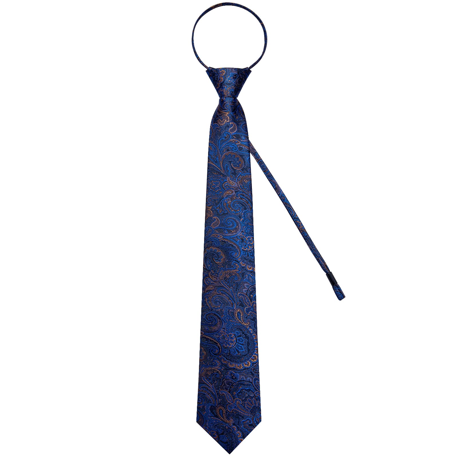 DiBanGu Silk Tie Azure Blue Paisley Lazy Easy-pull Mens Dress Tie Hanky Cufflinks Set