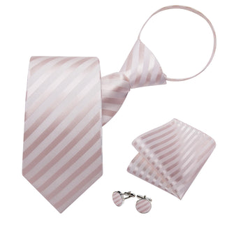 DiBanGu Silk Tie Lemonade Pink Striped Lazy Easy-pull Mens Dress Tie Hanky Cufflinks Set