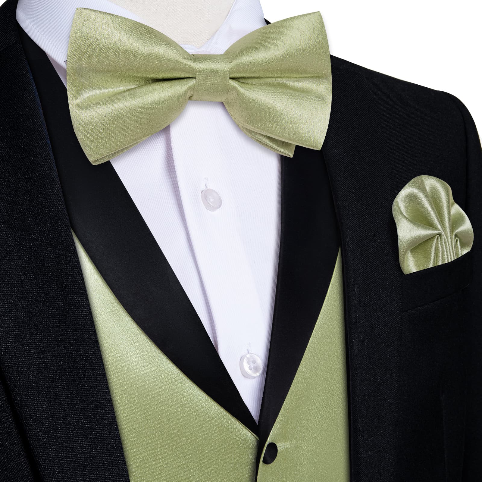 DiBanGu Tuxedo Vest Olive Green Solid Silk Mens Button Vest and Bow Tie Set