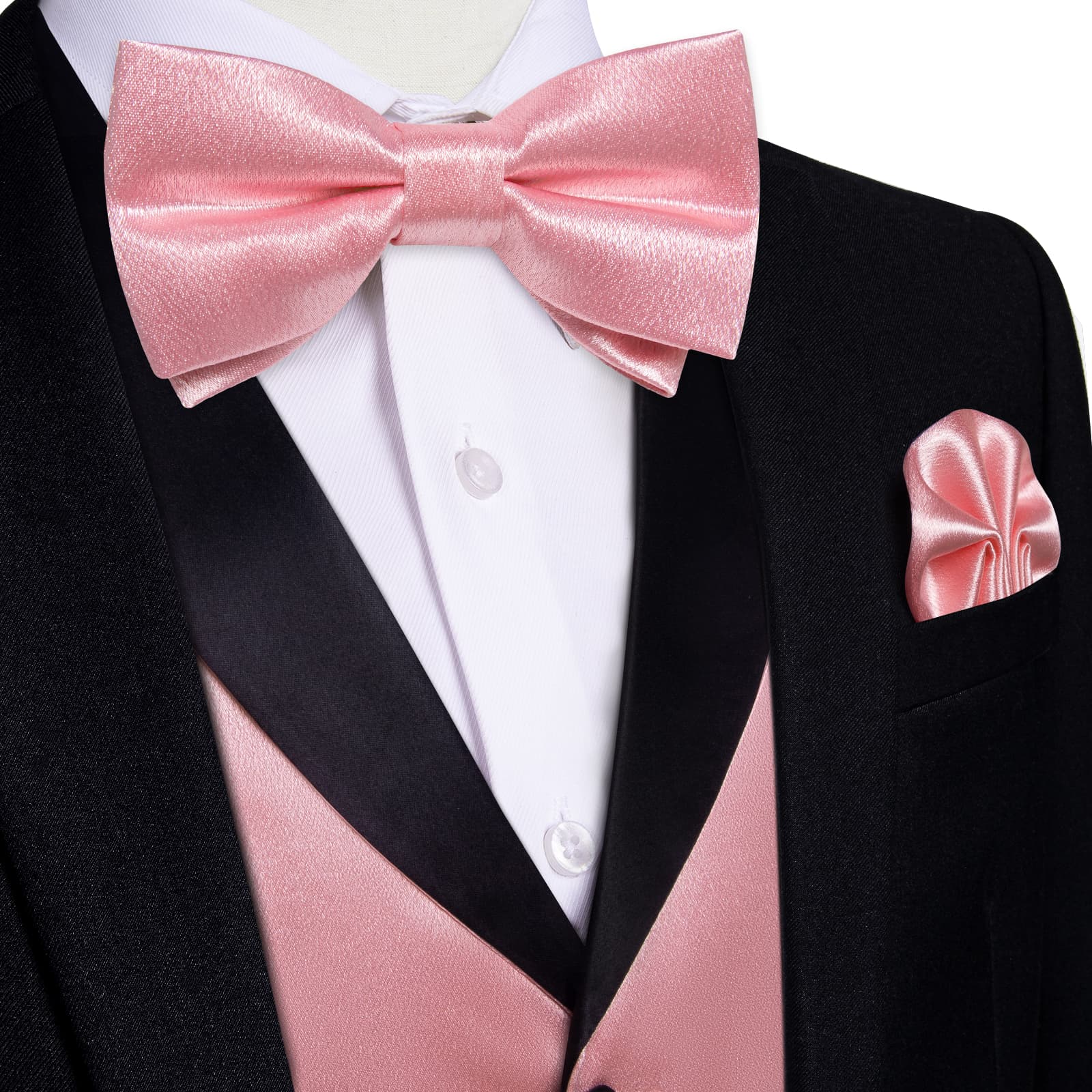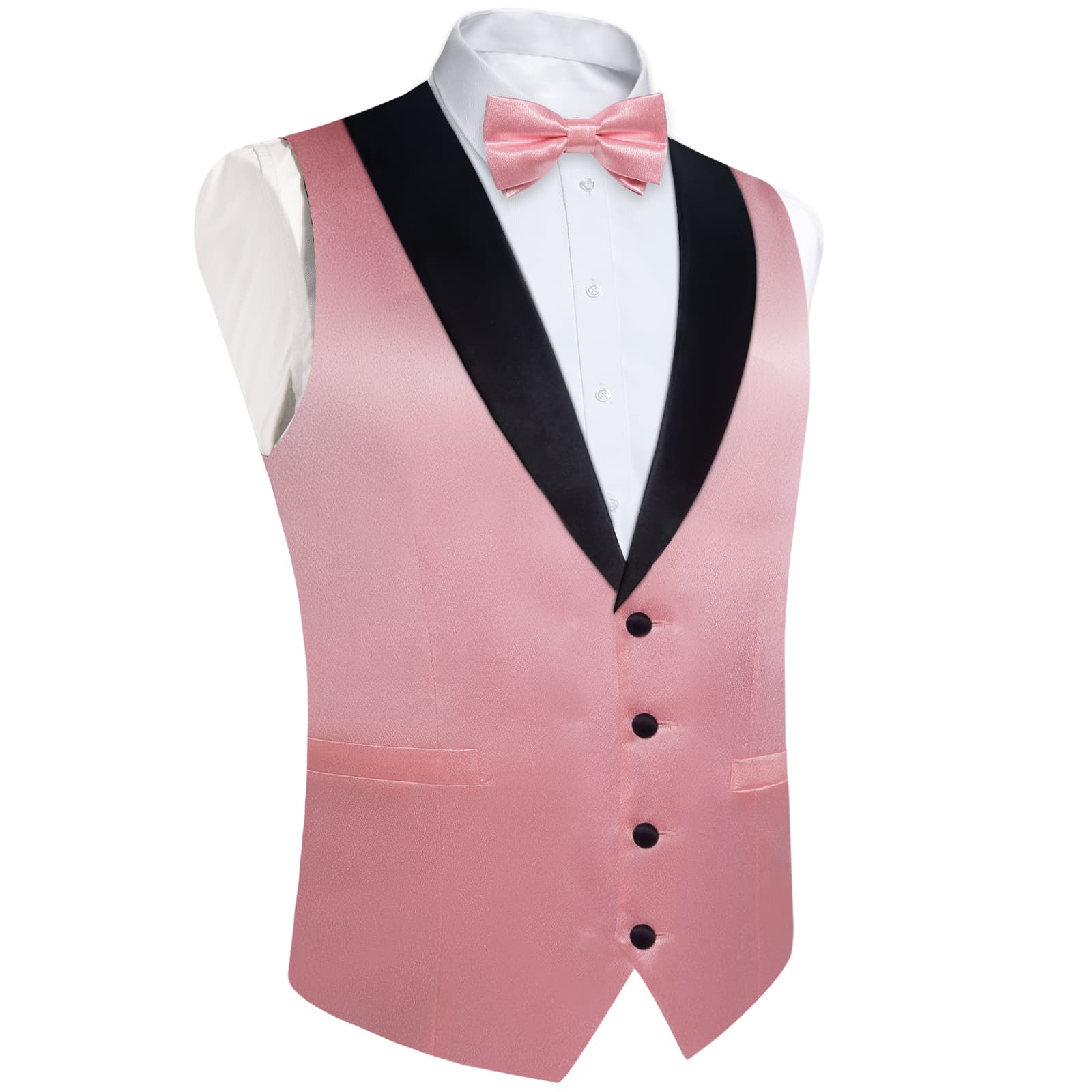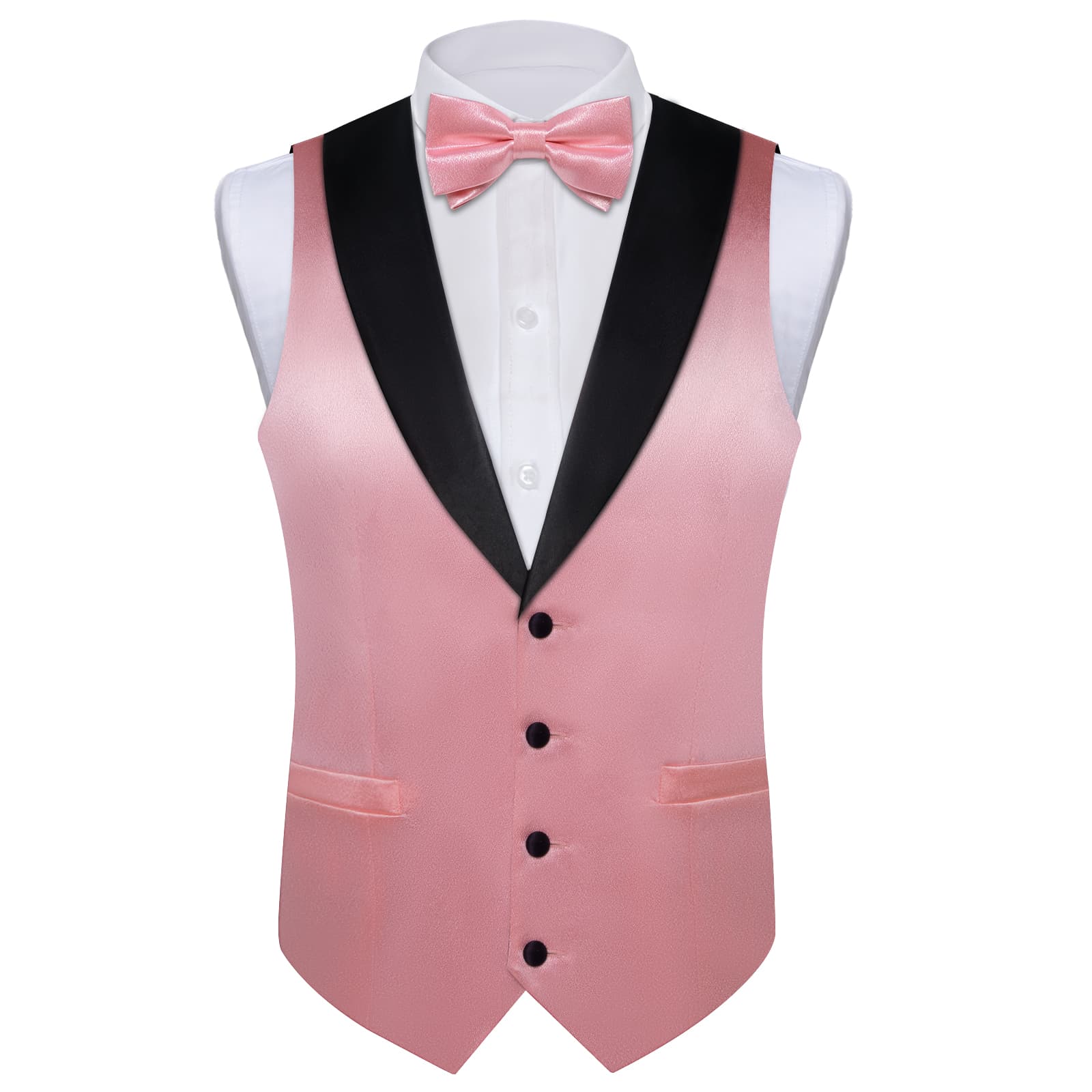 DiBanGu Tuxedo Vest Pastel Pink Solid Silk Mens Vest and Bow Tie Set for Wedding