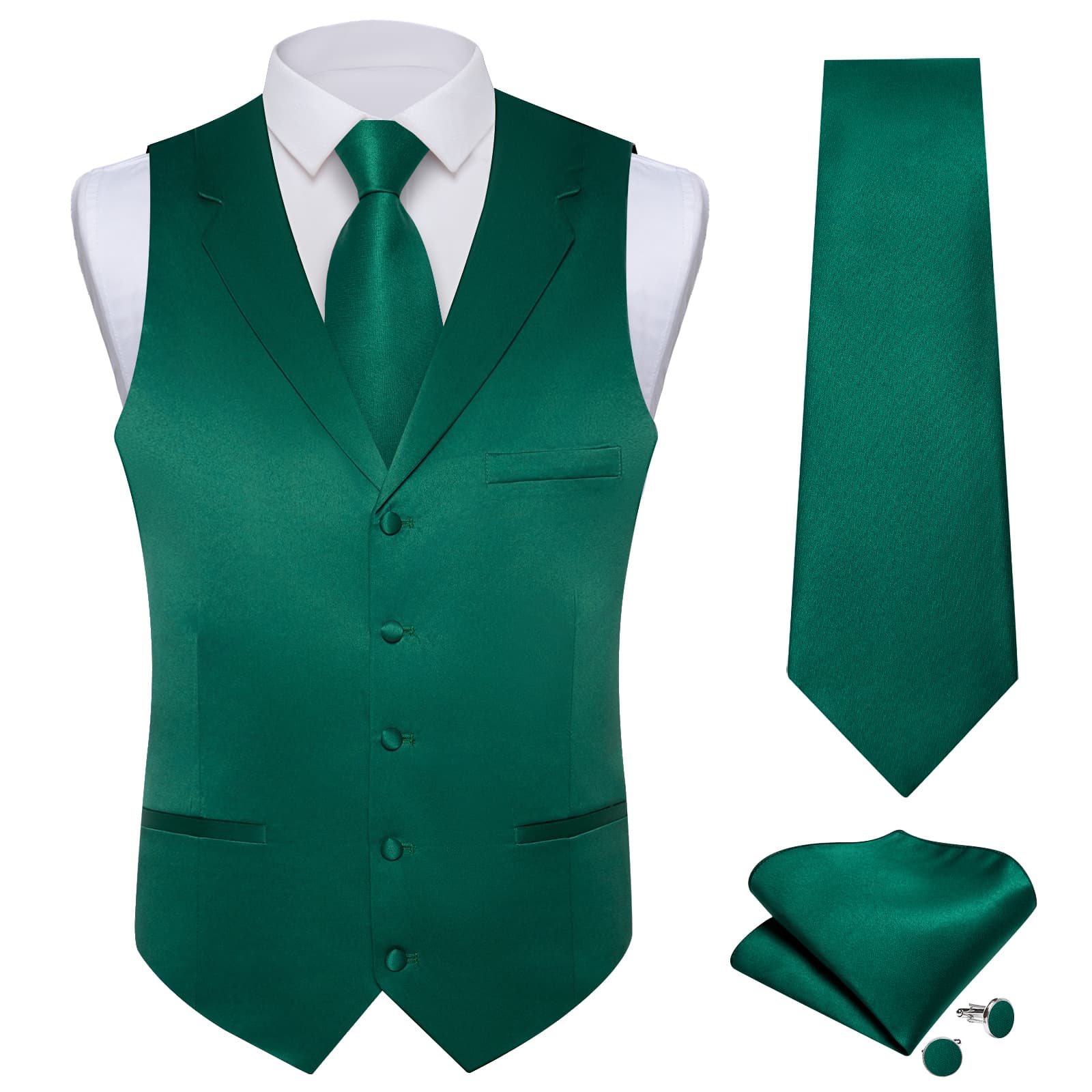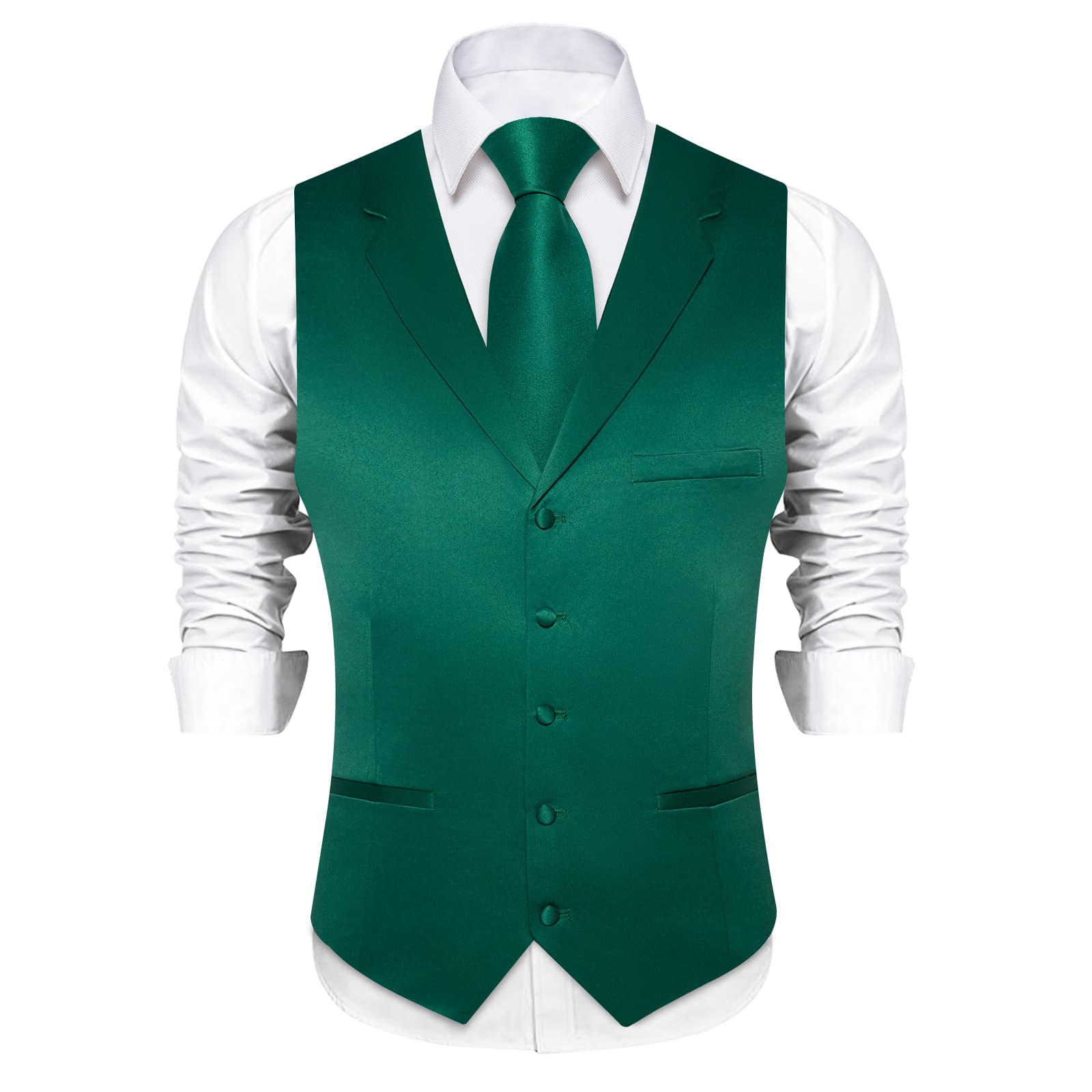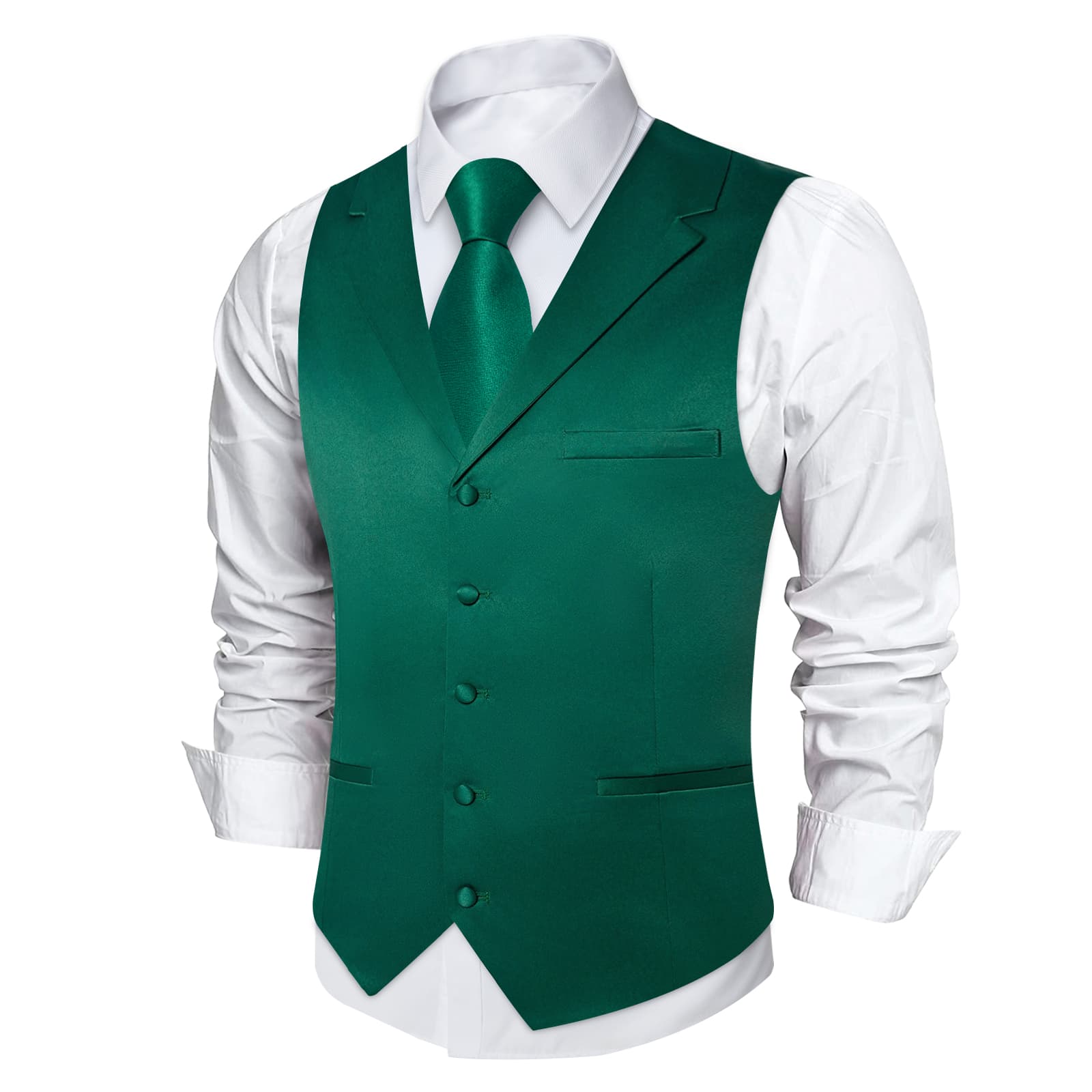 DiBanGu Tuxedo Waistcoat Bottle Green Solid Notched Collar Business Casual Vest for Men