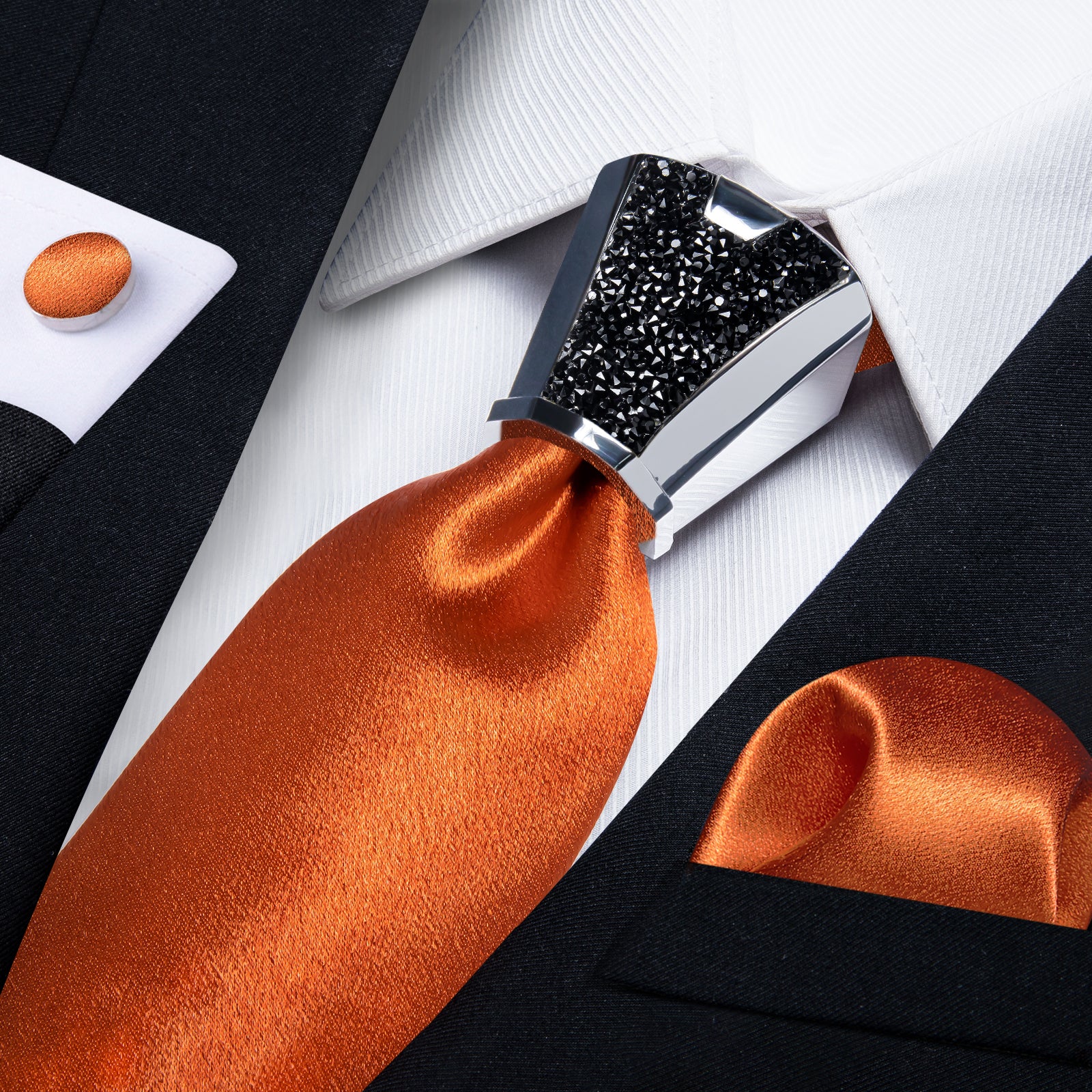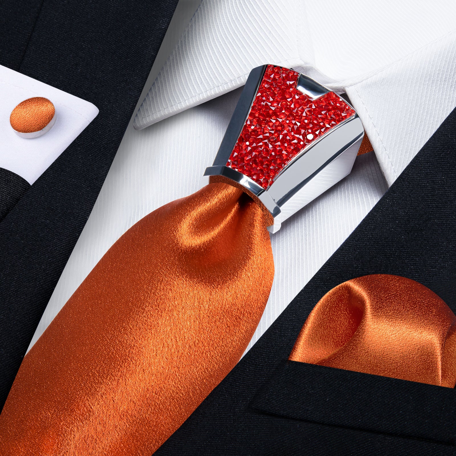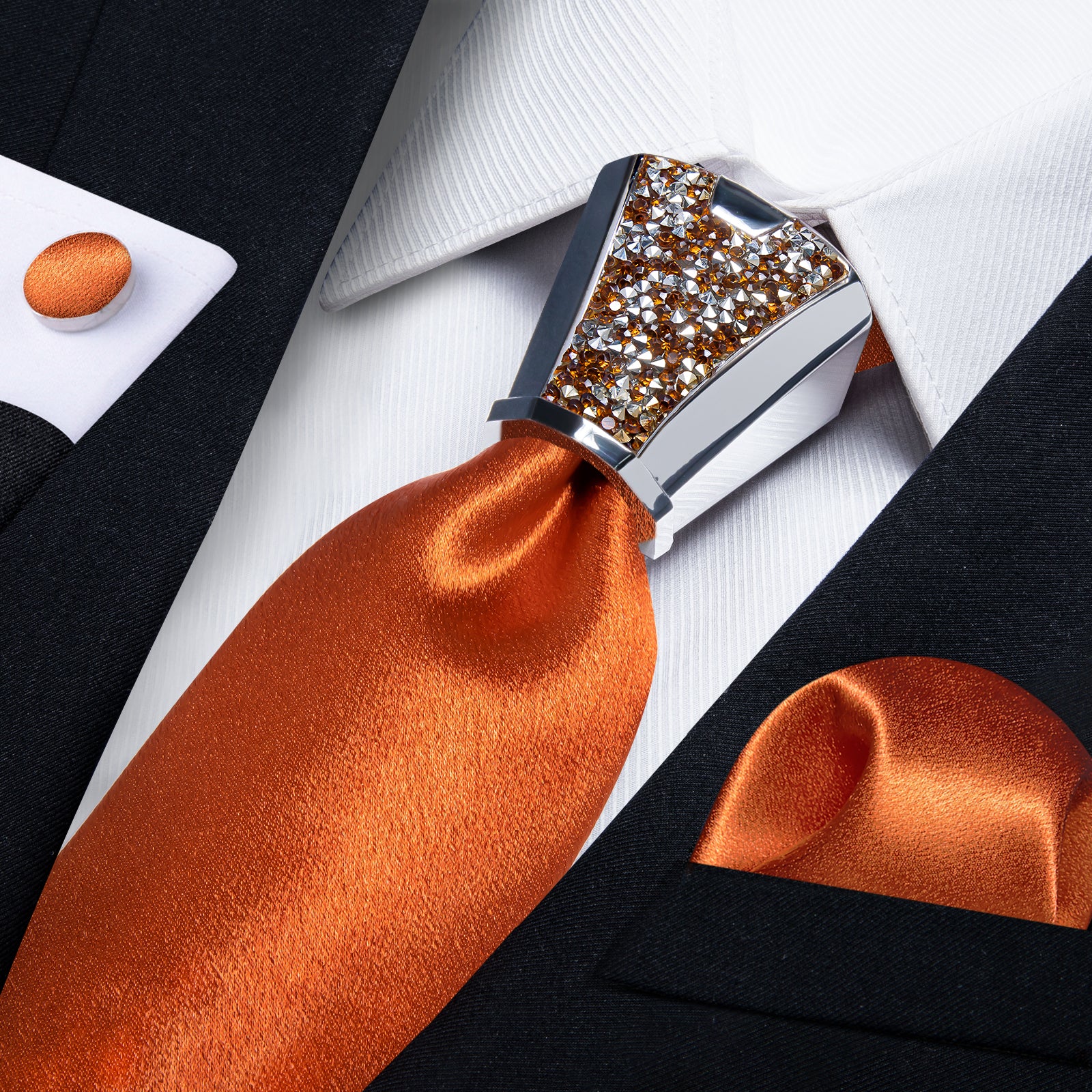 DiBanGu Wedding Solid Tie 4PC Set Shining Burnt Orange Tie Hanky Cufflinks Accessory
