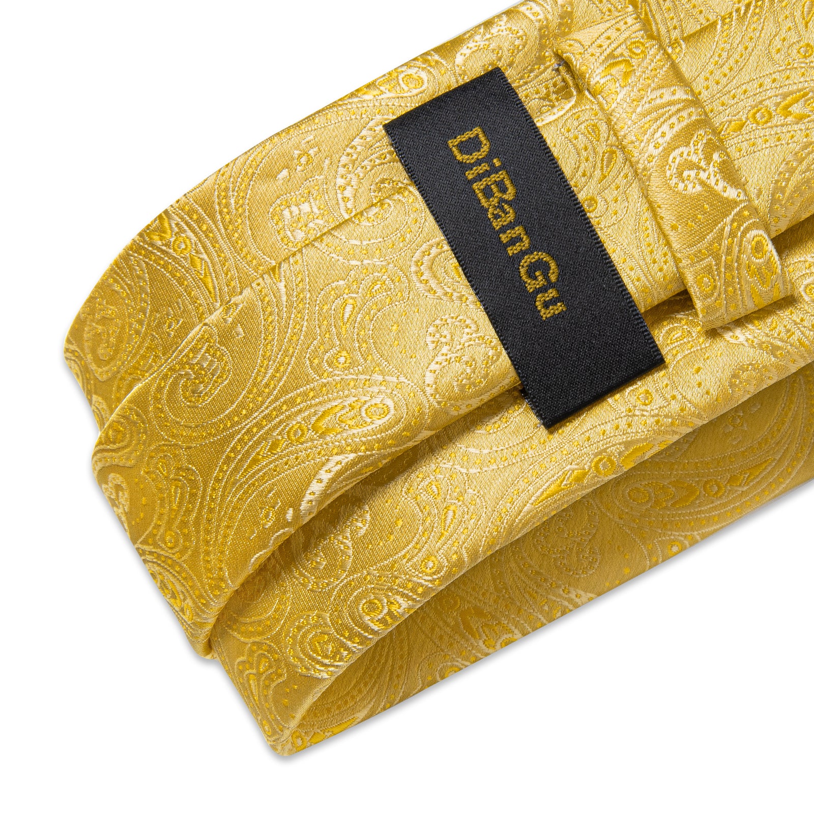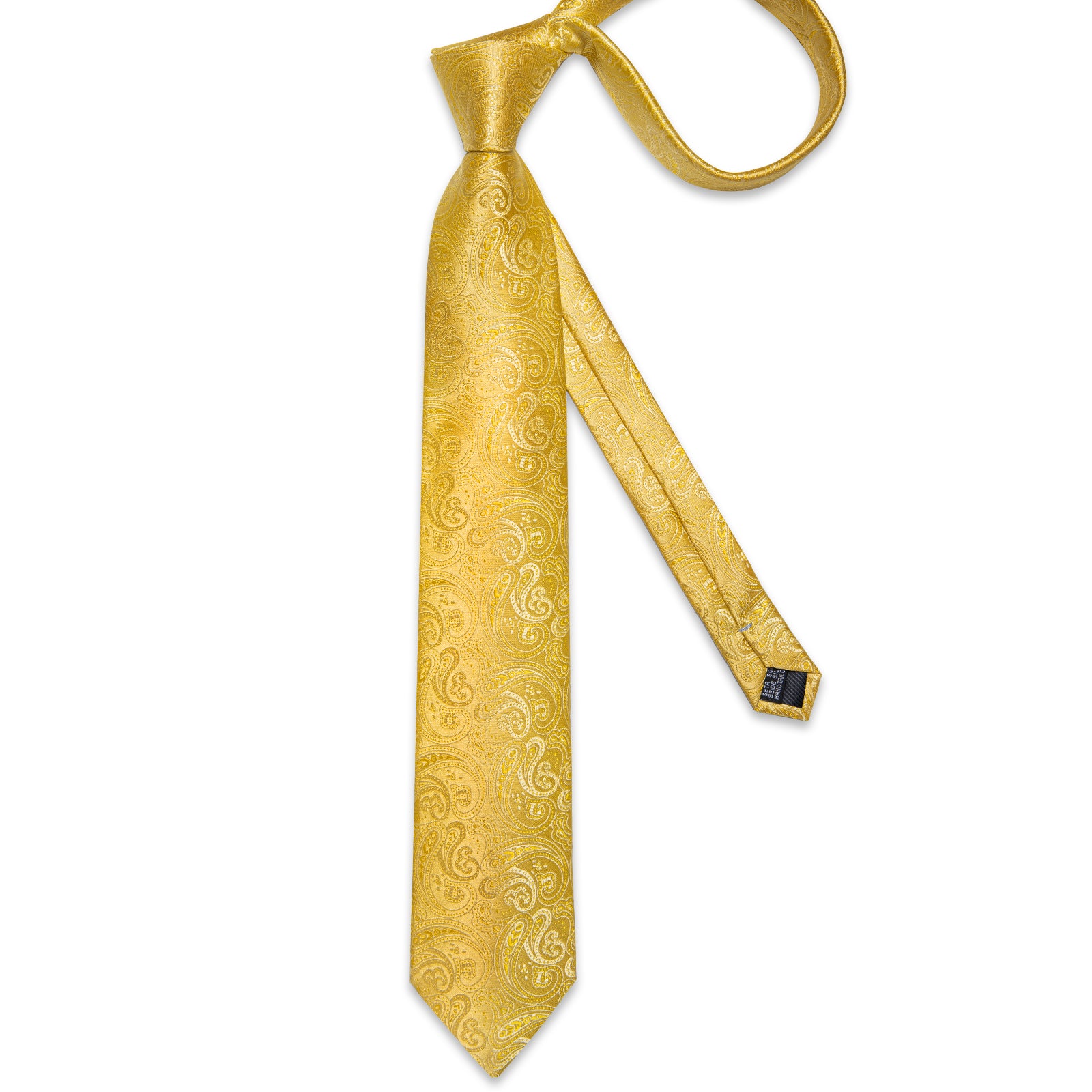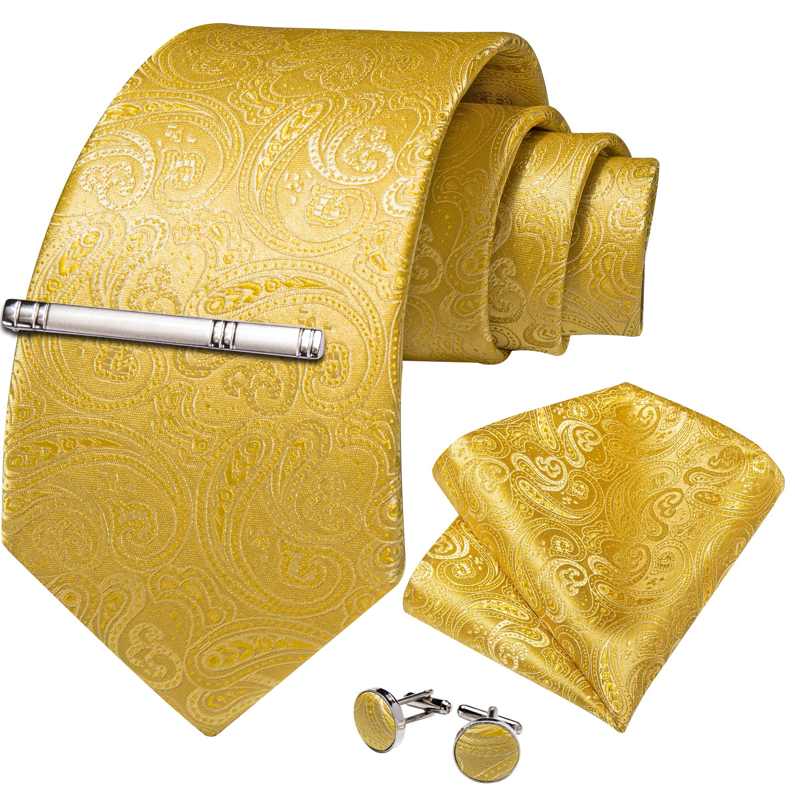 Gold Paisley Men's Tie Handkerchief Cufflinks Clip Set