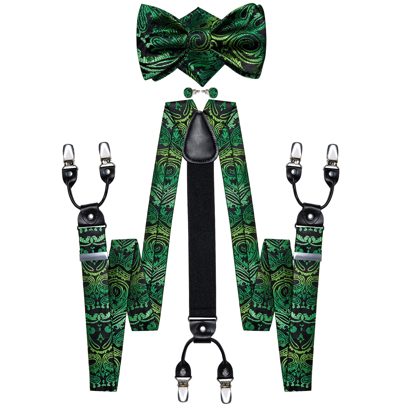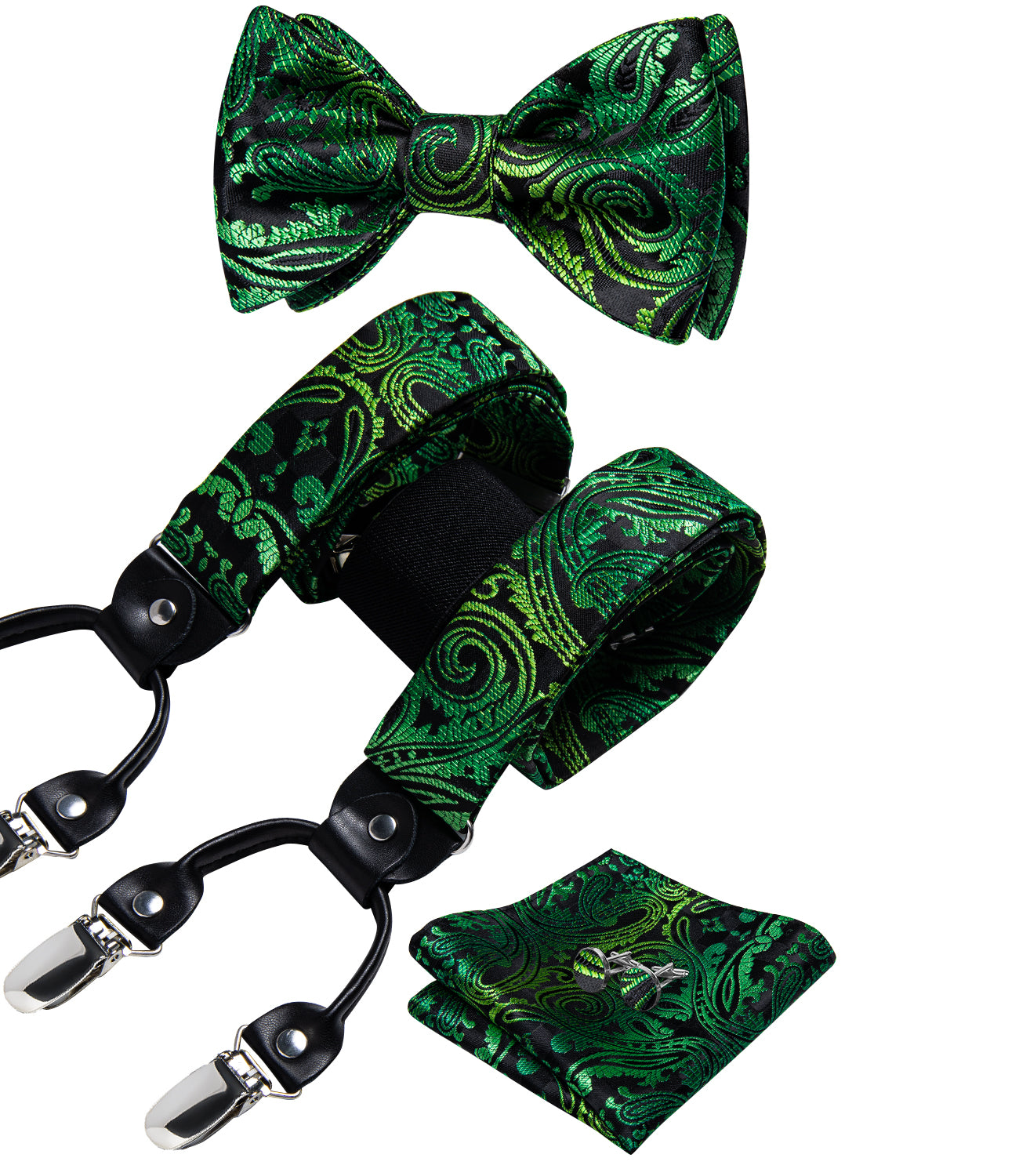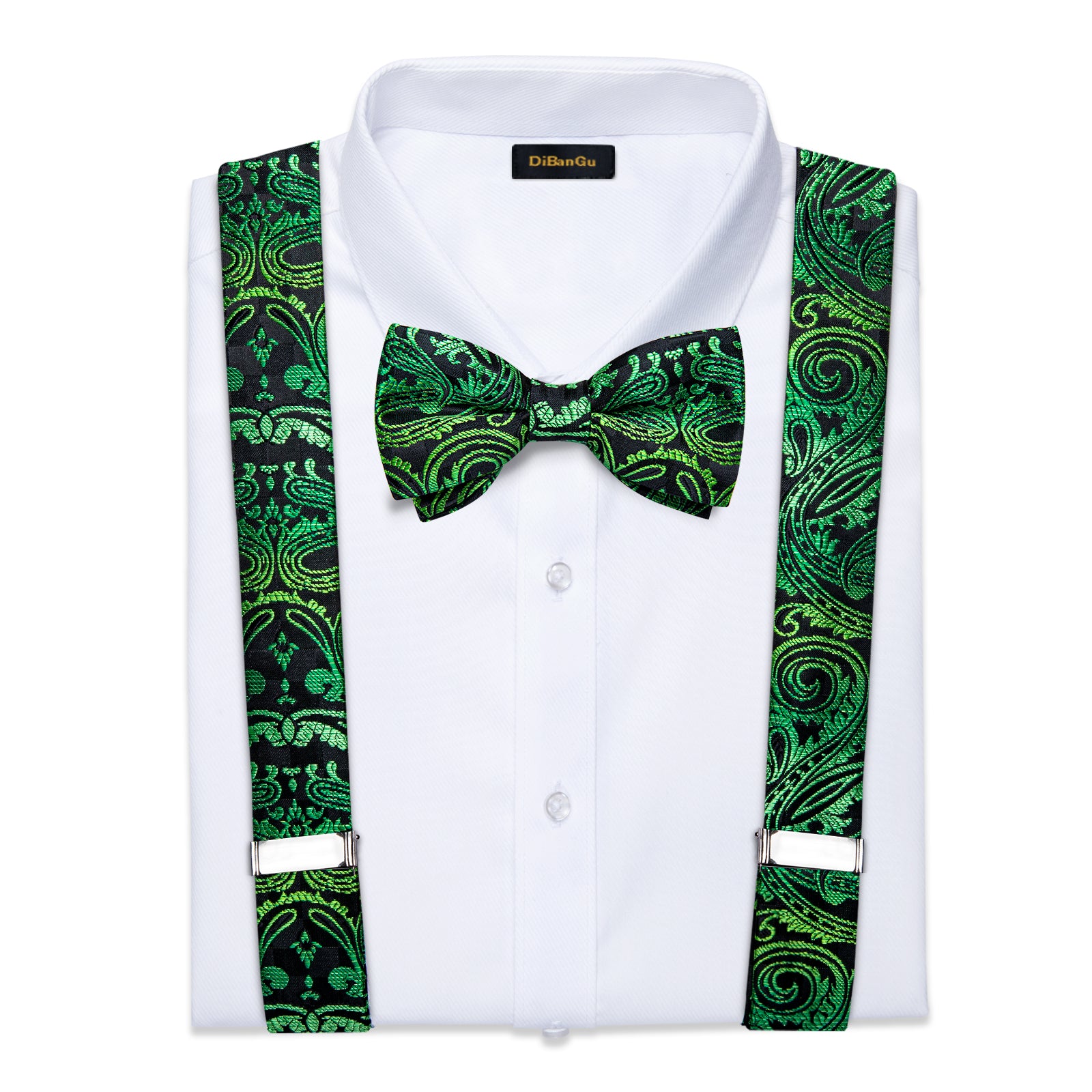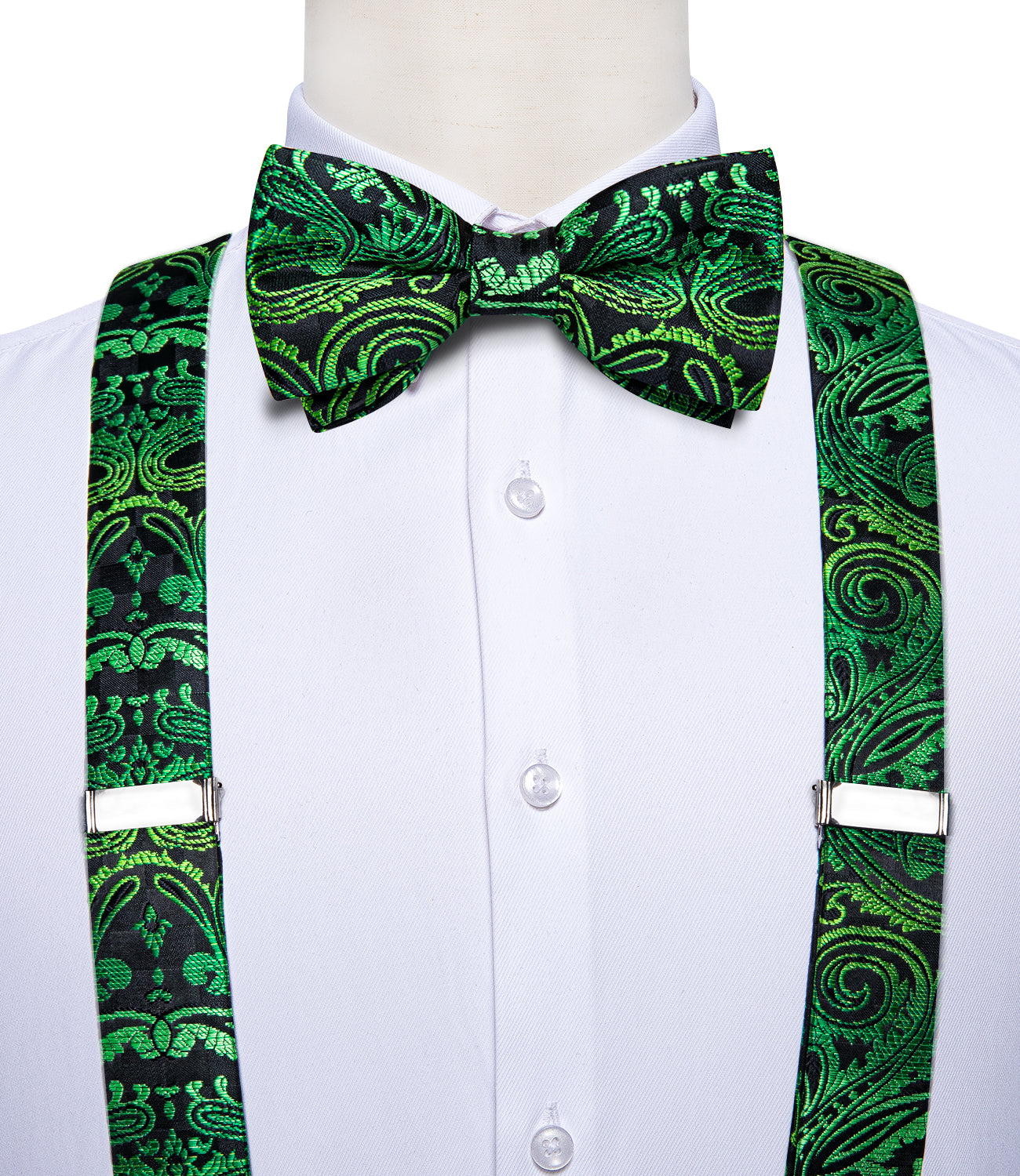 Green Floral Brace Clip-on Men's Suspender with Bow Tie Set