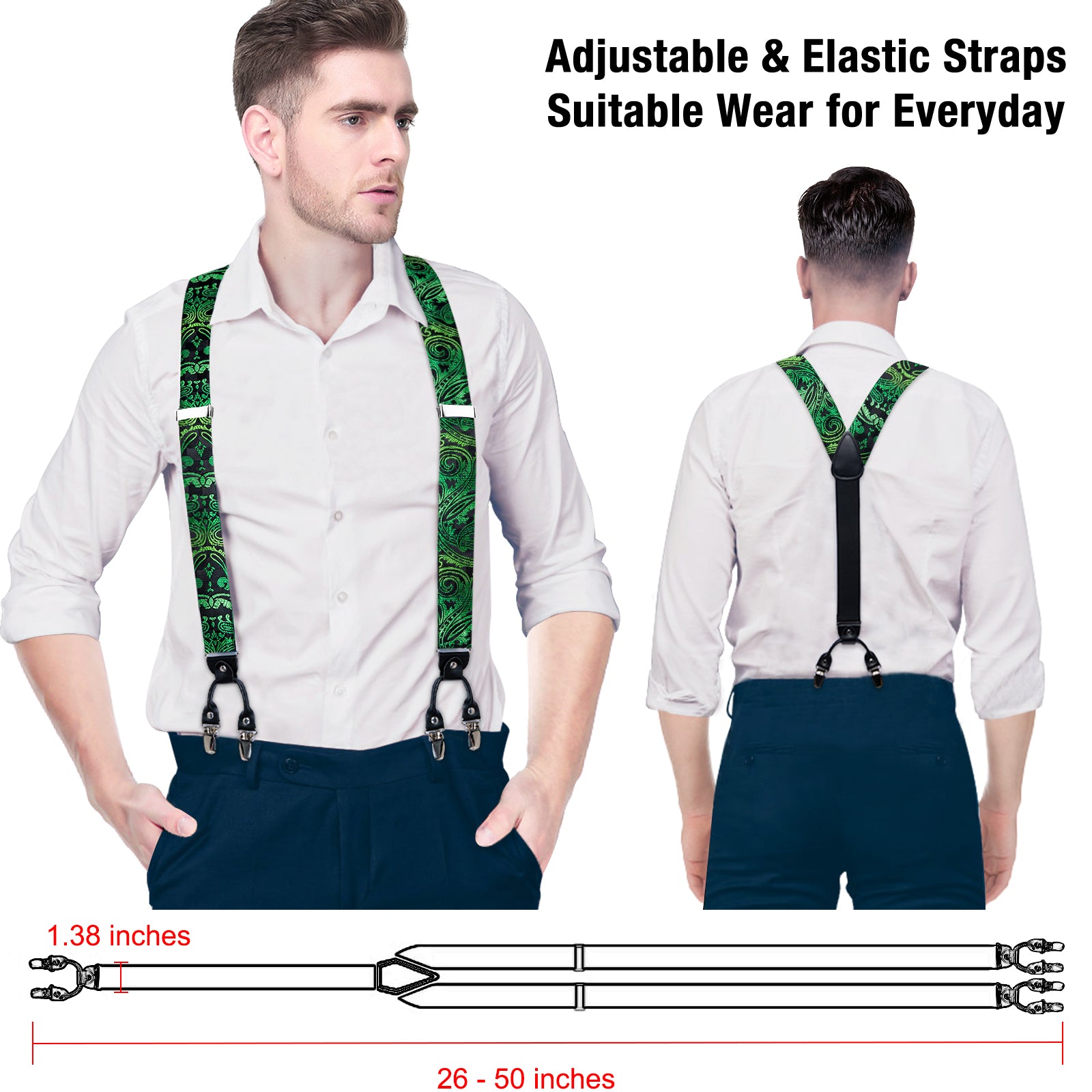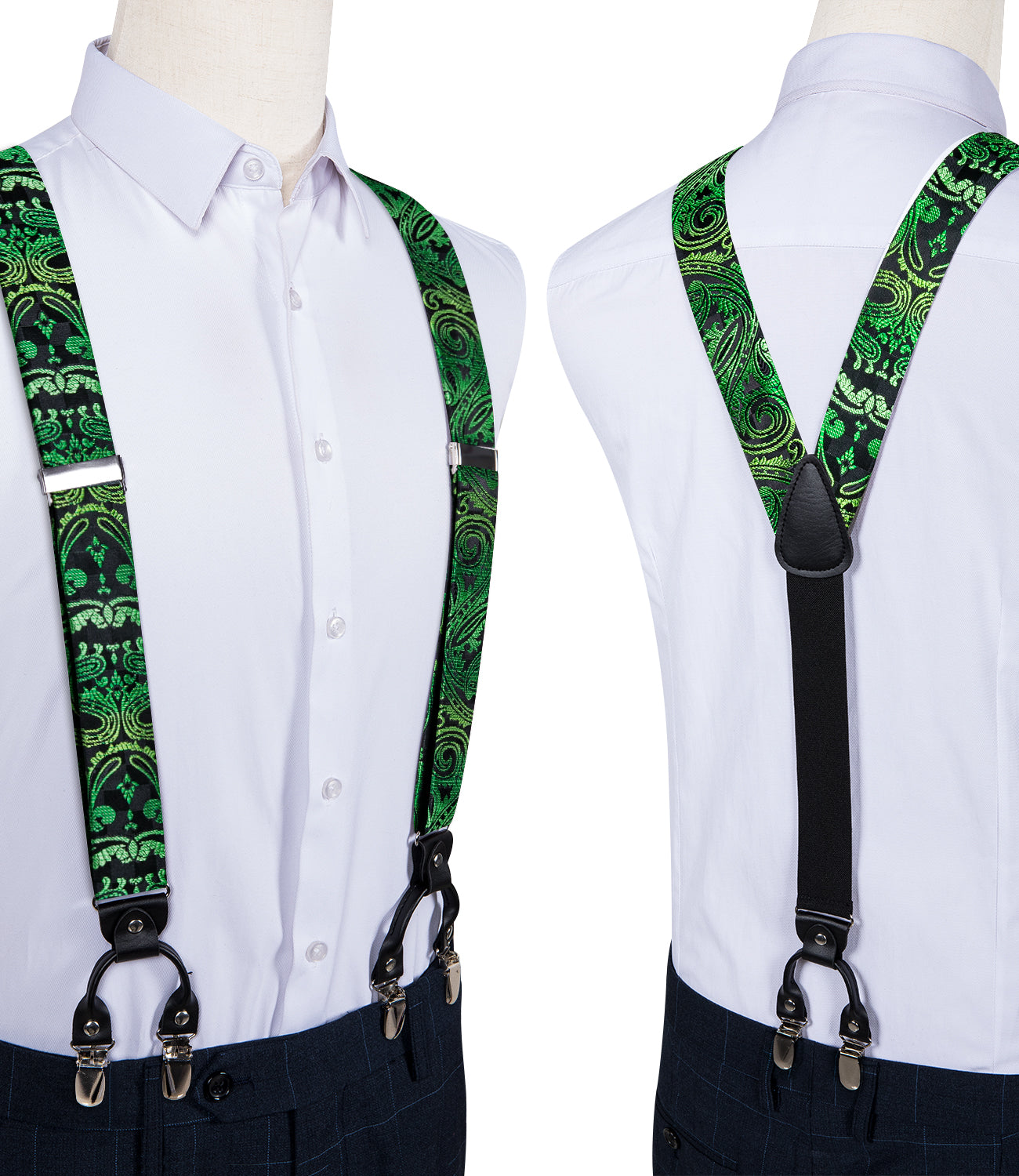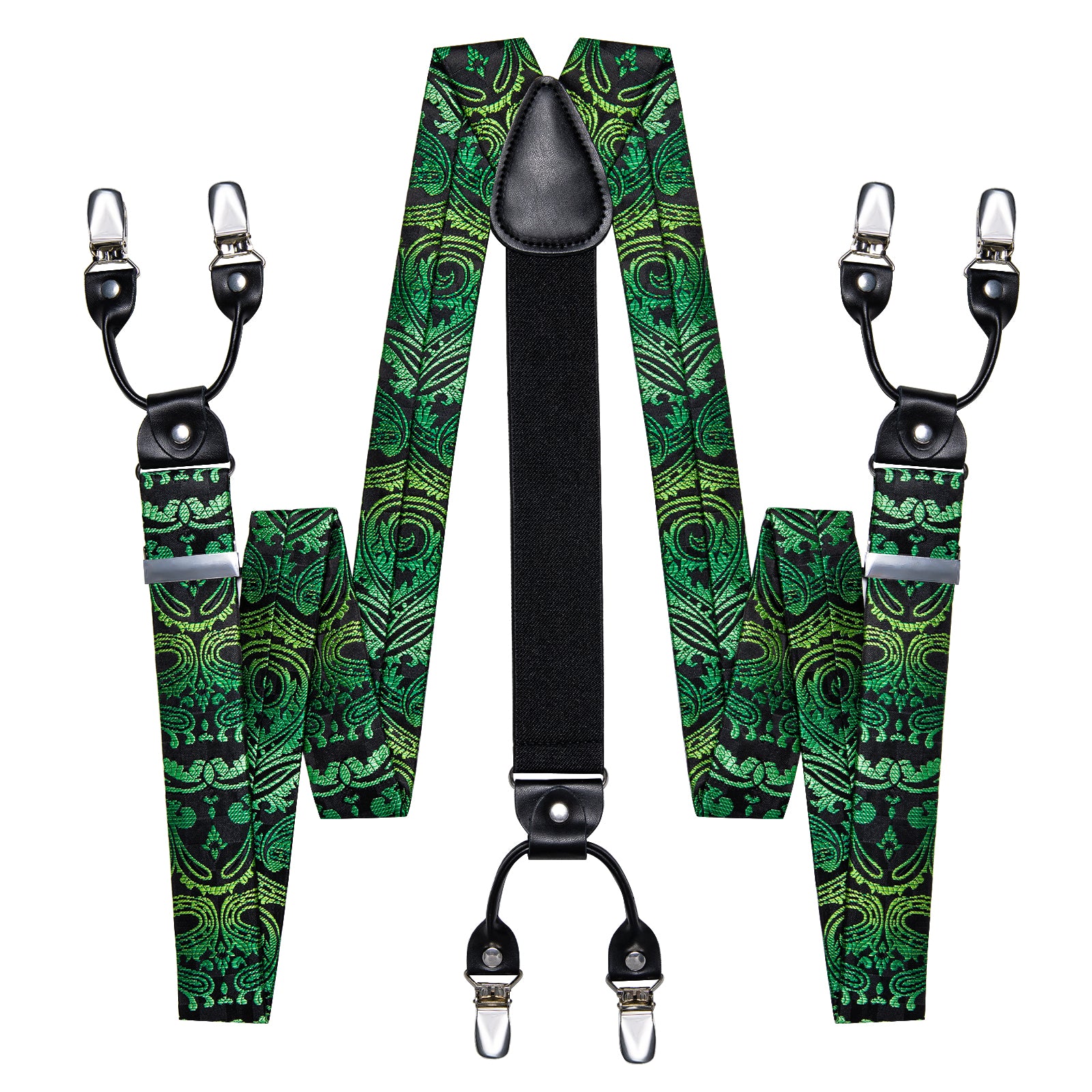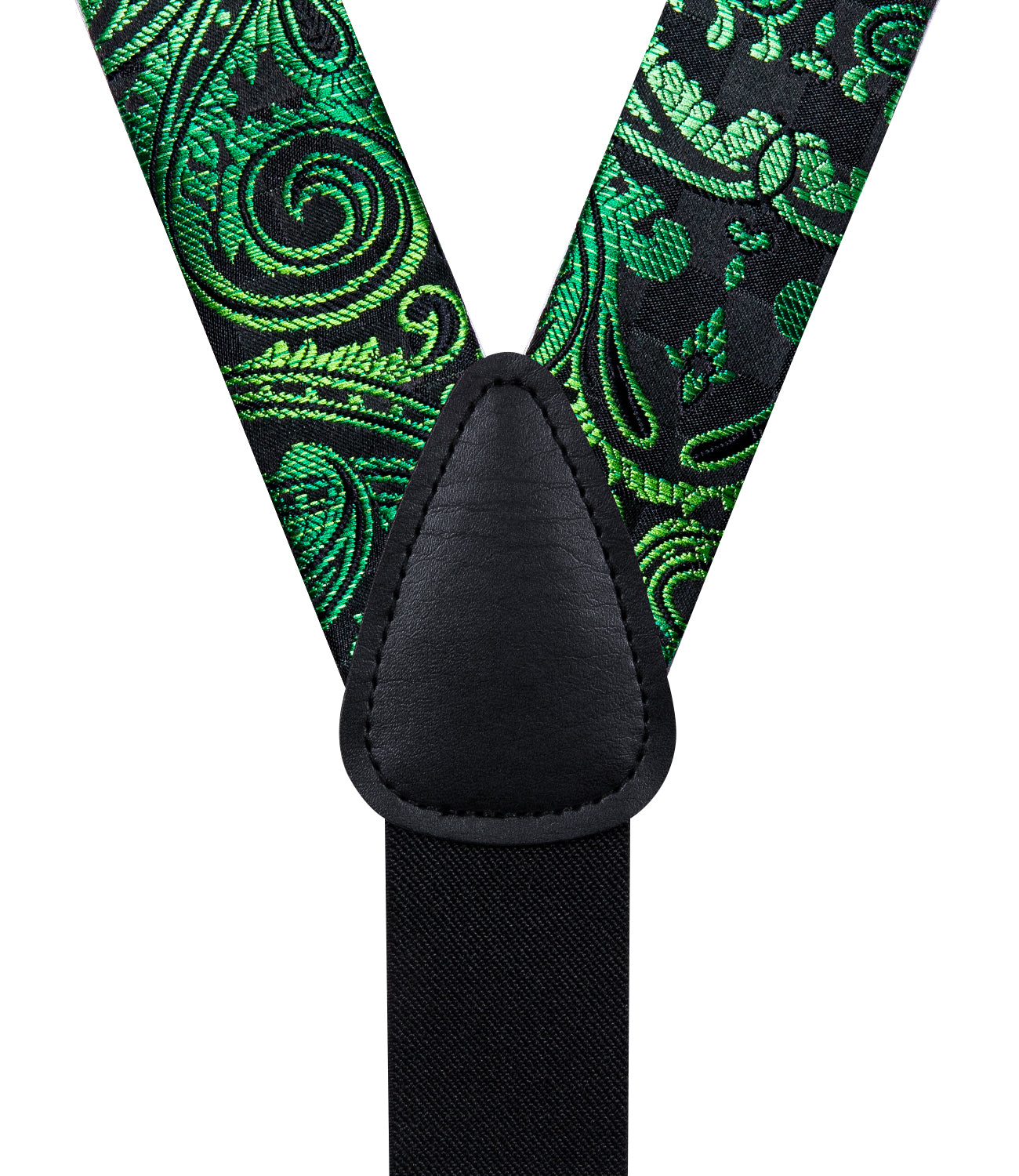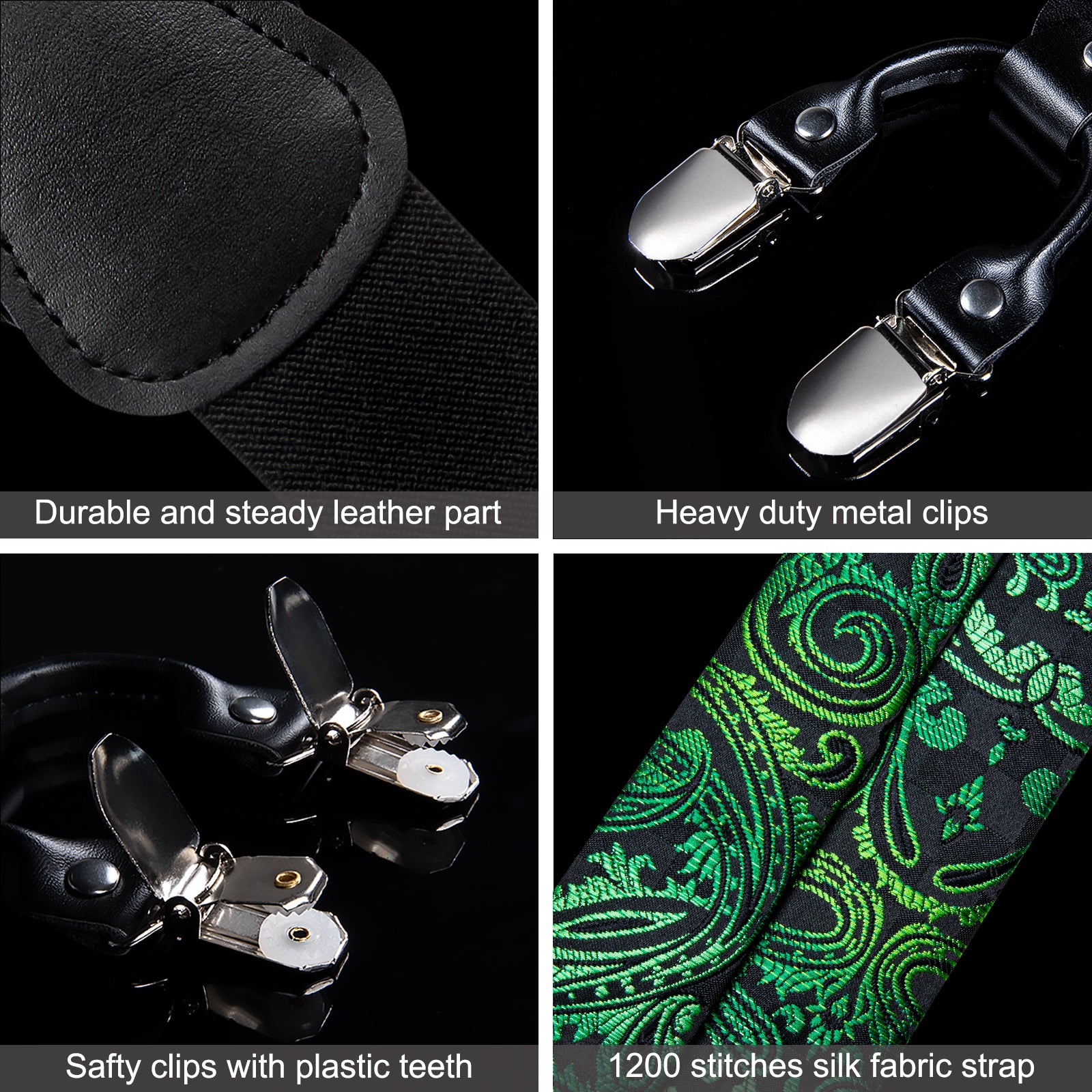 Green Floral Brace Clip-on Men's Suspender with Bow Tie Set