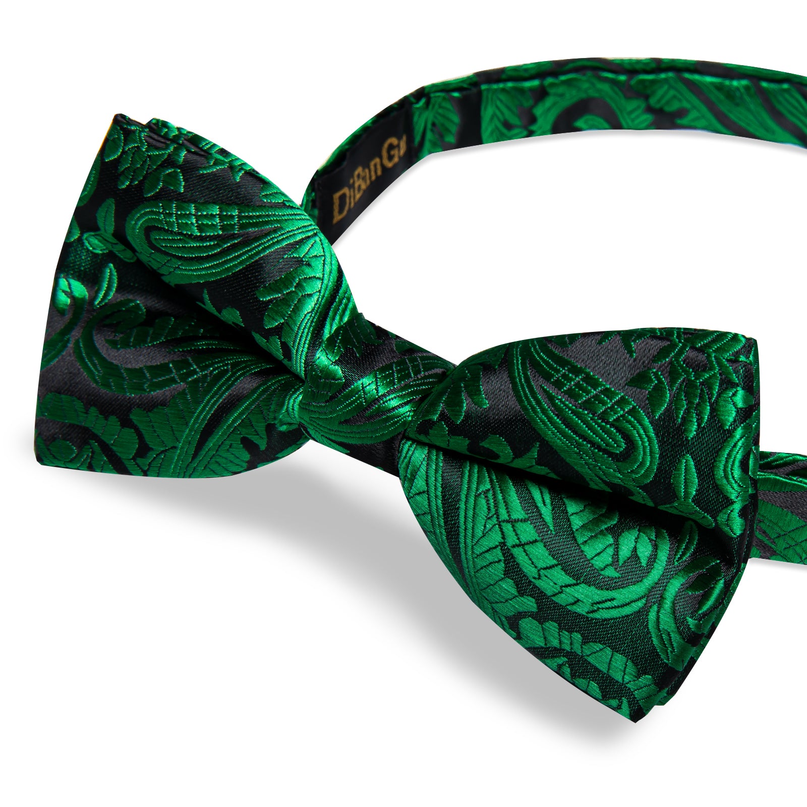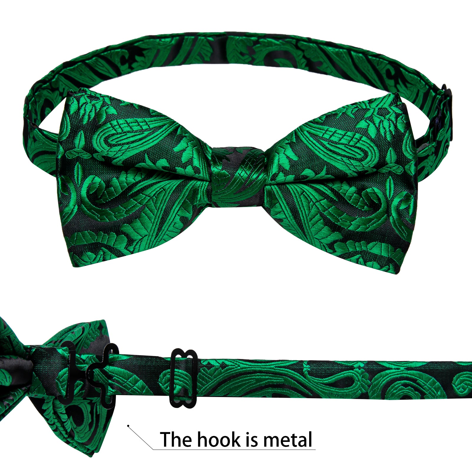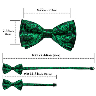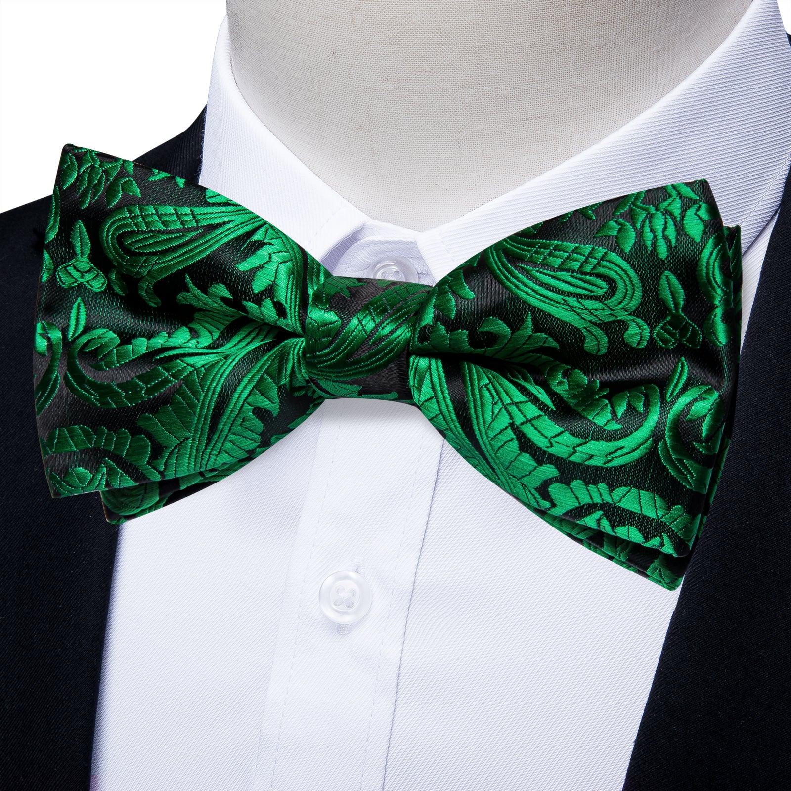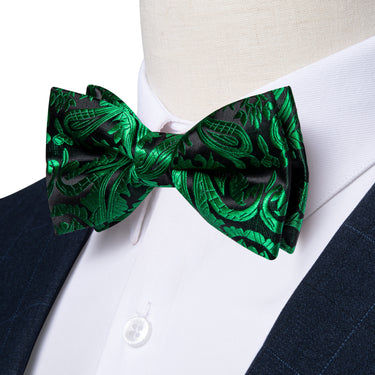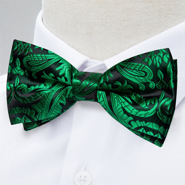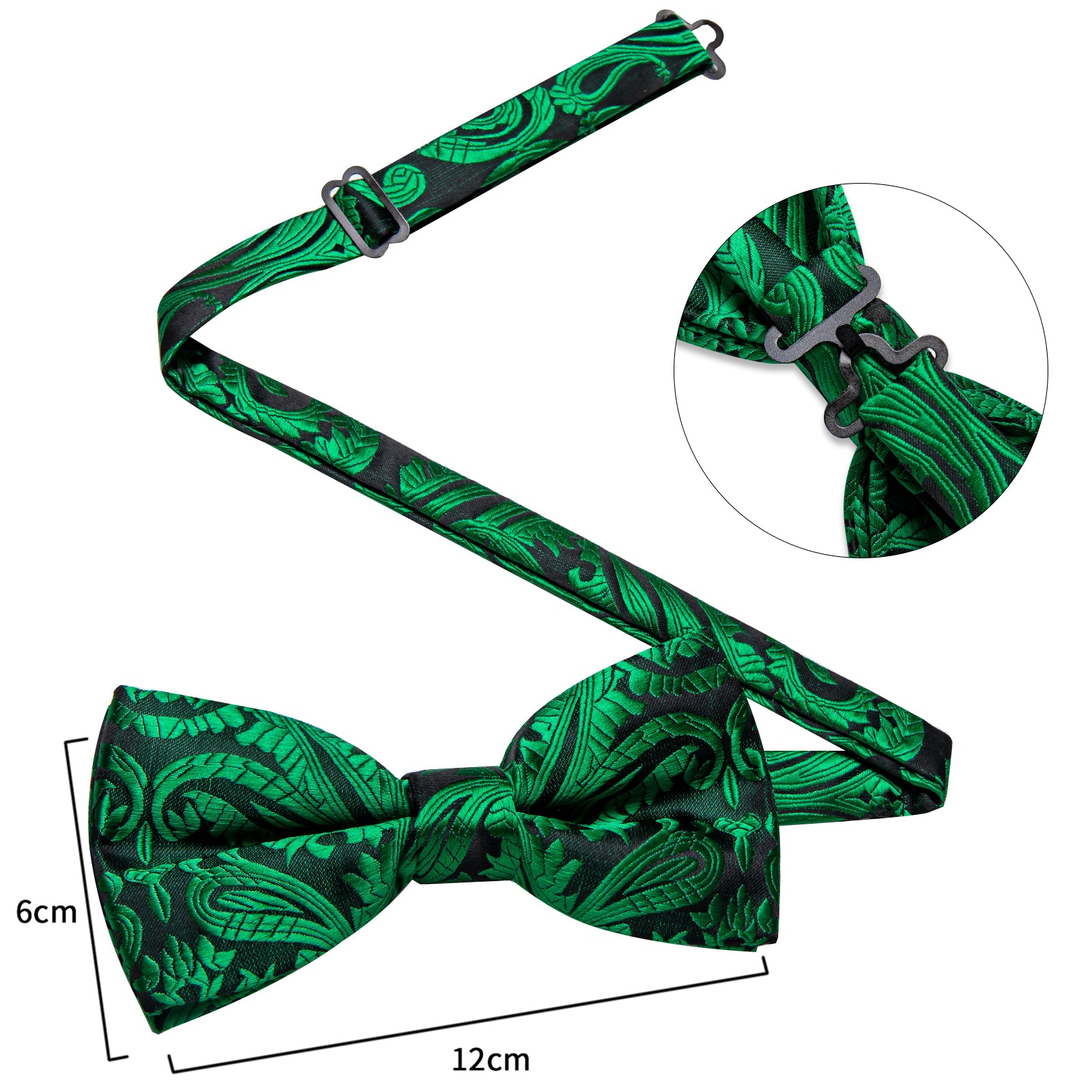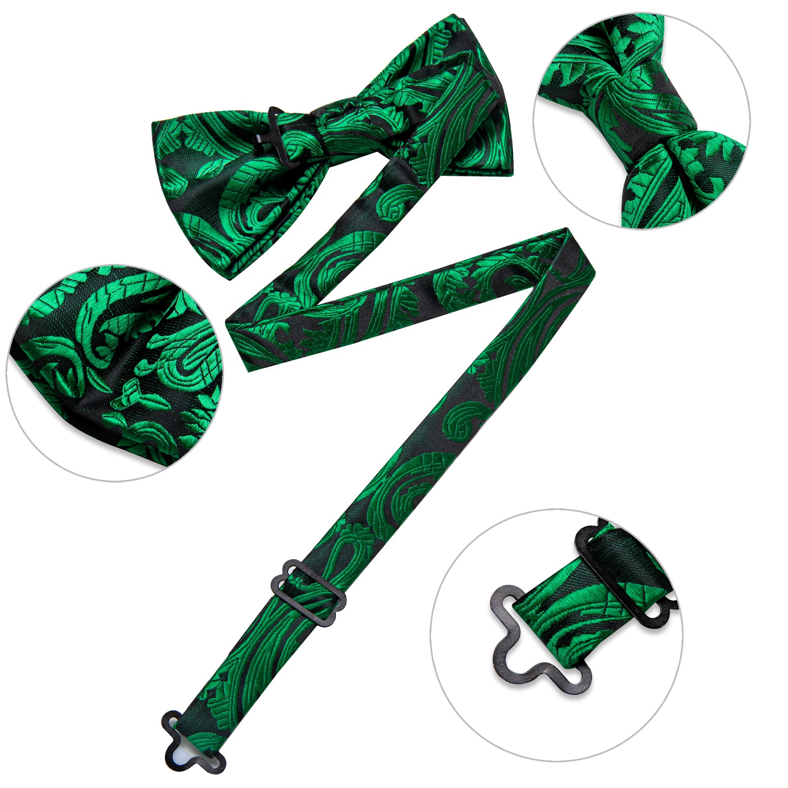 Green Floral Silk Bowtie Pocket Square Cufflinks Set