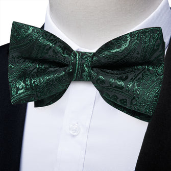 Green Floral Silk Men's Pre-Bowtie Pocket Square Cufflinks Set