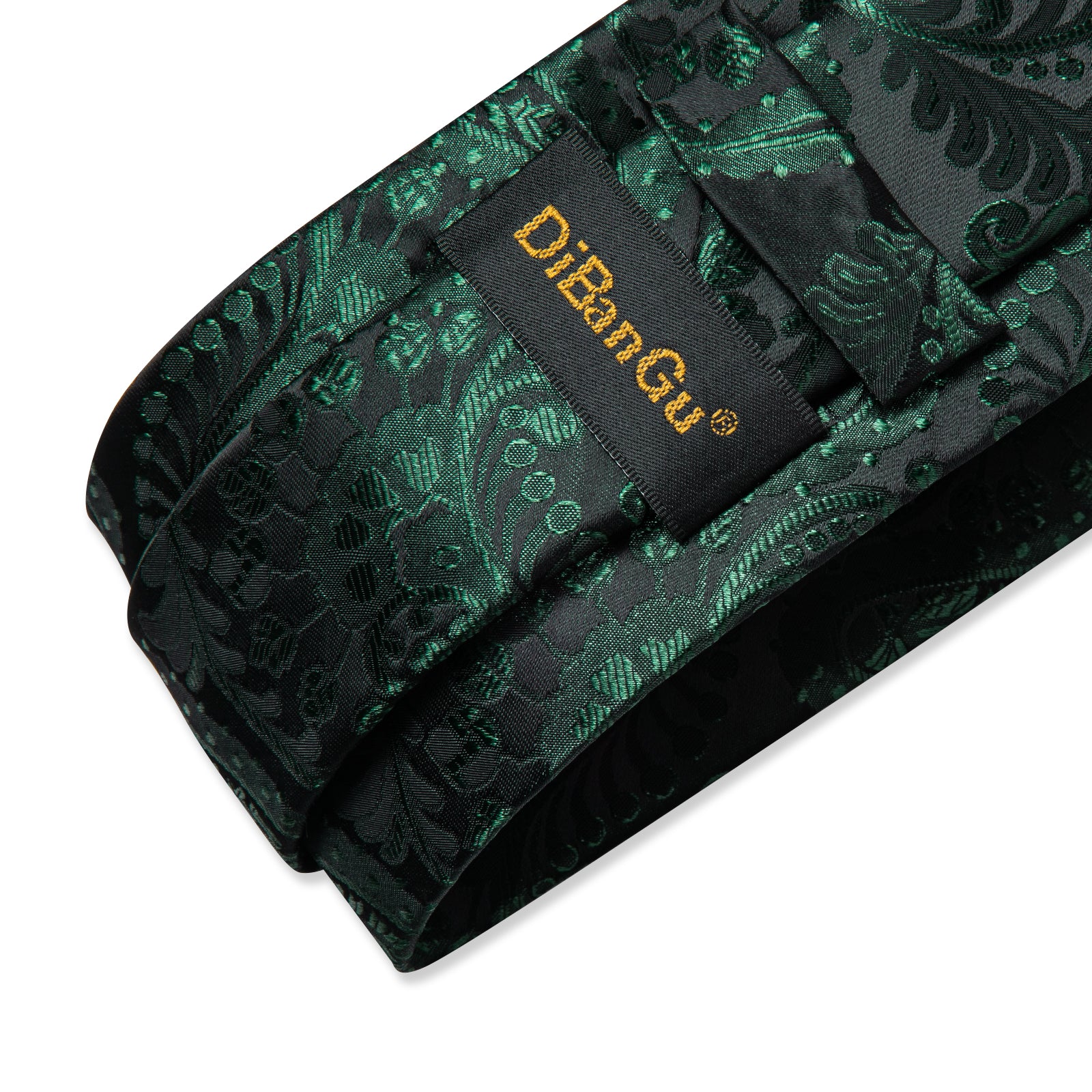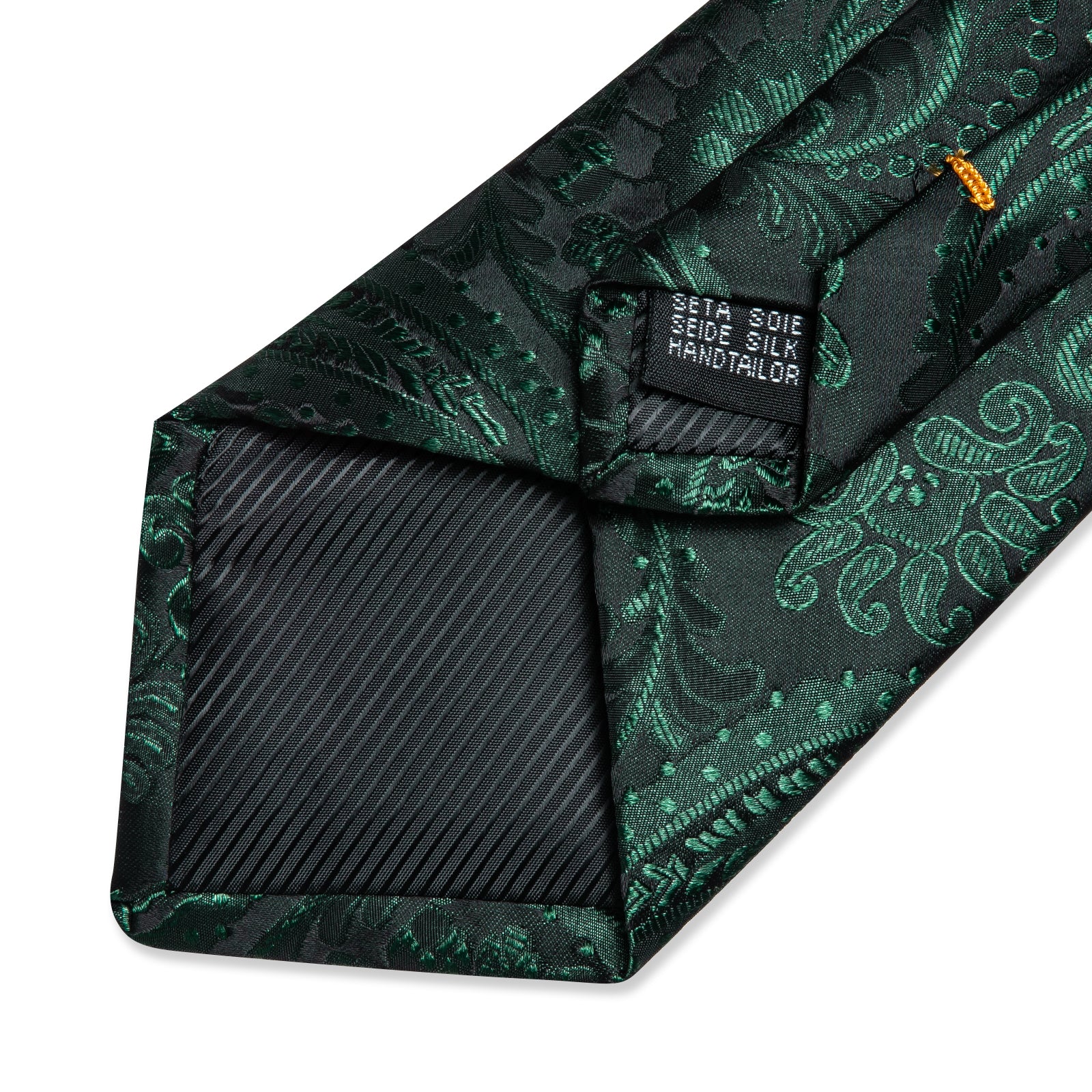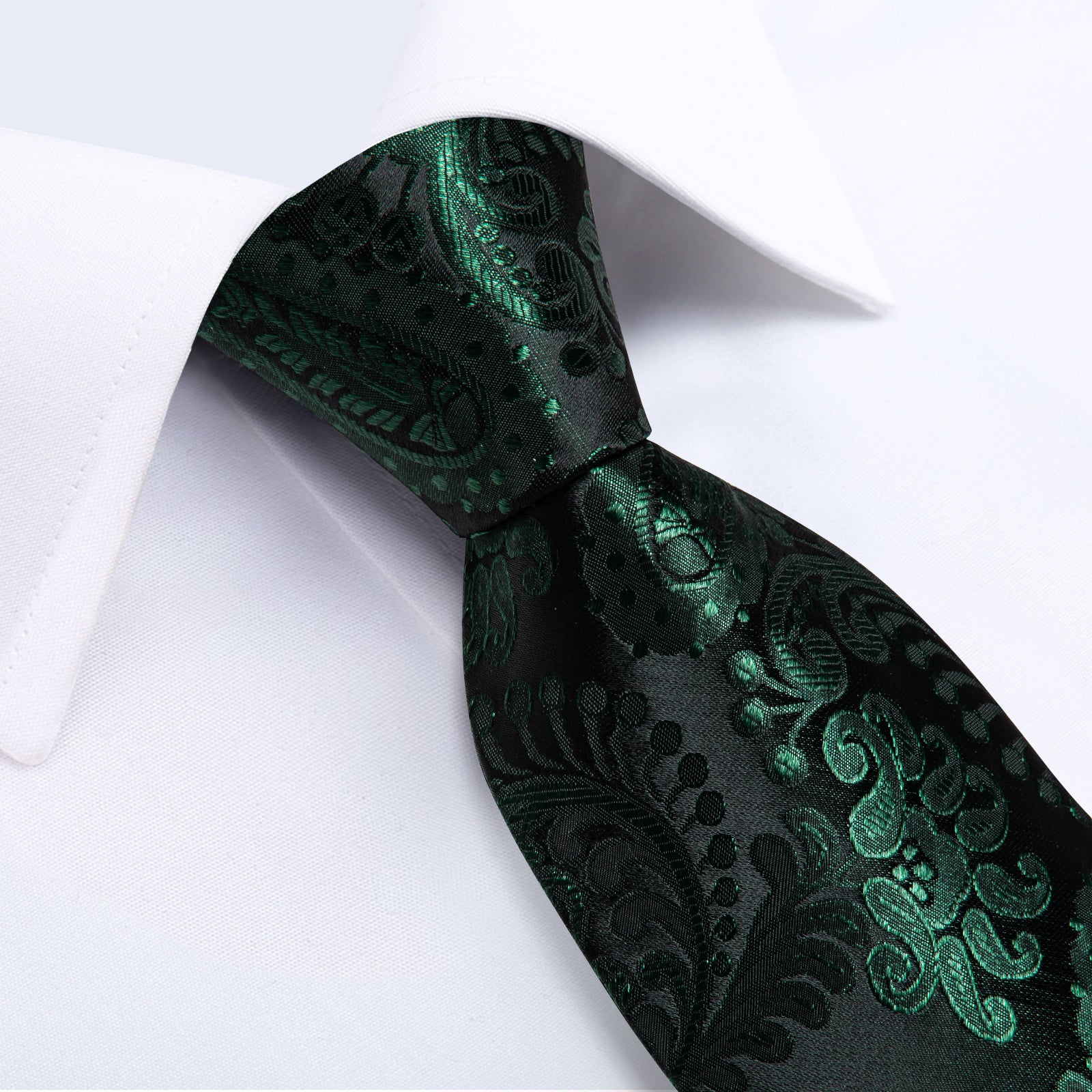 Green Paisley Men's Tie Handkerchief Cufflinks Clip Set
