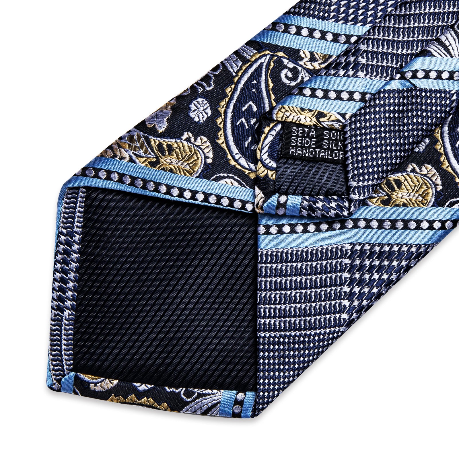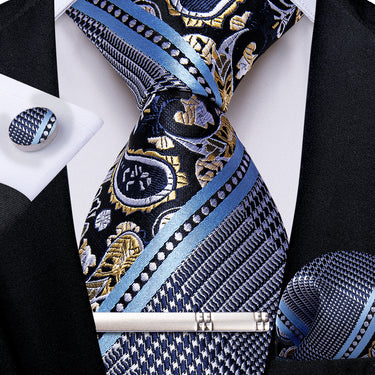 Grey Blue Novelty Men's Tie Handkerchief Cufflinks Clip Set