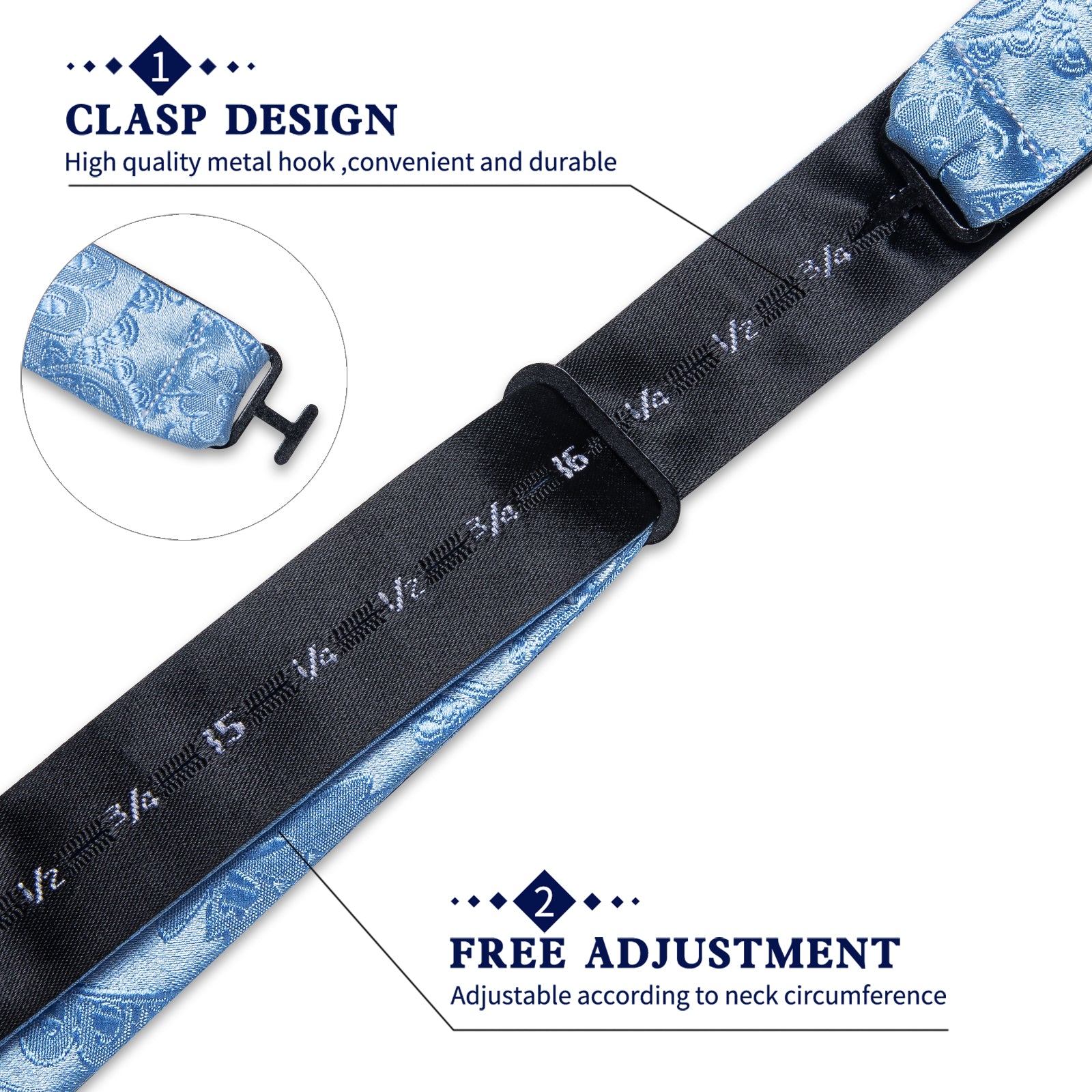 【CLASSIC SIZE】Self Bow Tie Size:4.5 inches x 2.7 inches, for neck size(Adjustable): 14 inches-18 inches, pocket square size: 9 inches x 9 inches.It is very suitable for matching shirts, vests and suits