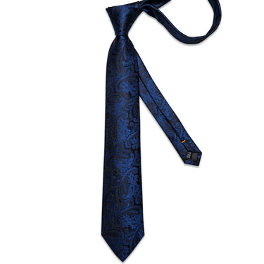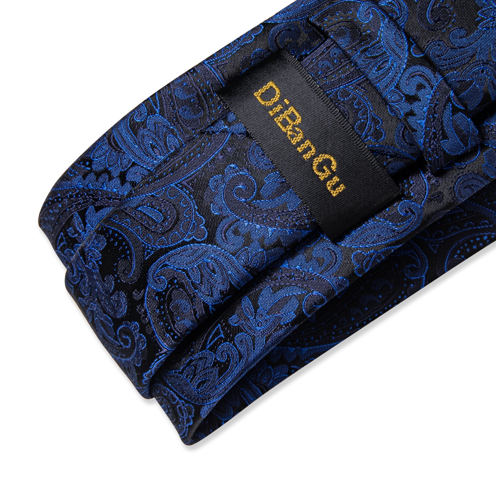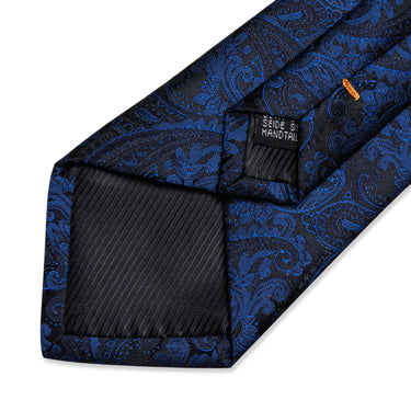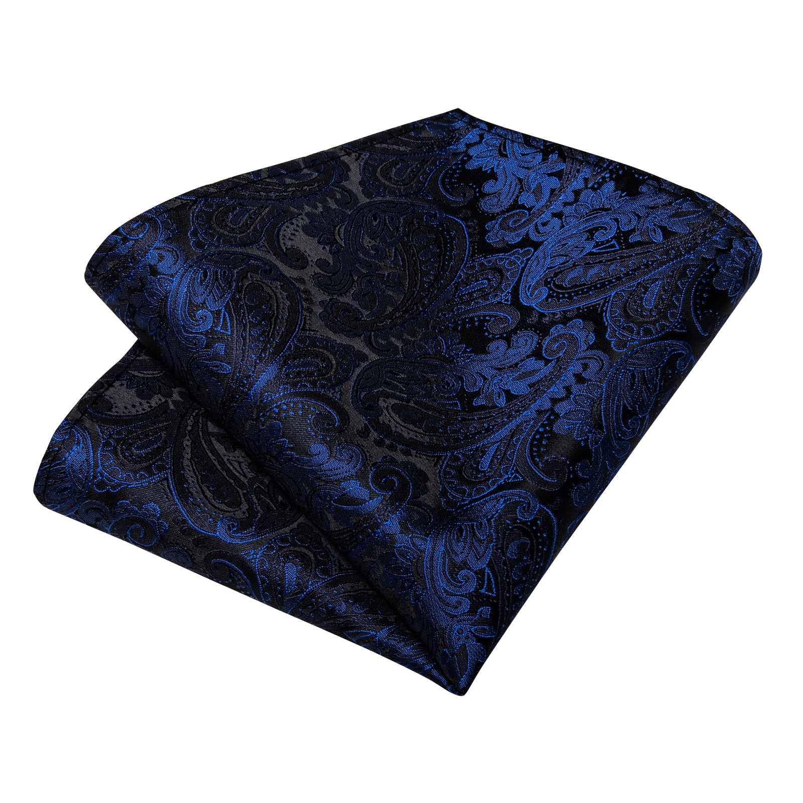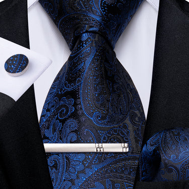 Luxury Black Blue Floral Men's Tie Handkerchief Cufflinks Clip Set
