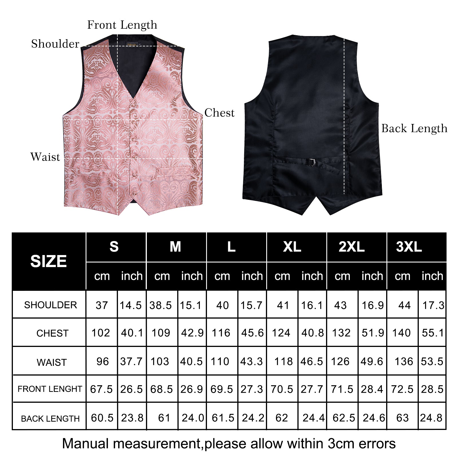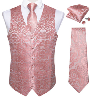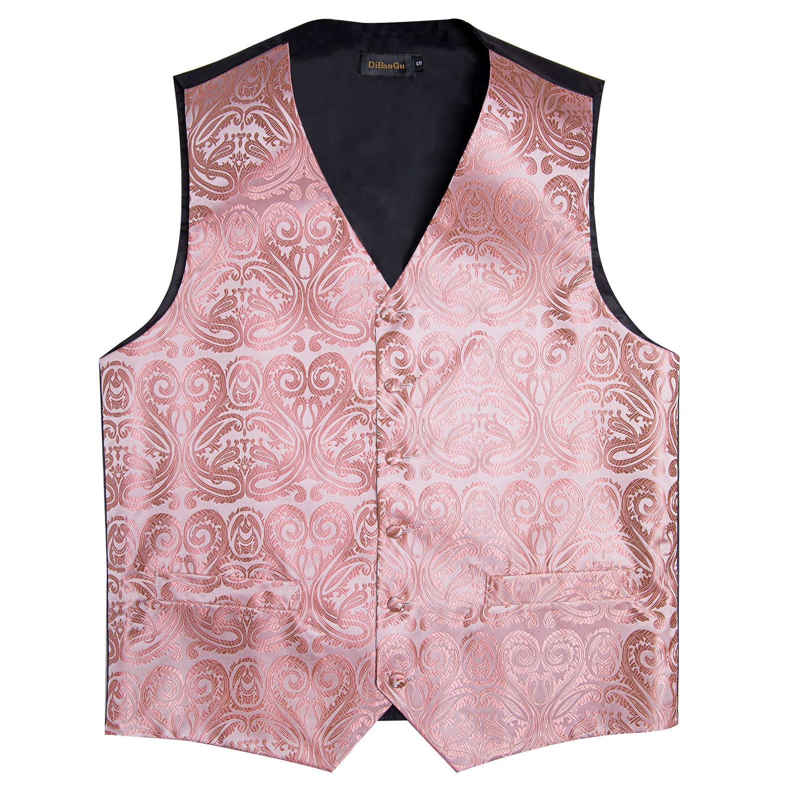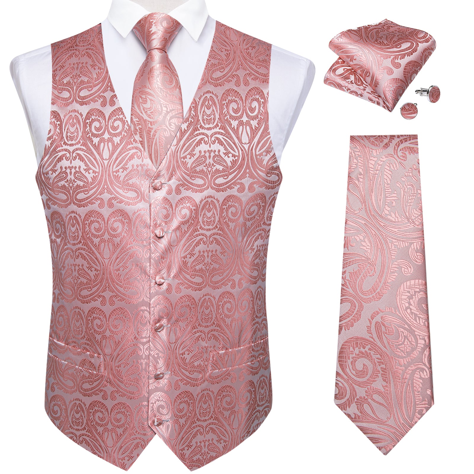 Men's Classic Pink Floral Jacquard Silk Waistcoat Vest Tie Handkerchief Cufflinks Suit Set