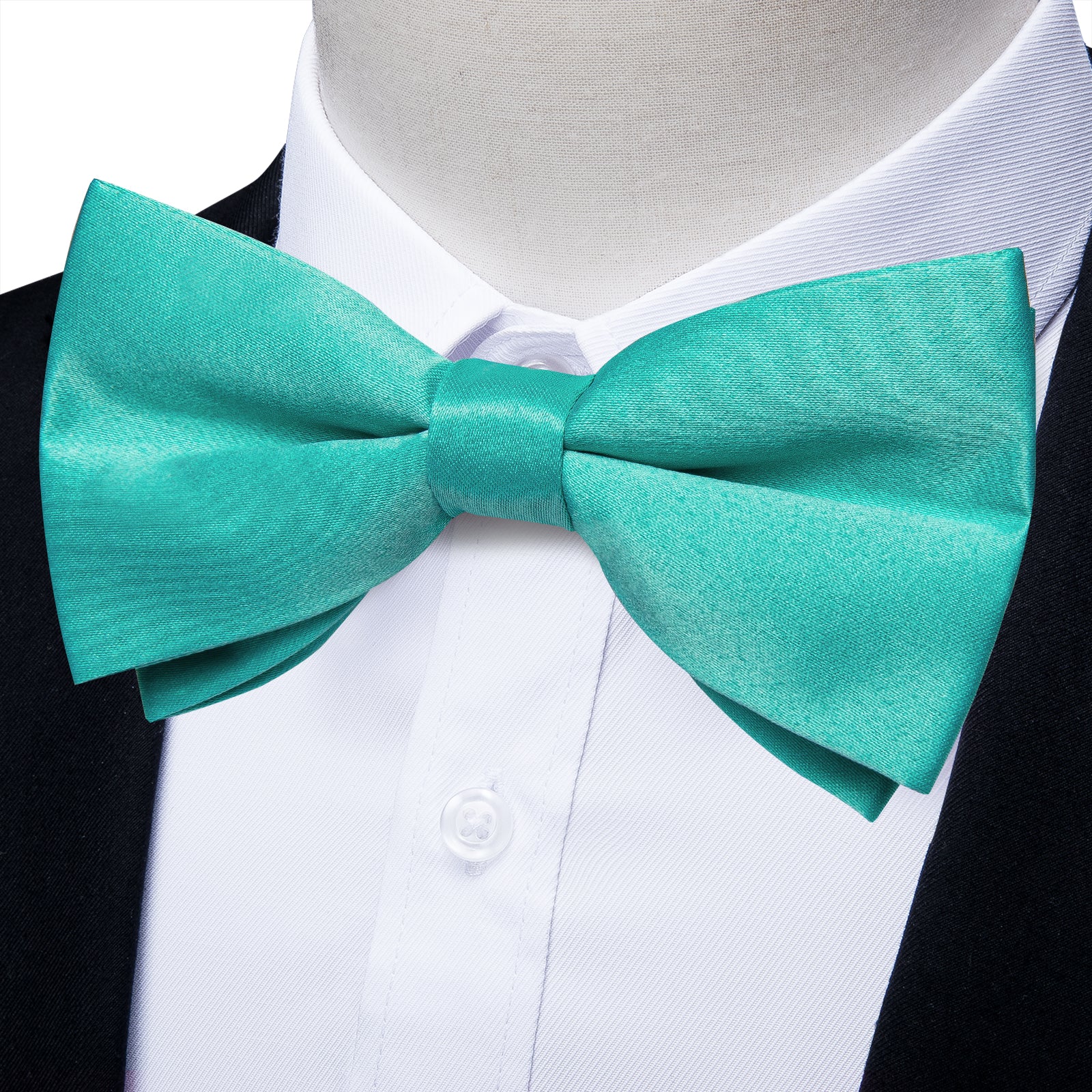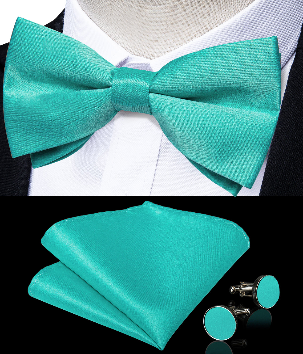 Mint Green Satin Men's Pre-Bowtie Pocket Square Cufflinks Set