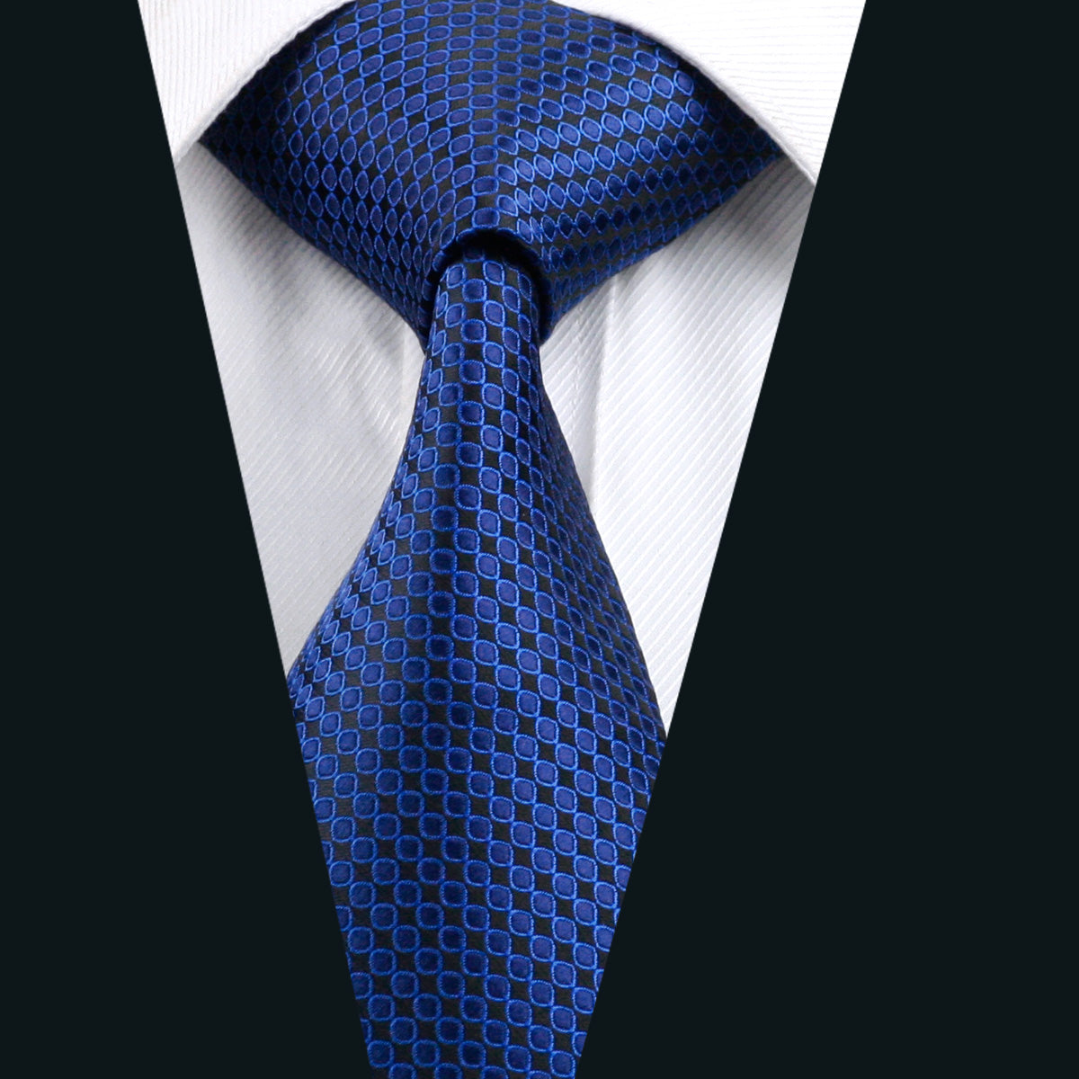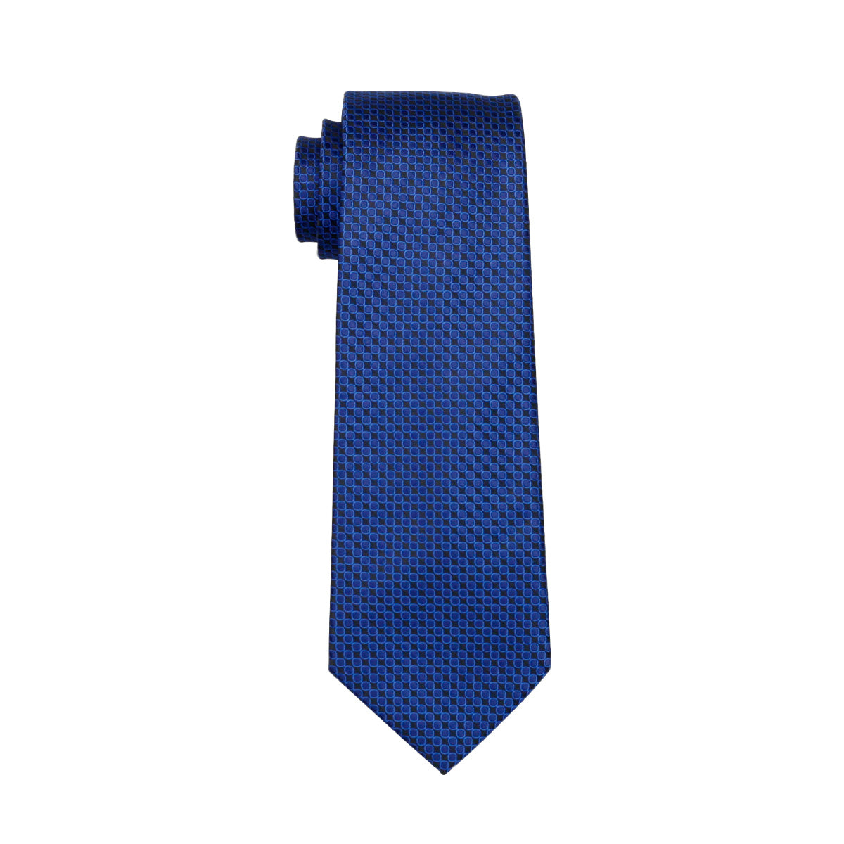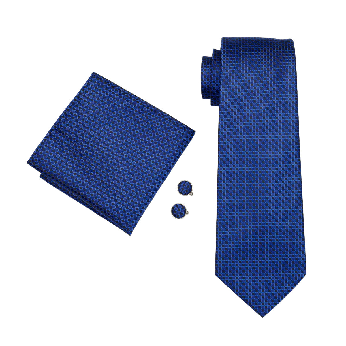 Navy Blue Geometric Tie Pocket Square Cufflinks Clip Set