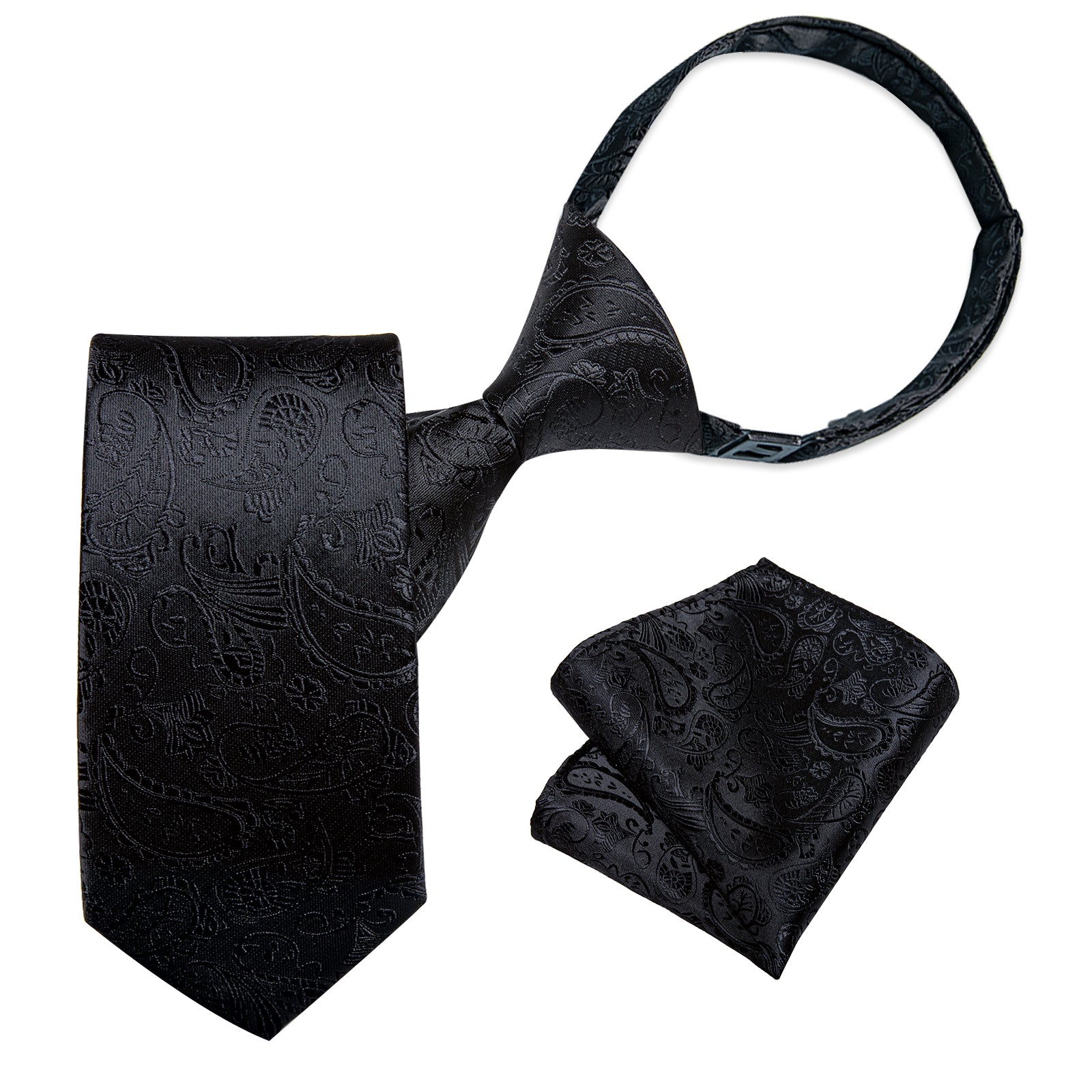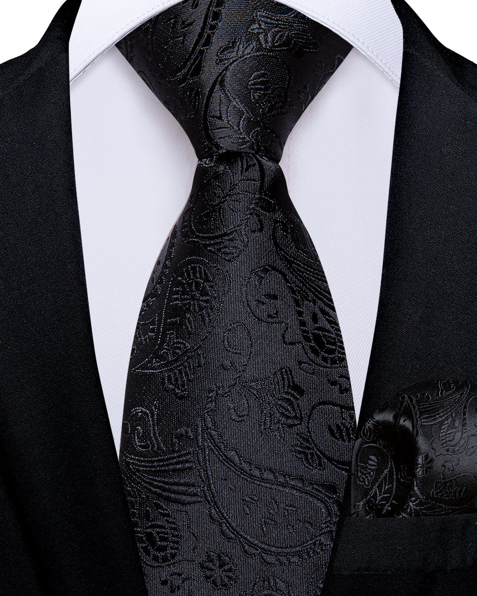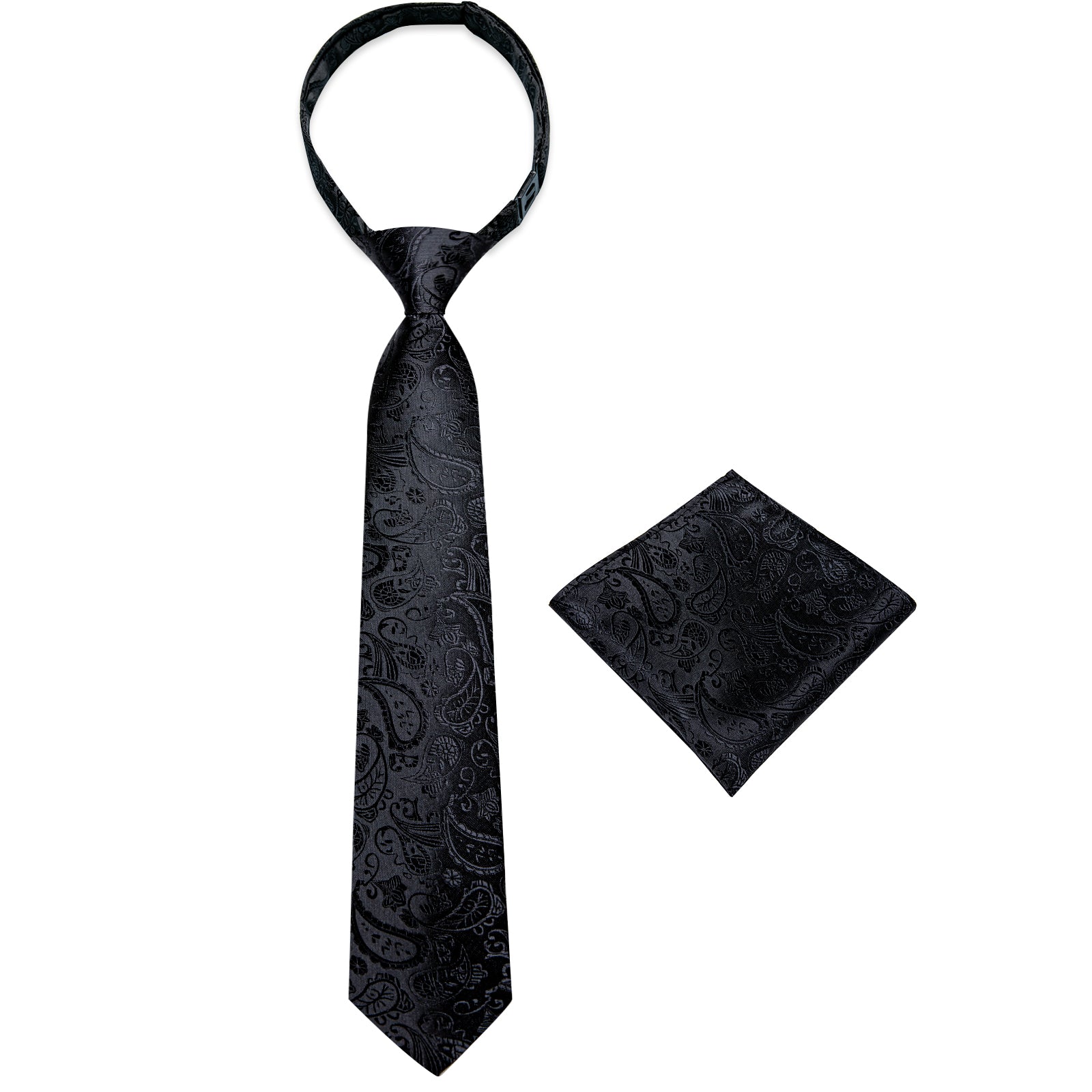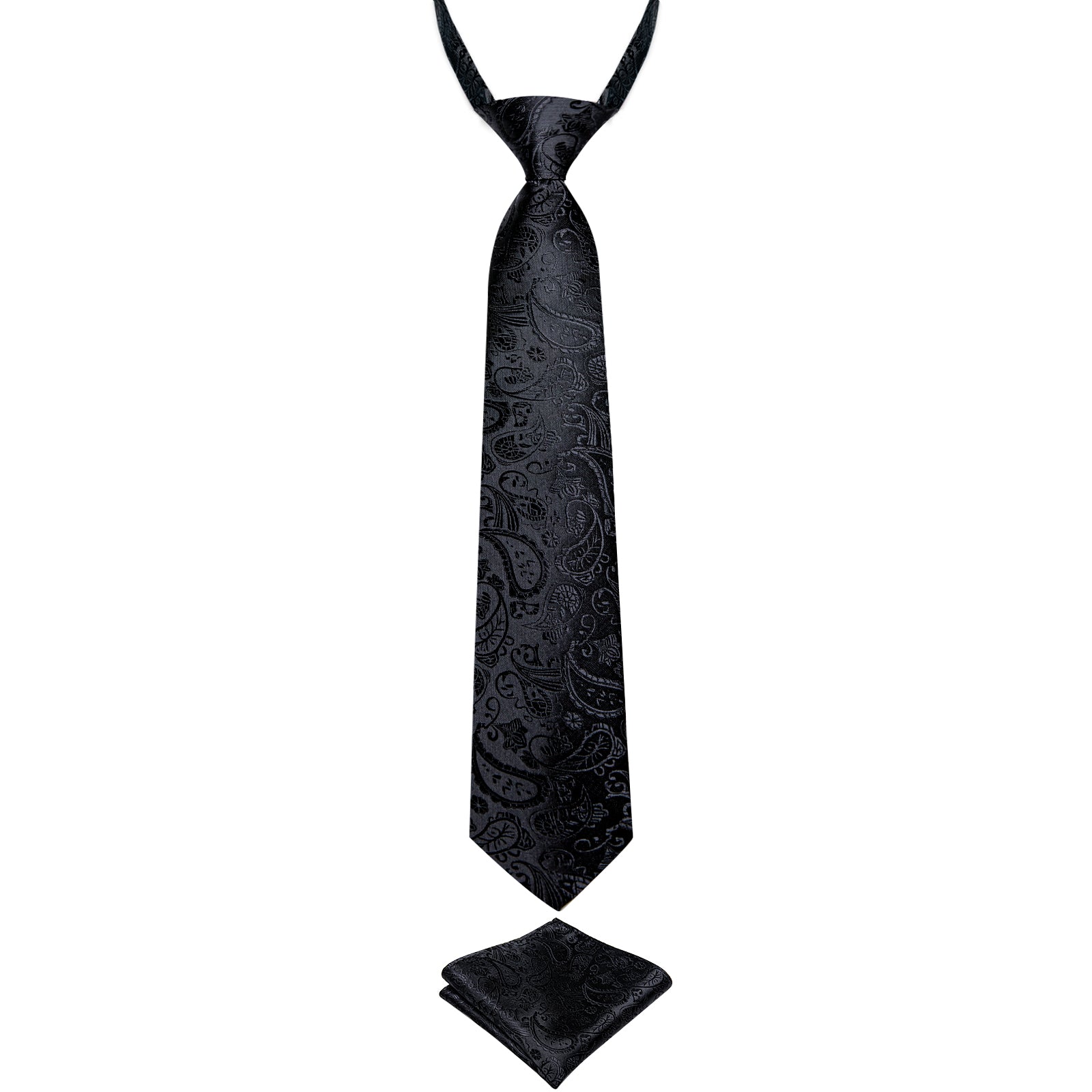 Black Paisley Silk Kid's Tie Pocket Square Set