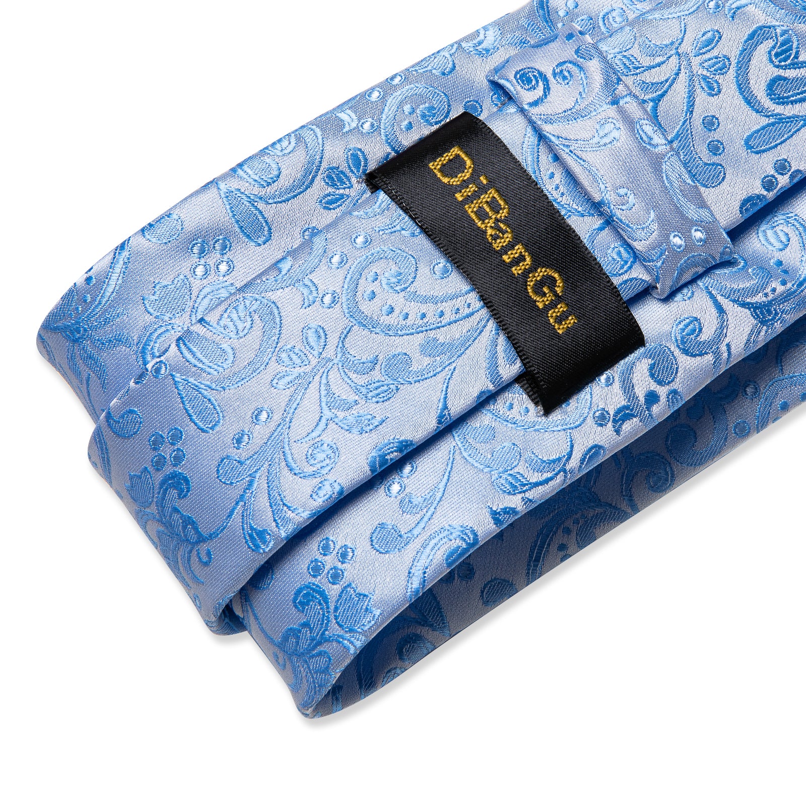 Blue Floral Men's Tie Handkerchief Cufflinks Clip Set
