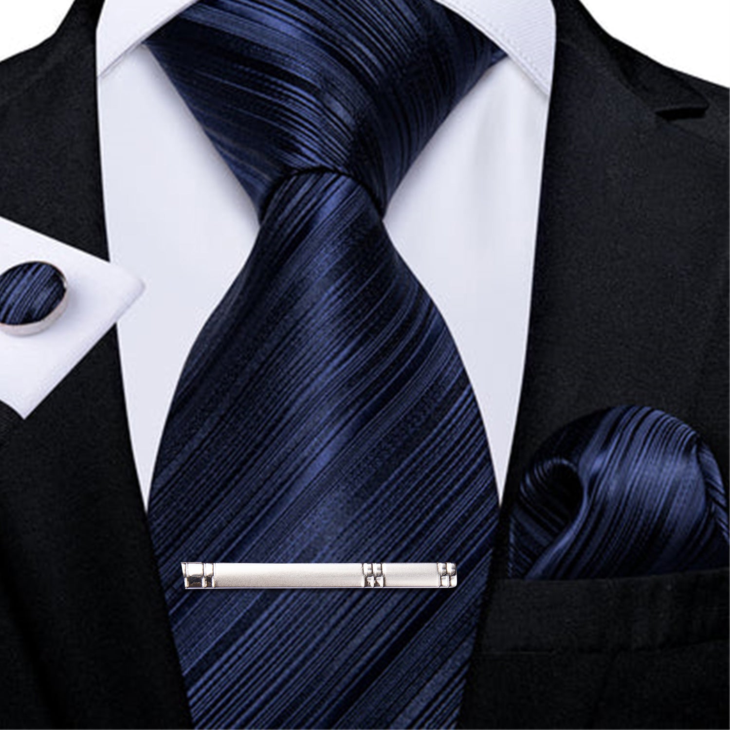 【Package Contains】1Pcs Silk Necktie, 1Pcs Pocket Square, 1Pairs Cufflink; packing with a black box makes the tie set a best gift for men on Valentine's Day, Father's Day, Christmas and New Year