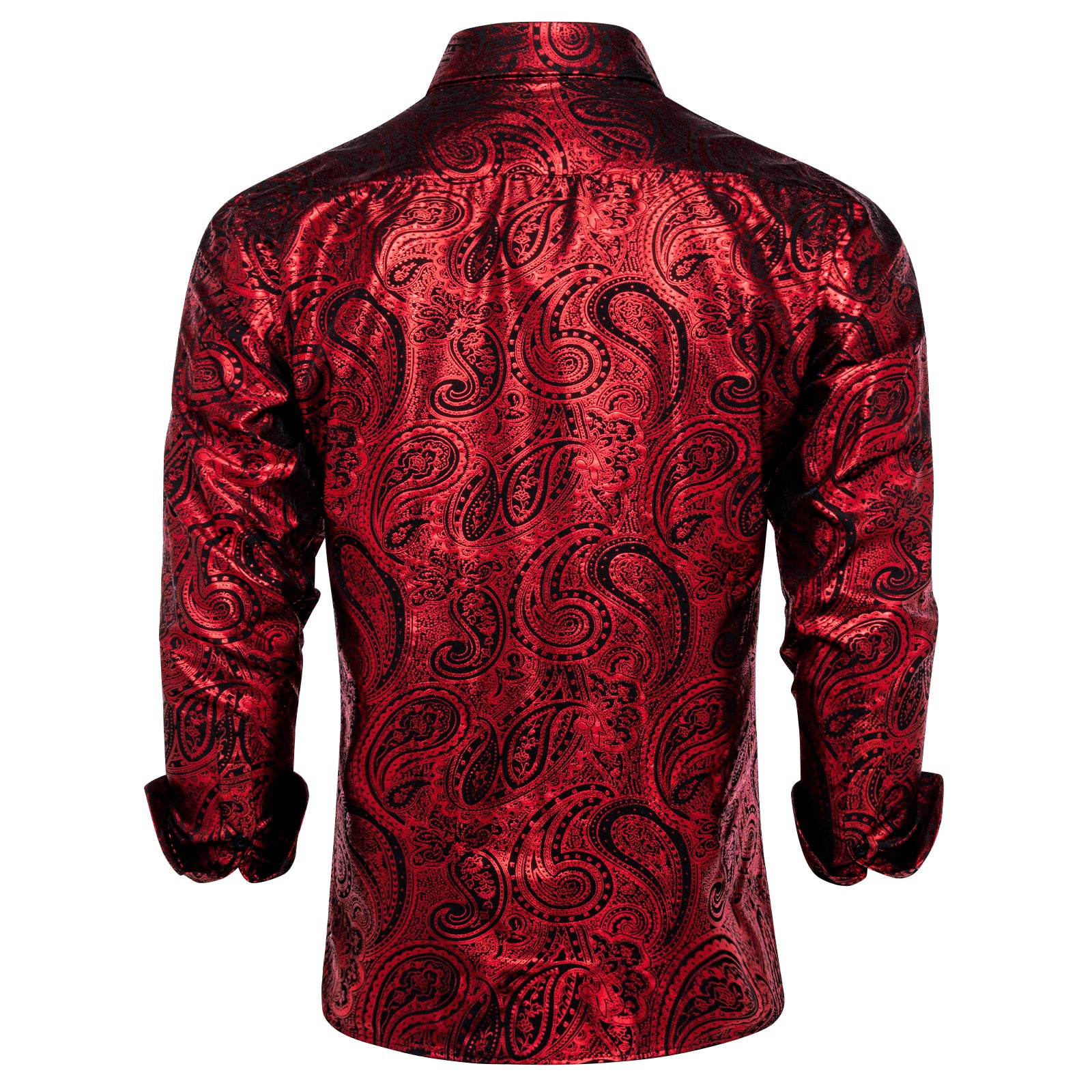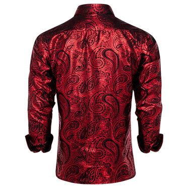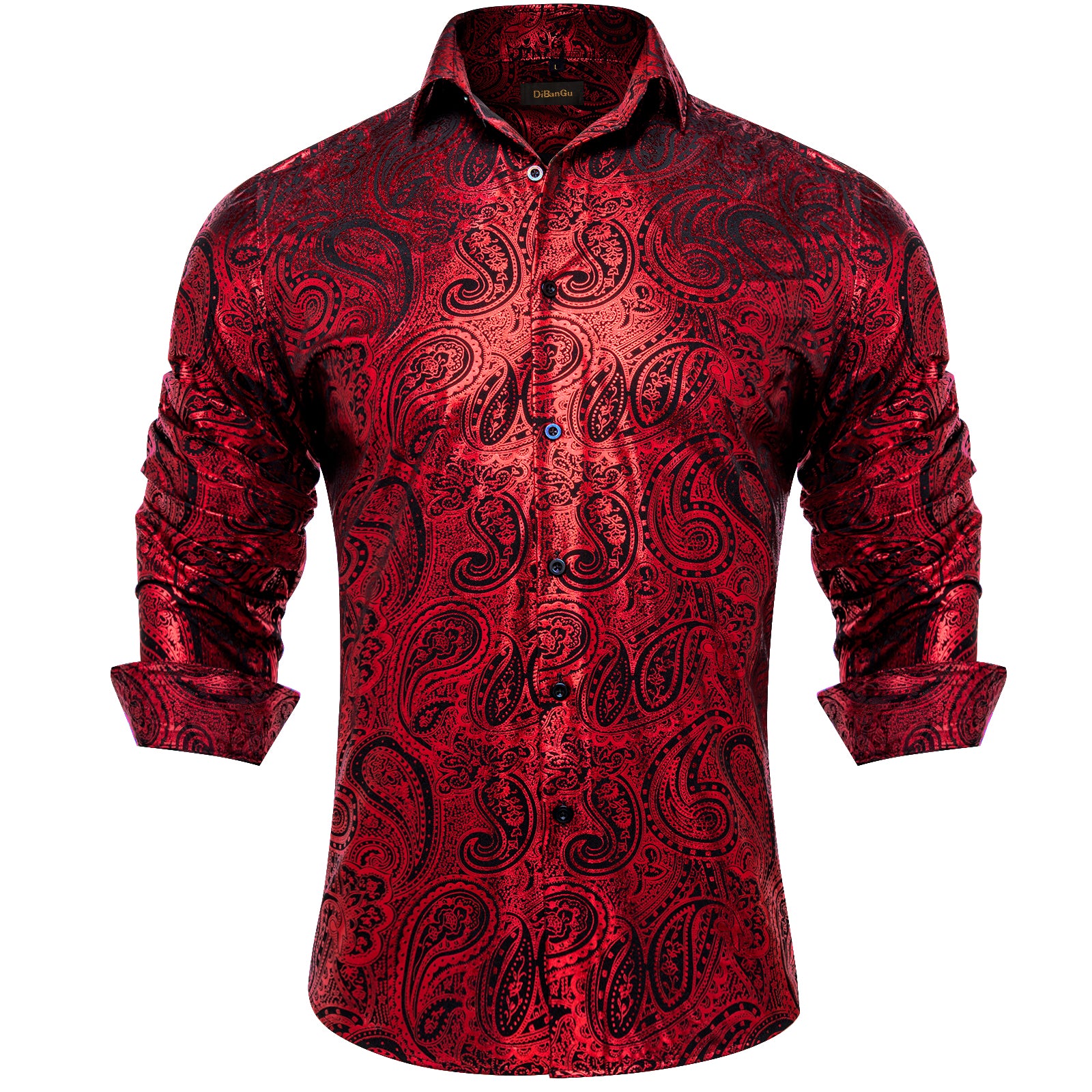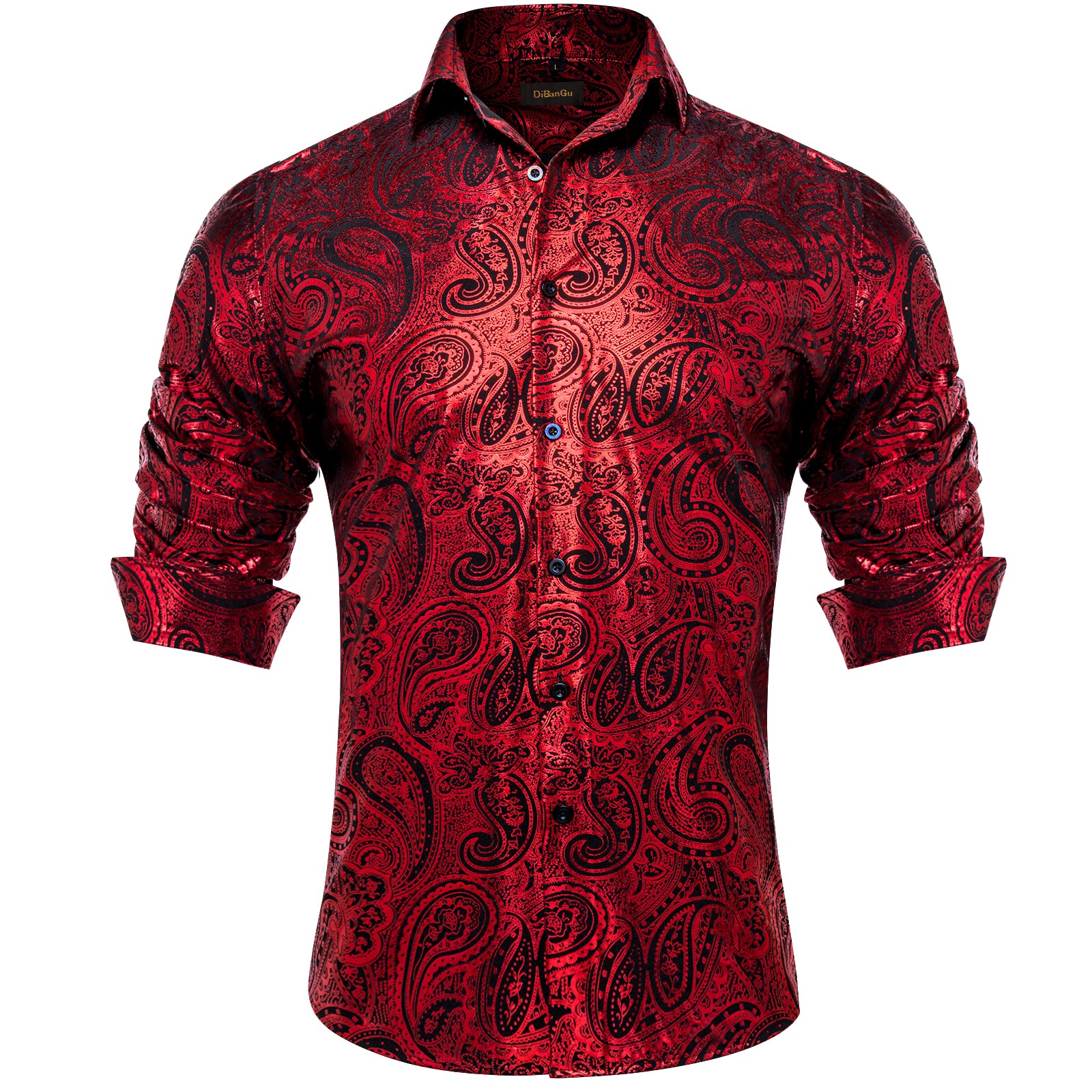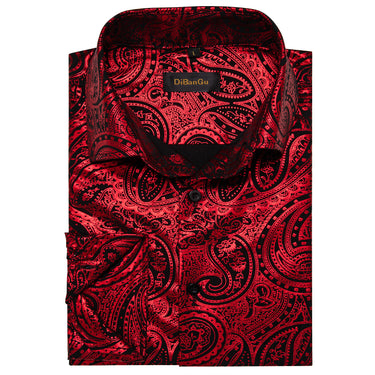 DiBanGu Blood Red Black Paisley Stamping Men's Shirt