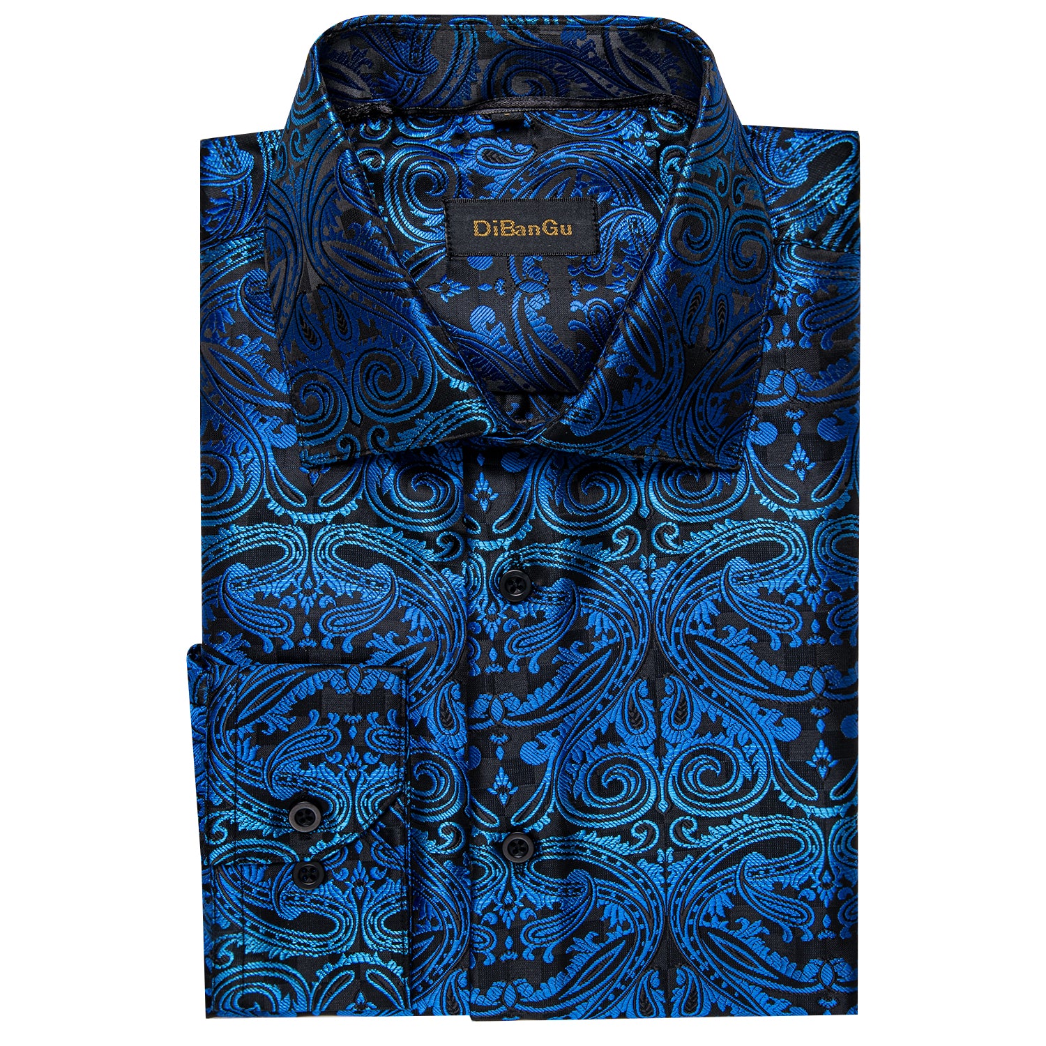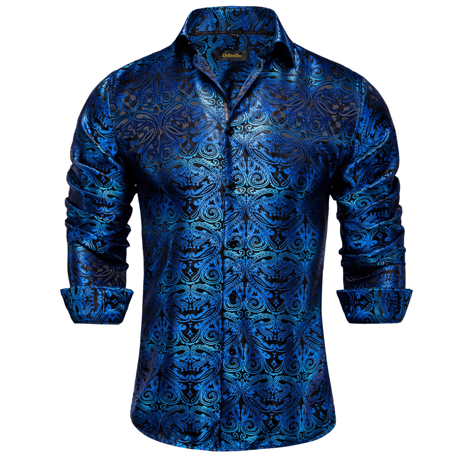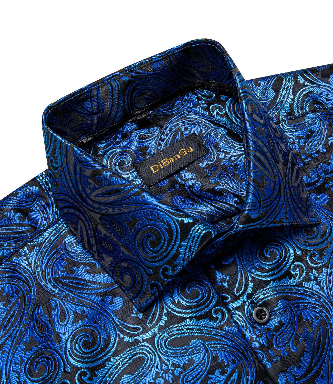 DiBanGu Blue Paisley Polyester Men's Shirt