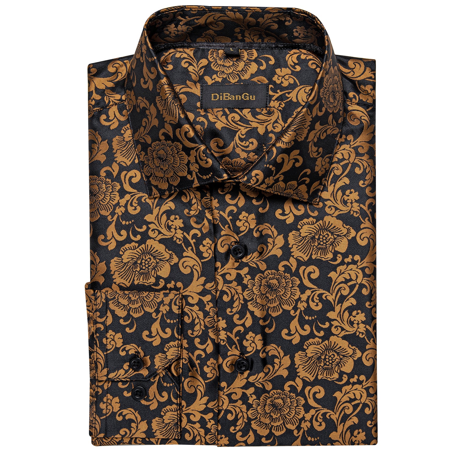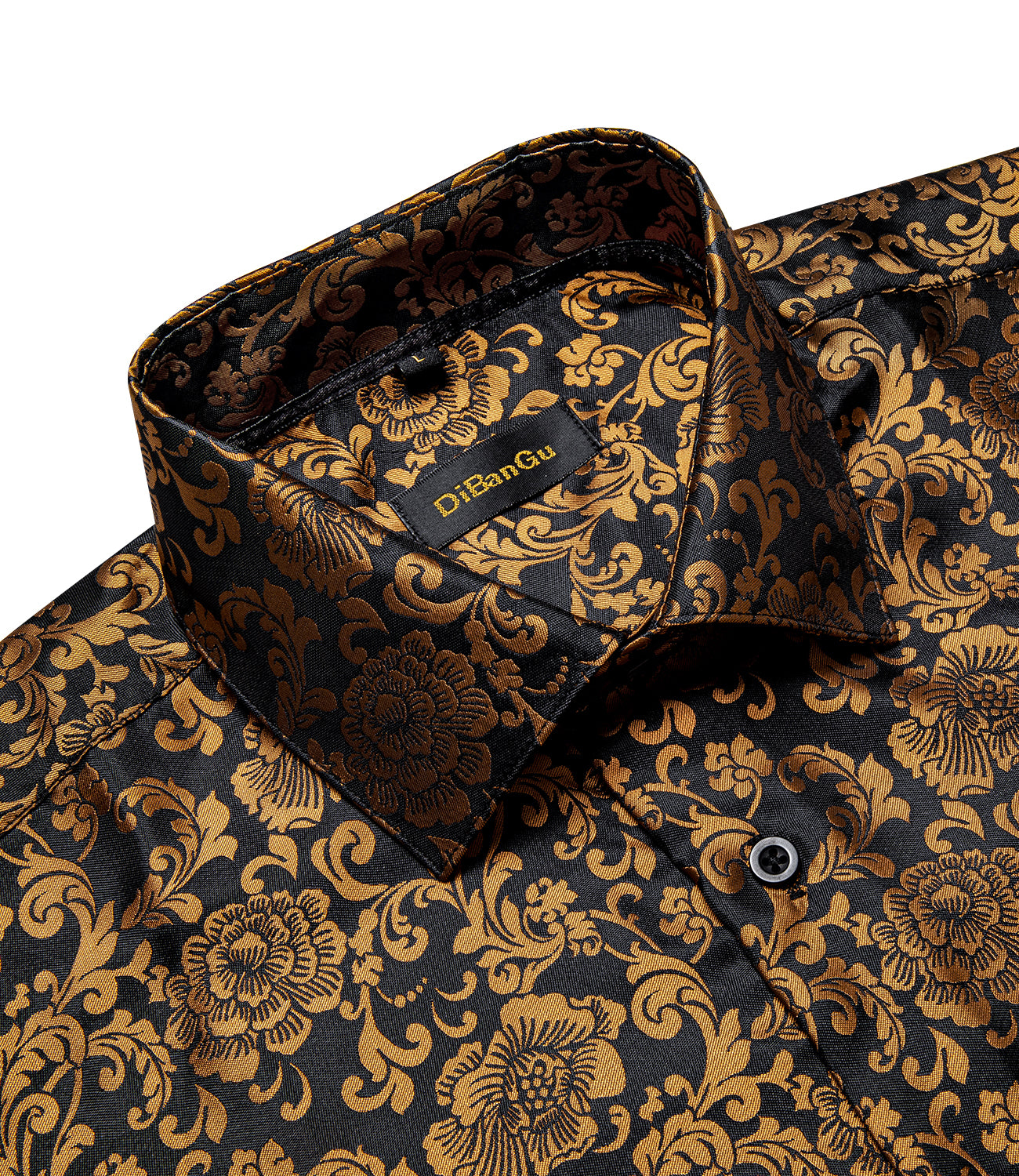 DiBanGu Dark Golden Floral Polyester Men's Shirt