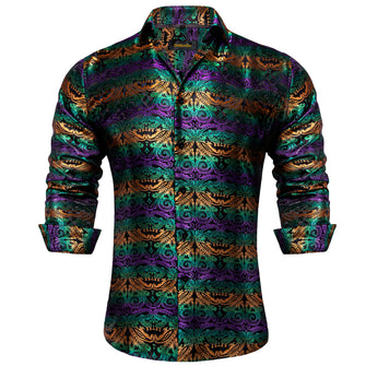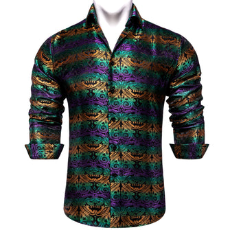 DiBanGu Purple Golden Paisley Polyester Men's Shirt