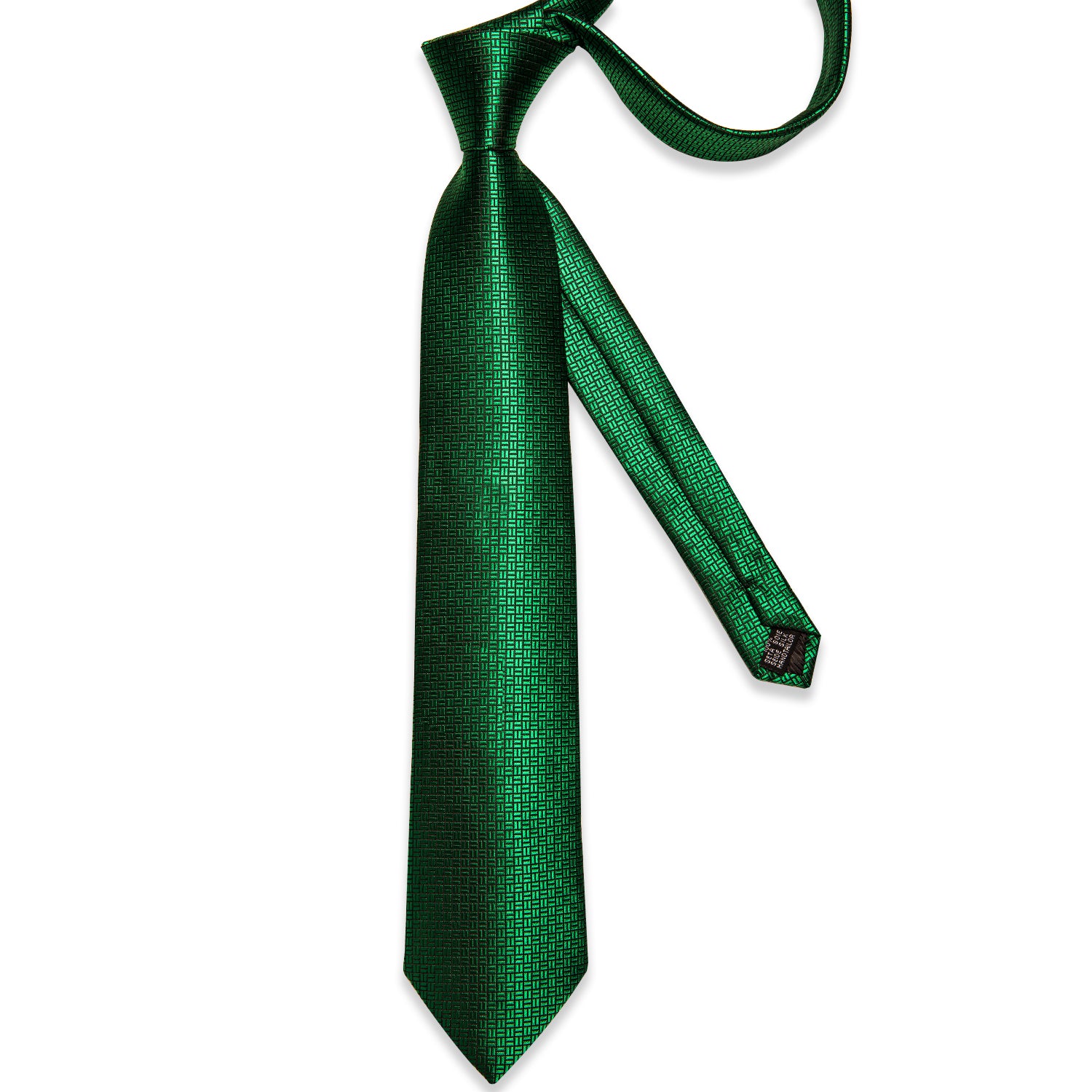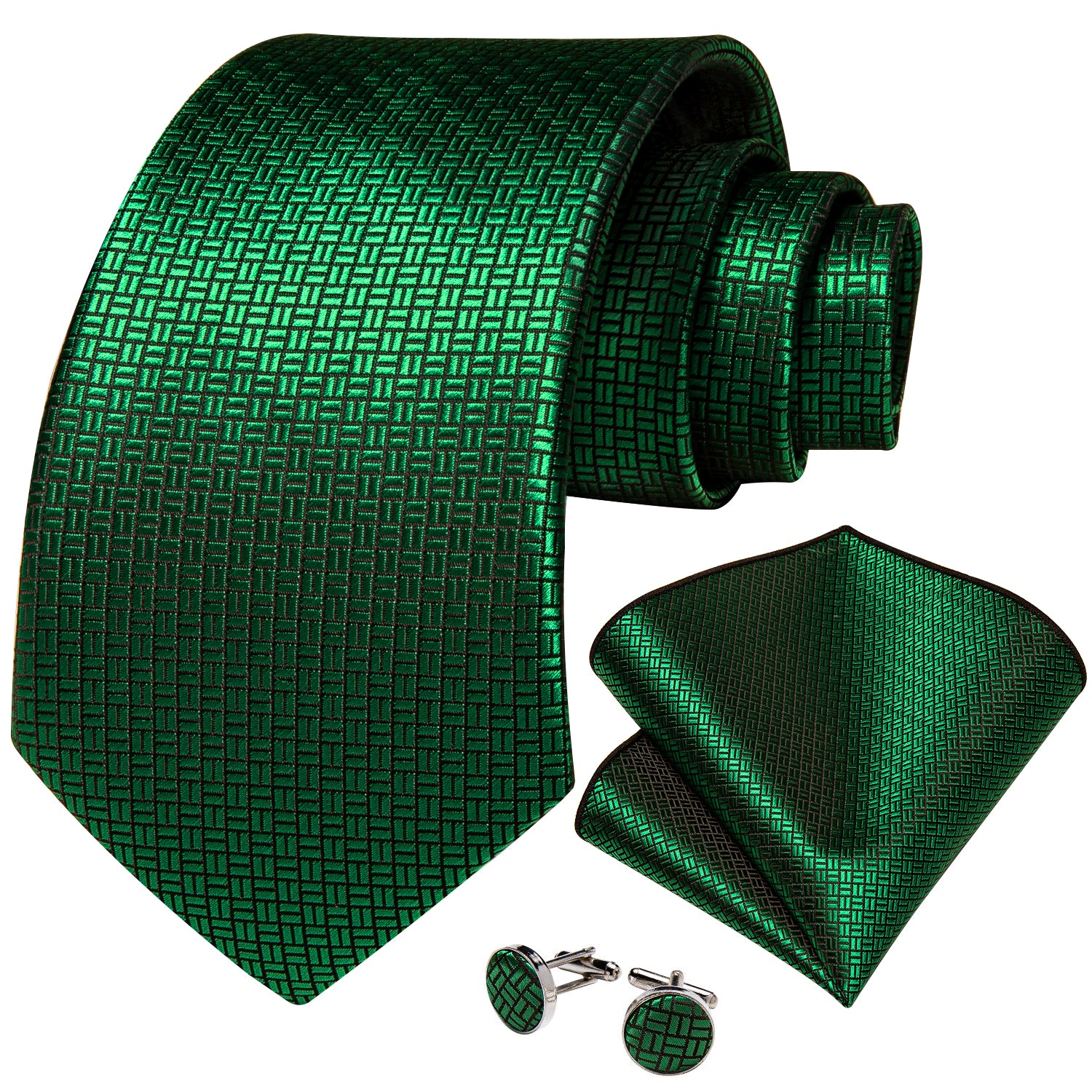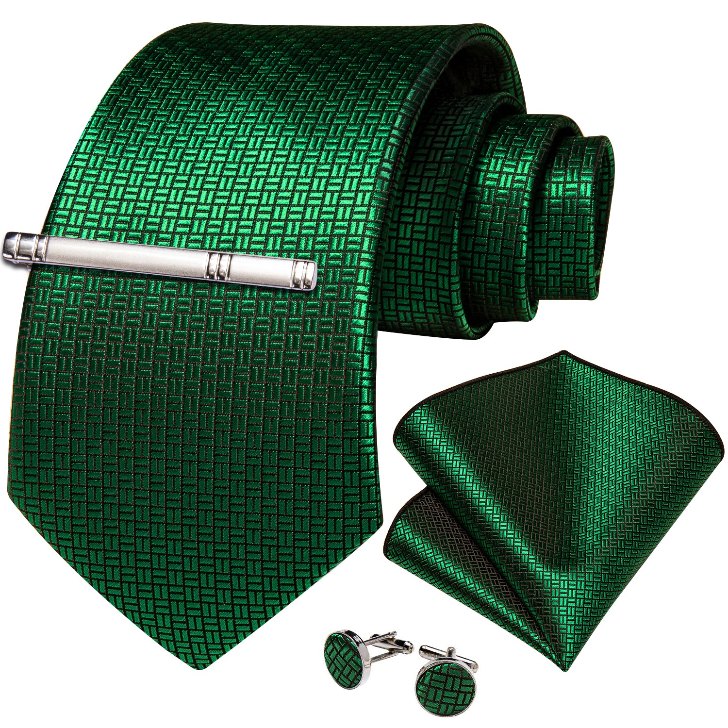 Green Solid Men's Tie Handkerchief Cufflinks Clip Set